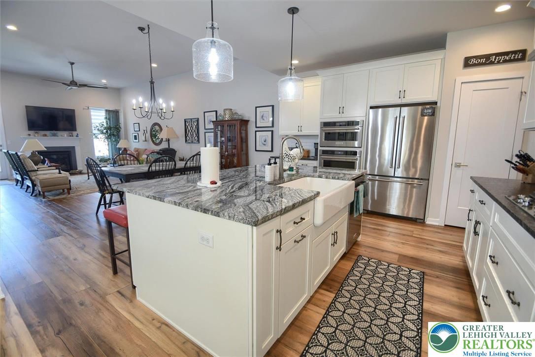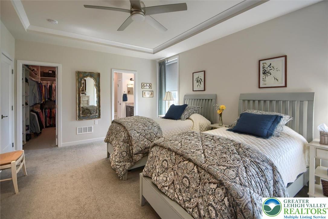 Impressive Stonewyck Modern Carriage House in Regency at Creekside Meadows 55+ gated community sitting on a premium lot! Boasting 9-foot ceilings throughout and a raised 11-foot-high ceiling in the great room, this home seamlessly combines comfort and sophistication. The expanded great room and master bedroom exude openness and grandeur. Upgraded gourmet kitchen featuring an expanded center island. With 2 beds, 3 full baths, and a finished loft that can serve as an office, family room, or 3rd bedroom, this home offers flexibility and space. Revel in upgraded interior finishes, including a gas fireplace in the great room, wide plank luxury vinyl flooring in the foyer, dining room, kitchen, and great room, stainless steel appliances, granite countertops, and ceramic tile backsplash in the open kitchen. The first-floor primary bedroom suite features a tray ceiling, luxurious fully tiled oversized bath retreat, and a nicely sized walk-in closet. Outside, the professionally landscaped paver patio is sure to impress. Enjoy the community's private clubhouse and outdoor amenities and embrace the low-maintenance lifestyle it offers. Don't miss this opportunity!