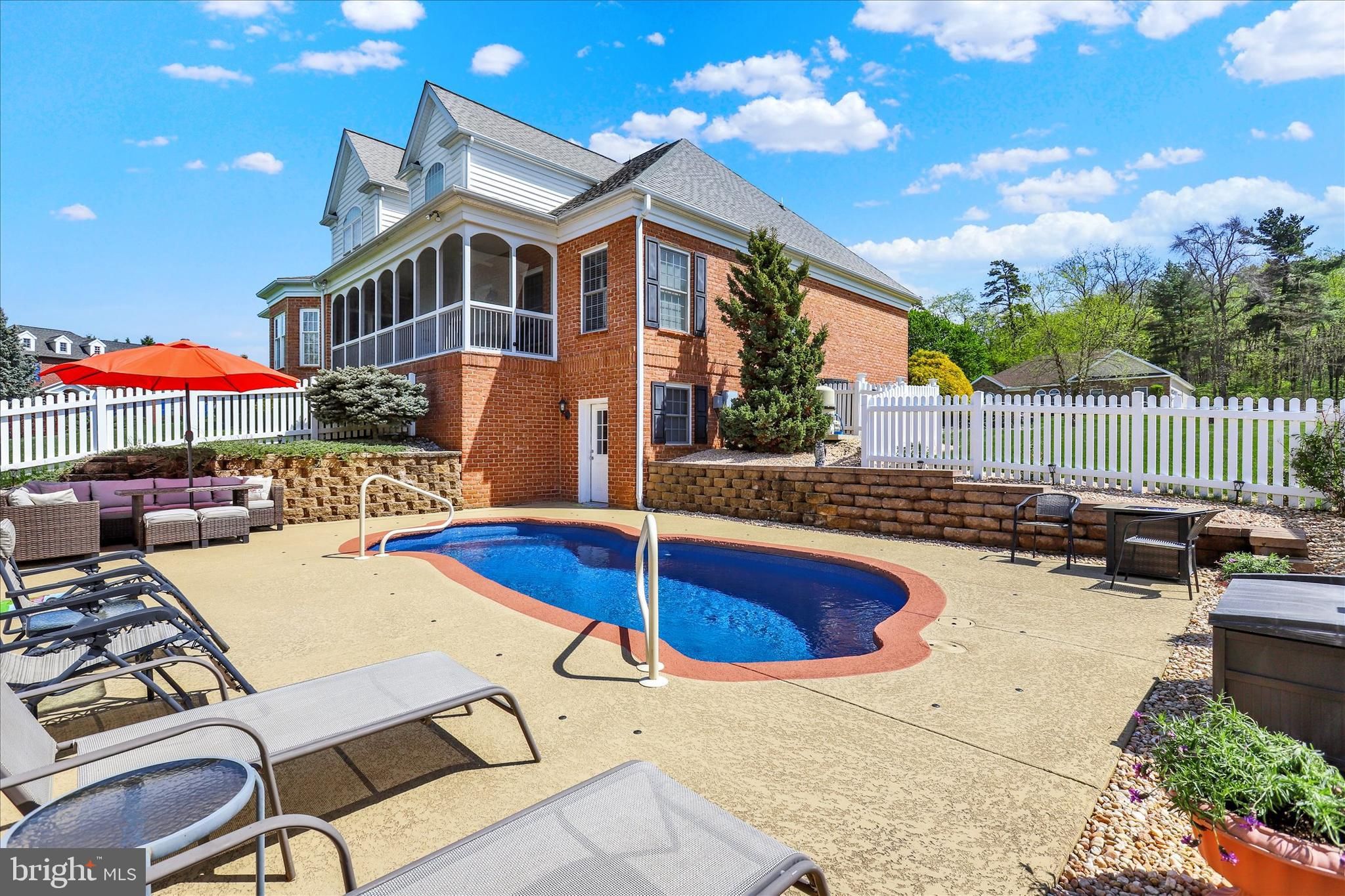 Exquisite brick home in the award-winning Penn National Community! This immaculate, move-in ready residence offers exceptional space, quality, and thoughtful upgrades throughout. The main level features a spacious primary suite and convenient laundry, along with one full and one half bath. The beautifully appointed primary suite includes dual walk-in closets and a fully renovated luxury bath with dual vanities, freestanding soaking tub, and oversized glass shower. Upstairs, you’ll find three generously sized bedrooms and two full baths, accessible by both front and rear staircases. A charming upper-level balcony overlooks the dramatic living room with gas fireplace, creating an open and inviting atmosphere. The second floor also offers a versatile finished bonus space—perfect for a home office, hobby room, or lounge. The gourmet kitchen is designed for both everyday living and entertaining, featuring granite countertops, gas cooktop, double wall ovens, and a butler’s pantry with wet bar. Enjoy multiple dining options including formal dining, casual dining, and a breakfast bar. Additional highlights include hardwood flooring, crown molding, French doors to a den, pocket doors, newer stainless steel appliances, security system, radon mitigation system, surround sound wiring, brand new HVAC system with two-zone heating, and smart technology garage entry. Outdoor living is just as impressive, with a deep, all-brick front porch overlooking 85,000 acres of state forest, and a screened-in rear porch facing west toward the golf course—perfect for relaxing or entertaining. Back yard offers heated low-maintenance saltwater pool—creating the ultimate entertaining retreat. The fully finished walkout basement expands your living space by 1,547 sqft with a full bath, bar, recreation room, and game area, plus direct access to pool. Penn National Community amenities include 36 holes of 4-star golf, outdoor pool, tennis and pickleball courts, yoga, community garden, 40+ social clubs, on-site dining, coffee shop, and more.