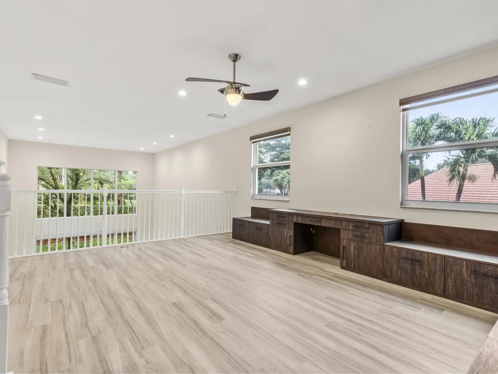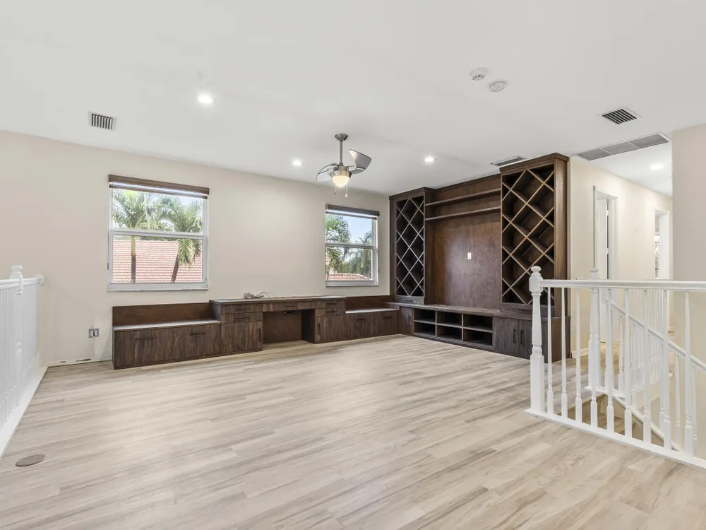 Rarely Available Valencia Pointe 2-Story EstateSet on an oversized pie-shaped lot, this rarely available two-story home combines elegance, comfort, and functionality in one of Boynton Beach's most sought-after gated communities.The main floor primary suite offers convenience and privacy, complemented by an additional first-floor bedroom--perfect for multi-generational living or long- and short-term guests. Upstairs, a spacious loft with custom built-ins leads to two private en suite bedrooms, creating an ideal retreat for visitors who value privacy.Every detail has been thoughtfully upgraded: new impact windows and doors, a whole-house generator, upgraded electrical, new landscaping, and custom closets throughout.