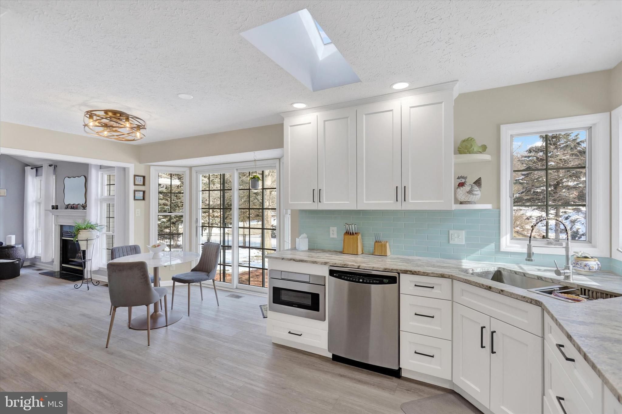 Located in the award-winning Penn National Golf Course Community, this beautifully updated 4-bedroom, 3-bath ranch home offers approximately 1,921 finished square feet of thoughtfully designed living space. The main level features soaring vaulted ceilings, a cozy gas fireplace, skylights, abundant natural light, and brand-new flooring throughout. The open-concept layout flows seamlessly between the living room, formal dining area, and kitchen—ideal for everyday living and entertaining. The brand-new kitchen showcases leathered quartz countertops, ample cabinetry, lovely backsplash, and space for casual dining. A convenient laundry room just off the kitchen includes a new washer, dryer, sink, and additional cabinetry. The spacious primary suite offers a large walk-in closet, an additional closet, and a spa-like en-suite bath with soaking tub, new tile shower, and private water closet. Two additional generously sized bedrooms and an updated full bath with new shower complete the main level. The finished lower level provides exceptional flexibility with a fourth bedroom, third full bath, kitchenette, workshop, and plenty of space for a home office, gym, or media room. Outside, enjoy a fenced backyard, attractive landscaping, and room to relax or entertain. A new roof was installed in 2020. Radon mitigation system. Community amenities include 36 holes of 4-star golf, outdoor pool, tennis and pickleball courts, yoga, community garden, 40+ social clubs, on-site restaurant and bar, and more—resort-style living at its best!