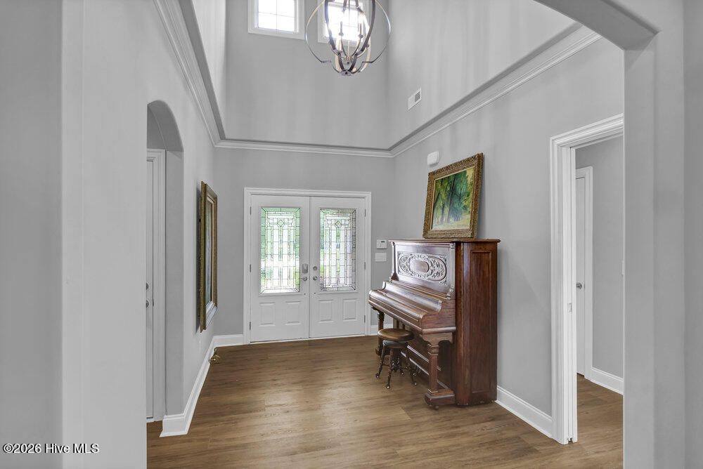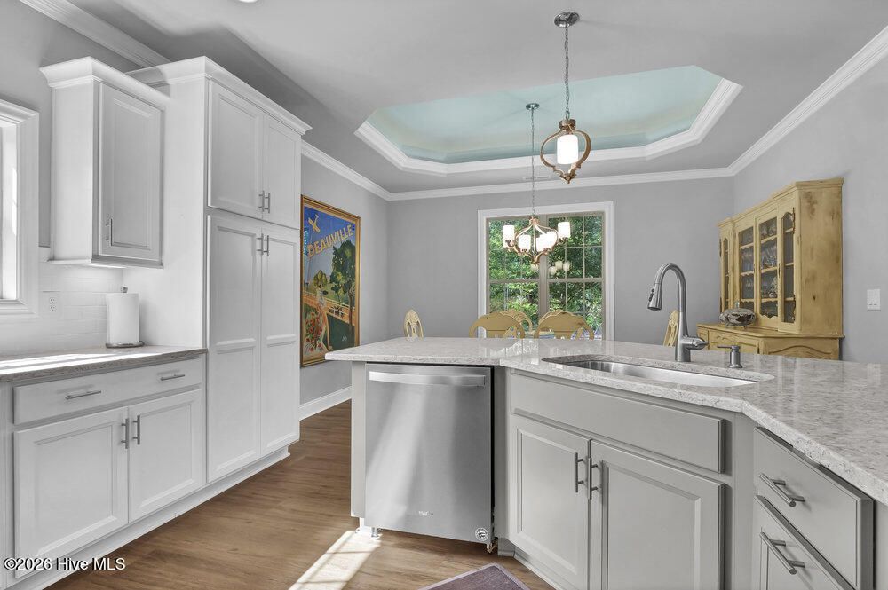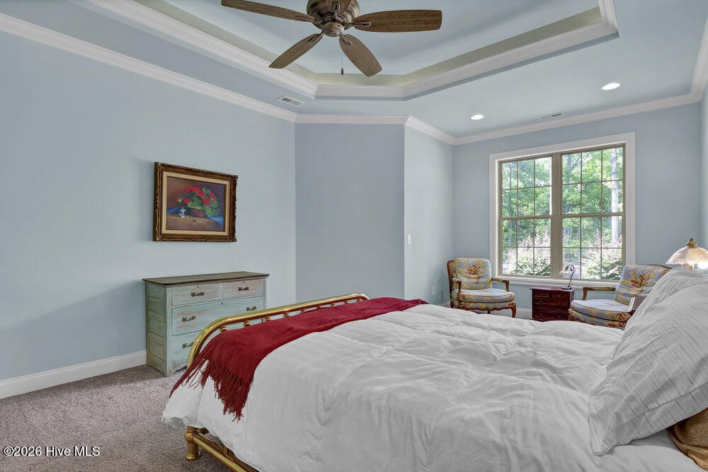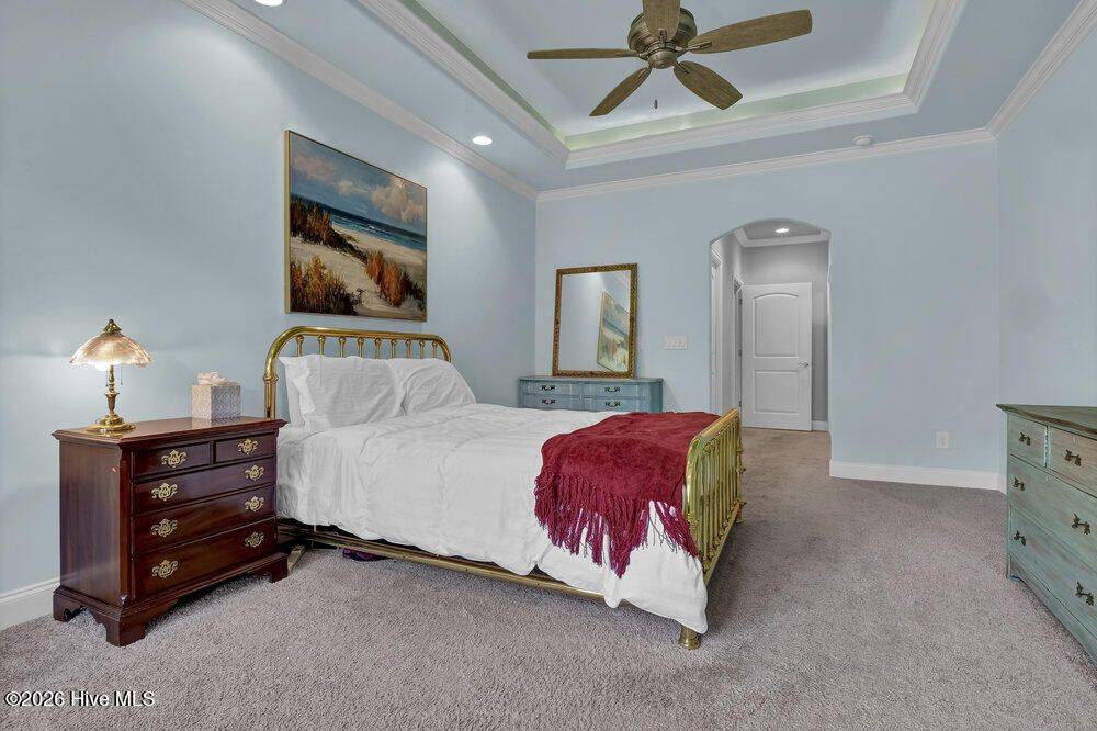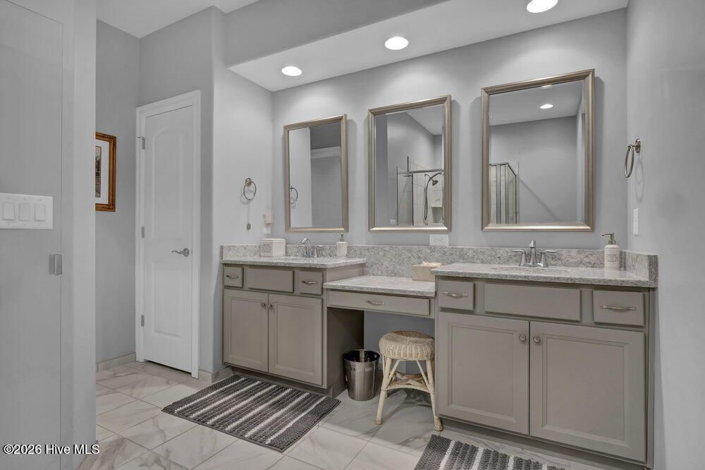 - Master Downstairs, Walk-In Closet(s), Tray Ceiling(s), Entrance Foyer, Solid Surface Counters, Bookcases, Kitchen Island, Ceiling Fan(s), Pantry, Walk-In Shower