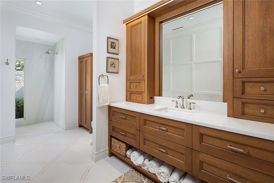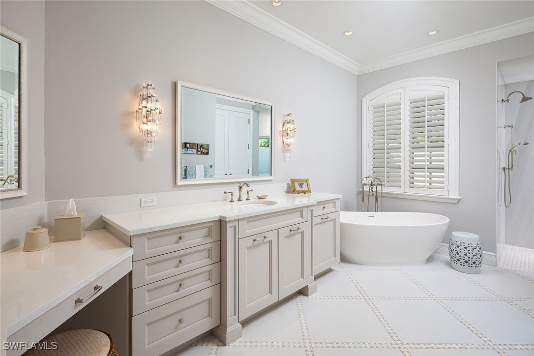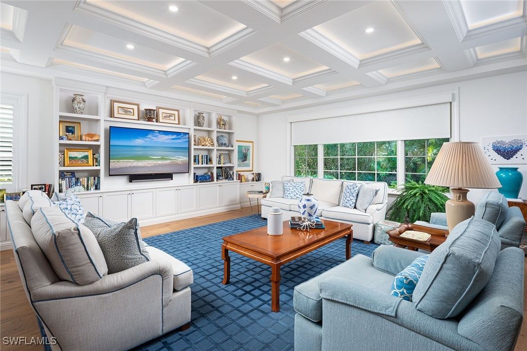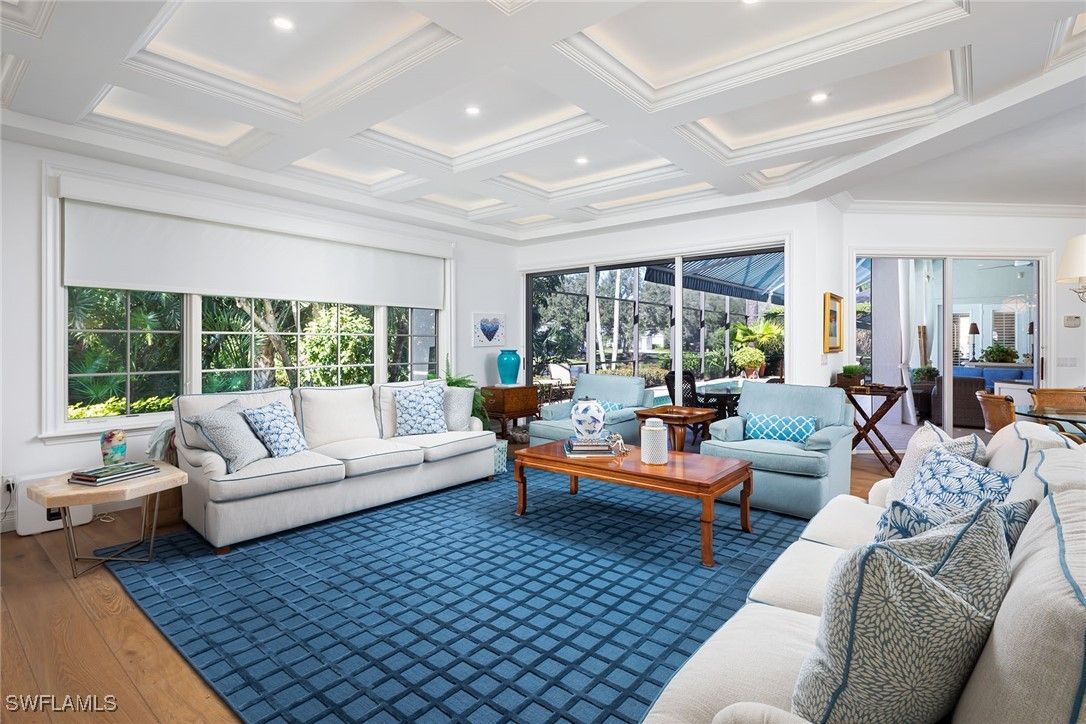 "Traditional elegance" describes this single family house, which is located in the coveted Barrington section of Pelican Bay. Greentree Drive is known for their estate homes with beautiful vistas. This property has it all with it's tropical landscapes for privacy and a peaceful lake view. The spacious floor plan allow the sliders to all open up on to your pool, to make an indoor/outdoor, relaxed oasis-reminding you of a five star resort. Upgraded features include new windows, custom millwork with raised interior doors, Wolf and Sub-Zero appliances, quartzite counters, white walnut floors, separate primary baths, and an ensuite guest wing for company. The attention to detail is exquisite, especially in the gorgeous family room and kitchen. It even has an electric charging station.