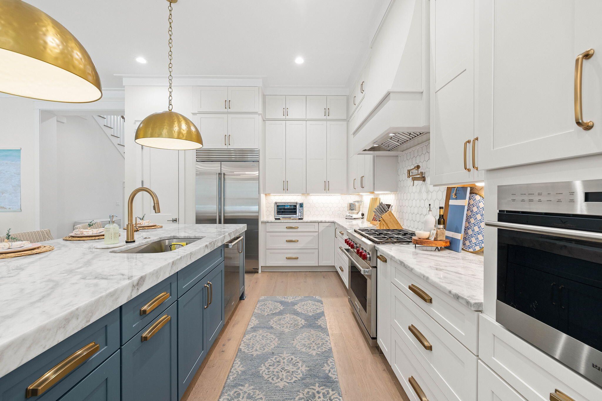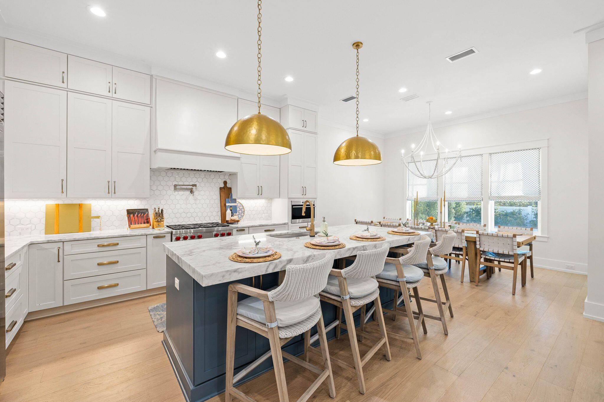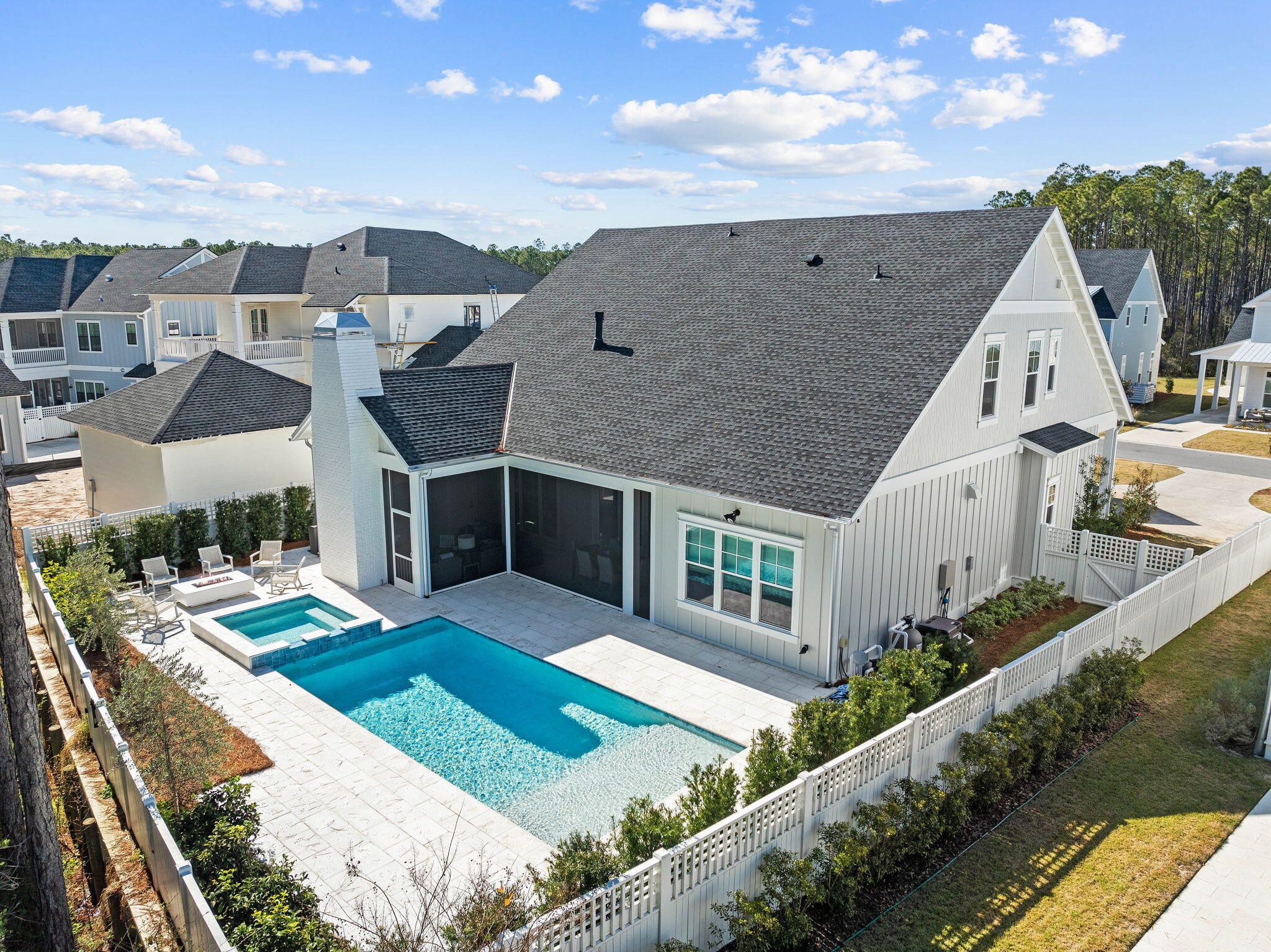 Welcome to 698 Medley, in the highly desired Greenway section of Watersound Origins. This two story, 5-bedroom, 5.5-bath residence represents the pinnacle of high-end coastal design. The heart of the home is a gourmet kitchen with marble countertops, an oversized island with 3' marble edges, a 36' Wolf dual-fuel range, and a 42' Sub-Zero refrigerator. Culinary enthusiasts will appreciate the custom-built pantry and a glass-enclosed wine cellar with elegant accent lighting. The open-concept living area, featuring 11' ceilings and English Oak hardwoods, flows seamlessly into a custom wet bar with cypress shelves, and marble backsplash. The living room is centered by a limestone-finish Omega mantle and integrated theater system, and opens to two outdoor porches overlooking the pool and spa. * Main-Level Primary Suite: A true sanctuary featuring private outdoor access, a spa-inspired Dolomite marble bath with a soaking tub, and an oversized California Closet. * Versatile Upper Level: Includes two ensuite bedrooms, a dedicated office, and a unique hidden playroom bonus space. * Guest Carriage Wing: A connected guest retreat above the garage featuring custom bunks, a kitchenette, and a private living area is the ultimate private space. *Peace of mind is built in with a Generac whole-home generator, a whole-home water filtration system, a comprehensive surveillance system, and two laundry centers; one on each floor. *Transition through 12' sliding glass doors to a backyard paradise designed for year-round enjoyment that includes: * Heated Pool & Hot Tub surrounded by a limestone fire pit. * Summer Kitchen: Equipped with a gas grill, Gozney pizza oven, and Recteq smoker. * Powered retractable screens, a custom fenced dog run with direct home access, and an integrated outdoor audio/visual system. *Located on one of the community's most desirable streets, built by Key Lime Construction, and custom decorated by Lyford Interiors in Fairhope. *Enjoy world-class amenities including the Origins Golf Course, resort-style pool, fitness center, and tennis/pickleball courts--all just moments from the pristine beaches of 30A.