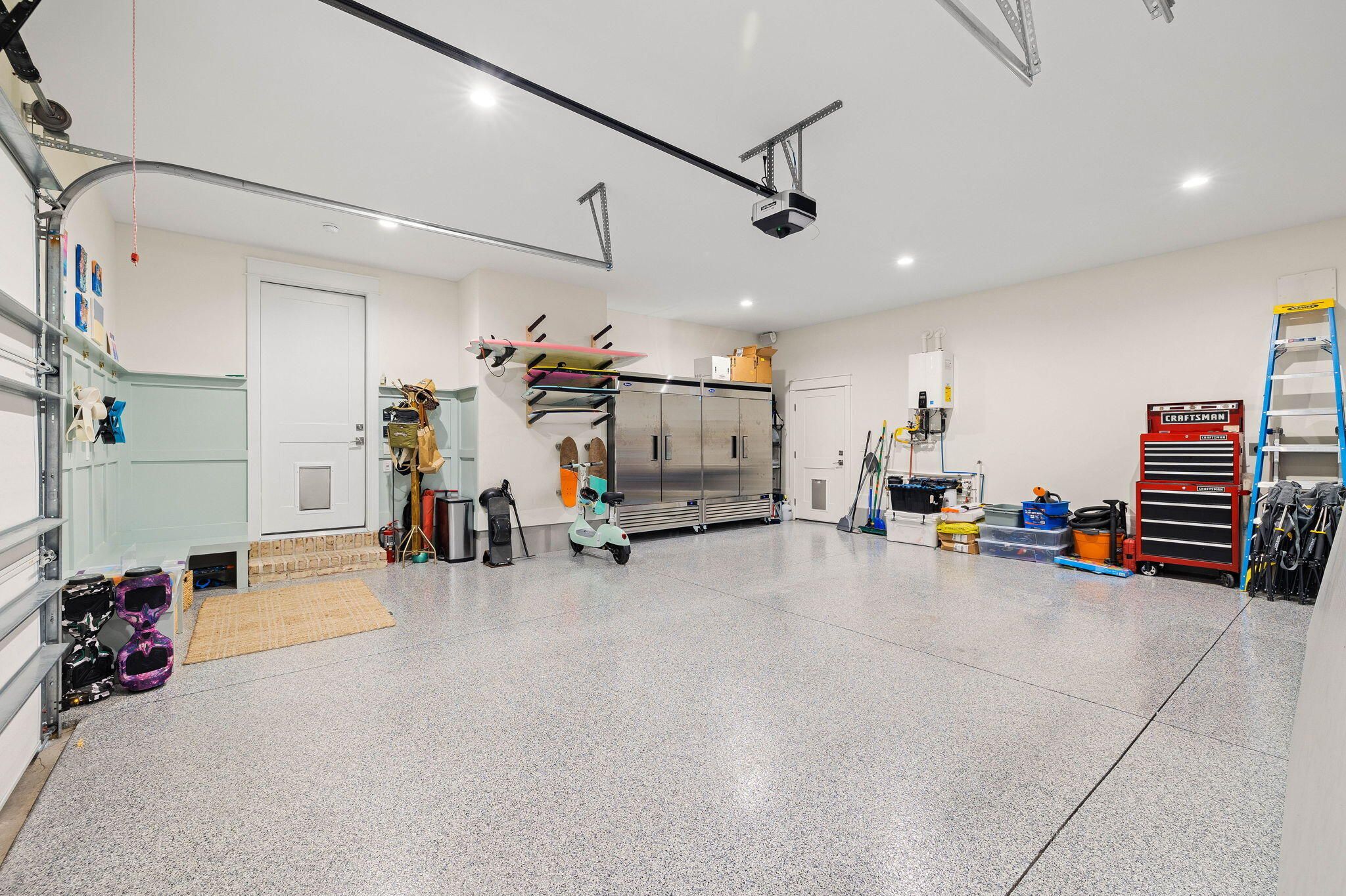 - Dishwasher, Disposal, Microwave, Range Hood, Refrigerator, Gas Water Heater, Tankless Water Heater, Electric Garage Door, Gas Oven, Wine Refrigerator