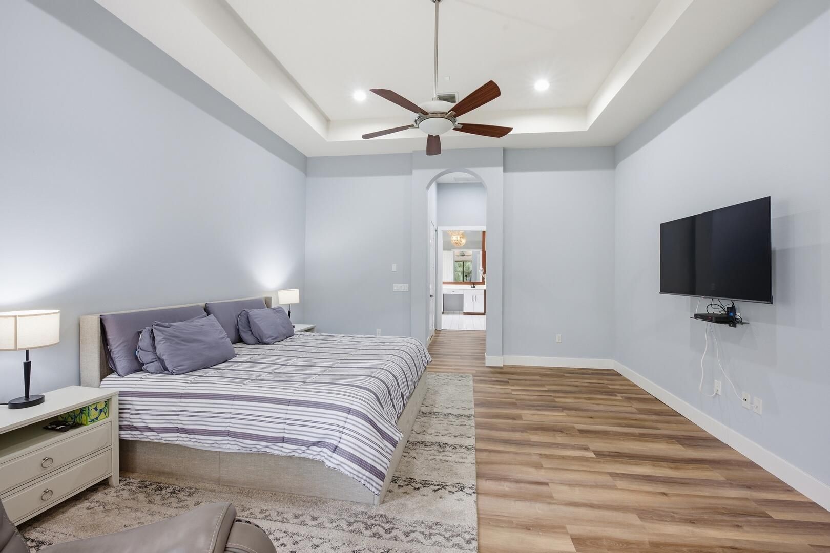 Located in the sought-after community of Tivoli Lakes, this 4-bedroom, 2.5-bath residence offers a bright, open layout with refined finishes and exceptional attention to detail. A double-door entrance leads into an elegant foyer with a coffered ceiling, setting the tone for the spacious great room, also featuring a coffered ceiling, LED high-hat lighting, surround sound, and an abundance of natural light. The open-concept kitchen is both stylish and functional, showcasing classic white cabinetry, striking blue quartz countertops, a metal tile backsplash, stainless steel appliances, cooktop with vented hood, wall oven, snack bar seating, and a sunny breakfast nook with French doors leading to the patio. A formal dining area with coffered ceiling provides the perfect space for entertaining. The primary suite is a private retreat with double-door entry, a sitting area, coffered ceiling, high-hat lighting, and custom walk-in closets. The spa-like primary bath features dual sinks, a dedicated vanity area, soaking tub, and a walk-in shower. Additional highlights include a laundry room with sink and ample storage, neutral flooring, smooth walls, fresh interior paint, and accordion shutters throughout. The exterior is equally impressive with a circular driveway and a large screened-in patio, ideal for year-round outdoor living. A move-in ready home offering comfort, style, and easy Florida living in a premier location. This gated community features a 24-hour manned entrance and a beautifully renovated clubhouse designed for both comfort and connection. Inside, residents are welcomed by an elegant lobby and gathering room, along with a spacious social hall, multiple card rooms, an arts and crafts studio, and a library and meeting space—perfect for both social events and quiet moments. The fitness amenities are equally impressive, with a fully equipped gym and a dedicated aerobics studio offering a variety of classes to support an active lifestyle. Residents can enjoy a vibrant social atmosphere with numerous clubs, activities, and opportunities to stay involved year-round. Outdoor living is truly exceptional, centered around a resort-style pool with a spa, shaded deck areas, and a splash pad for younger visitors. For those who enjoy sports and recreation, the community offers six lighted Har-Tru tennis courts, pickleball courts, bocce courts, and a pro shop. A full calendar of social activities rounds out the lifestyle, including card games, canasta, mah Jong, pottery, yoga, water aerobics, and community theater. With so many options available, there is always something to enjoy and a welcoming way to connect with others.