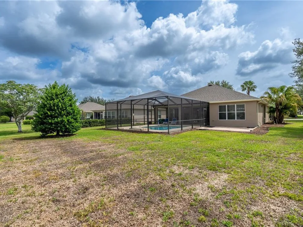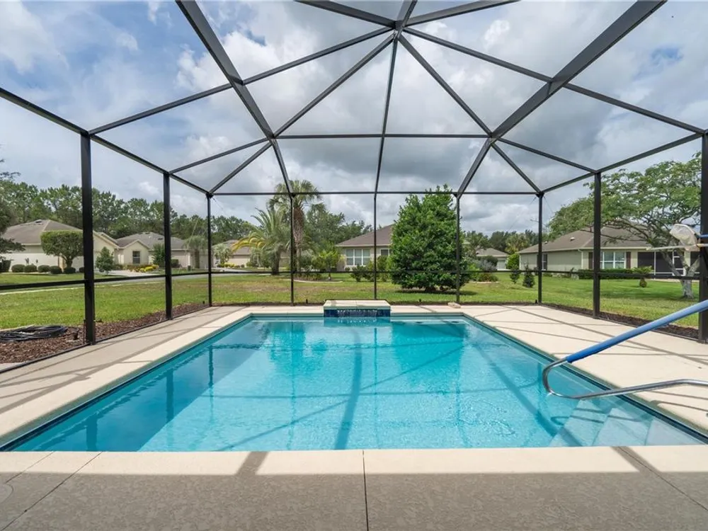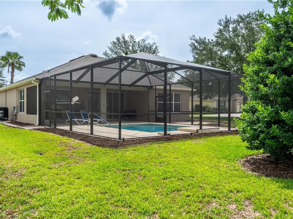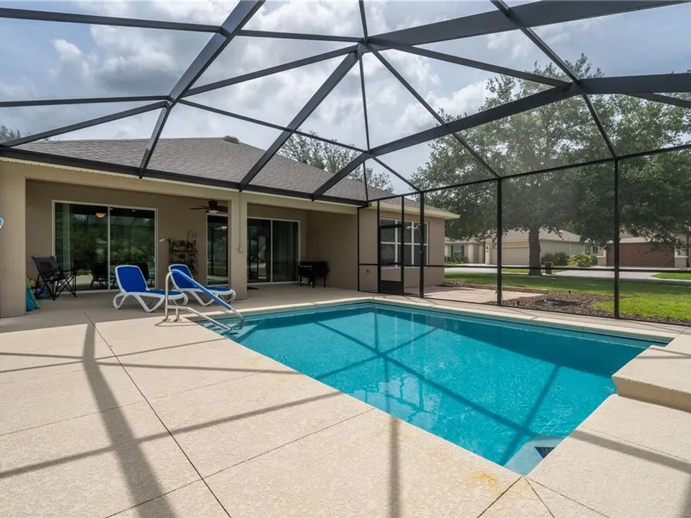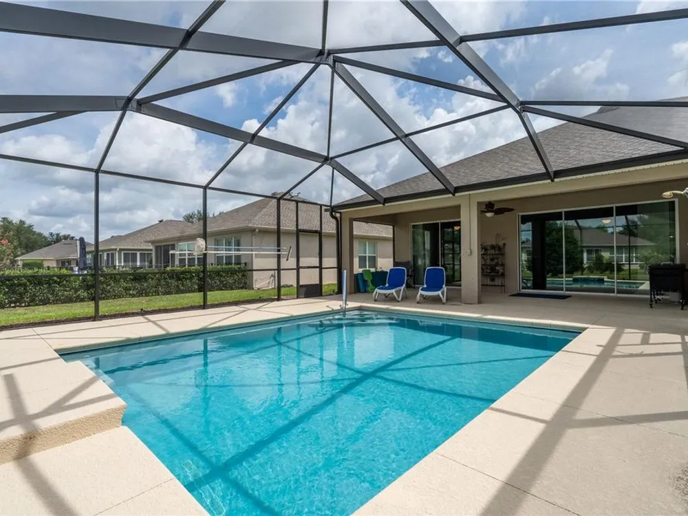 Beautiful Home with saltwater pool in Stone Creek - Del Webb 55+ Community. Welcome to resort-style living in this 1736sf, 3-bedroom, 2-bathroom home located on a large corner lot. Designed for comfort and ease, this home features an open floor plan that seamlessly connects the living, dining, and kitchen areas – perfect for both relaxing and entertaining. The eat-in kitchen also has a breakfast bar and comes fully equipped with all appliances. The primary suite includes a walk-in shower, dual sinks and a generous walk-in closet. Step outside to your own private oasis – a sparkling saltwater pool (built in 1/2021) ideal for year-round enjoyment. The screened-in garage features a sleek epoxy floor and provides extra space for hobbies or storage. Additional upgrades include a whole-home water softener system, offering added convenience and comfort. Stone Creek by Del Webb offers incredible amenities including a public golf course, fitness center, resort-style pools, pickleball and tennis, and a vibrant social calendar. Enjoy the best of active adult living in a beautifully maintained, move-in ready home.