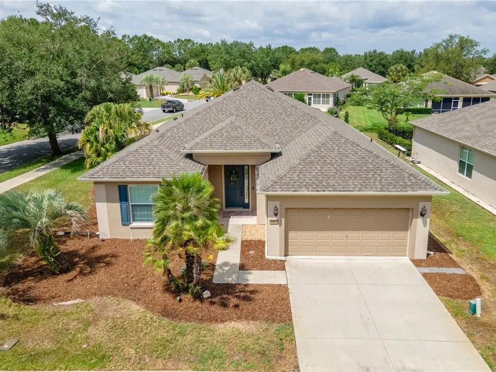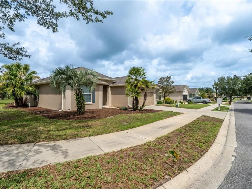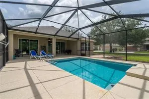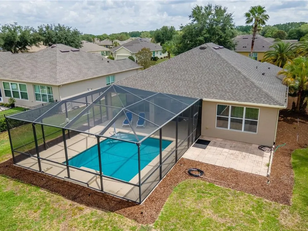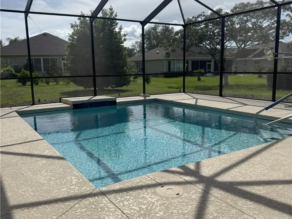 Beautiful Home with saltwater pool in Stone Creek - Del Webb 55+ Community. Welcome to resort-style living in this 1736sf, 3-bedroom, 2-bathroom home located on a large corner lot. Designed for comfort and ease, this home features an open floor plan that seamlessly connects the living, dining, and kitchen areas – perfect for both relaxing and entertaining. The eat-in kitchen also has a breakfast bar and comes fully equipped with all appliances. The primary suite includes a walk-in shower, dual sinks and a generous walk-in closet. Step outside to your own private oasis – a sparkling saltwater pool (built in 1/2021) ideal for year-round enjoyment. The screened-in garage features a sleek epoxy floor and provides extra space for hobbies or storage. Additional upgrades include a whole-home water softener system, offering added convenience and comfort. Stone Creek by Del Webb offers incredible amenities including a public golf course, fitness center, resort-style pools, pickleball and tennis, and a vibrant social calendar. Enjoy the best of active adult living in a beautifully maintained, move-in ready home.
