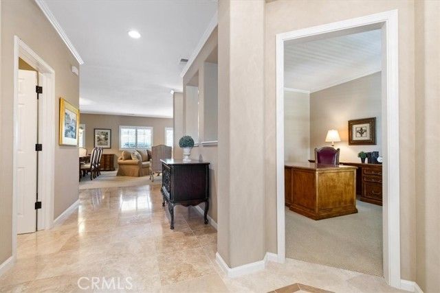 - Ceiling Fan(s), Solid Surface Counters, Crown Molding, Open Floorplan, All Bedrooms on Lower Level, Family Room, Great Room, Kitchen, Laundry Facility, Living Room, Main Level Primary, Primary Suite, Home Office