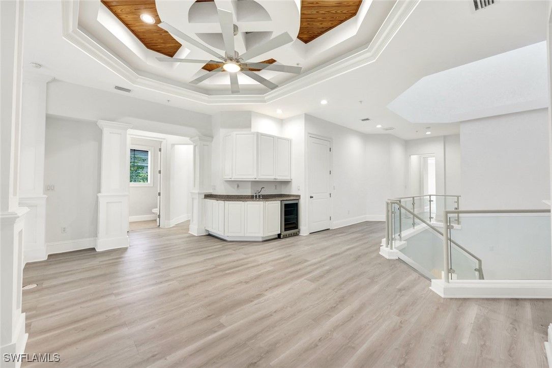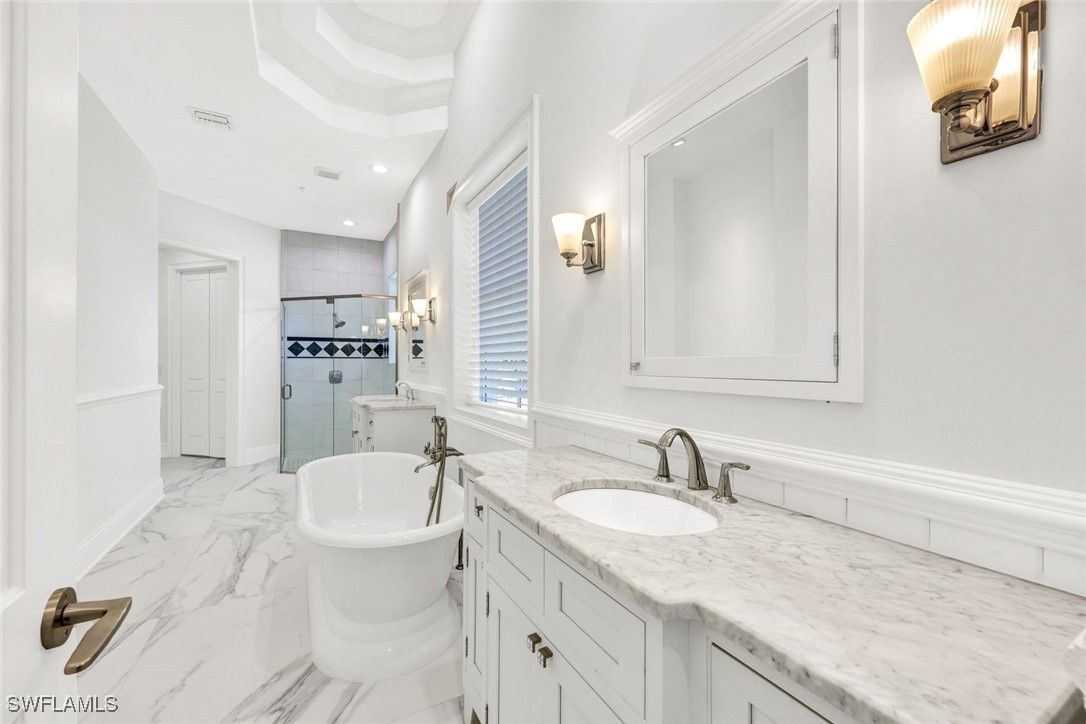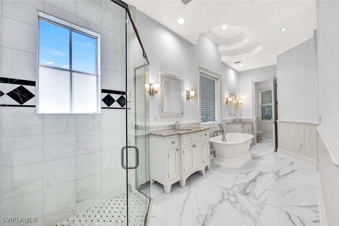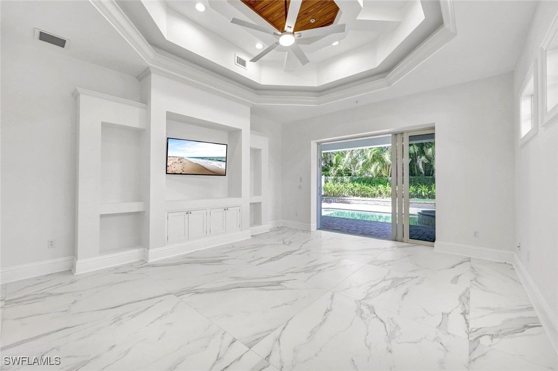 Experience refined coastal living in this light and bright four-bedroom, five-and-a-half-bath residence, ideally situated in a prime Naples location within the prestigious MOORINGS COMMUNITY. This two-story duplex masterpiece—complete with a private elevator—effortlessly combines timeless sophistication with modern comfort and peace of mind, being located in the preferred X-FLOOD ZONE. Bathed in natural light, the spacious interiors feature soaring ceilings, elegant finishes, and seamless indoor-outdoor flow, creating an inviting setting for both everyday living and entertaining. The gourmet kitchen opens to expansive living areas leading to a private outdoor retreat with a sparkling pool, spa, and enclosed backyard. The luxurious primary suite offers a spa-inspired bath with dual vanities, a walk-in shower, and a generous walk-in closet. Upstairs, a comfortable sitting area with a wet bar and a large guest suite provide the perfect space for visitors or family. Enjoy exclusive private beach access just moments away, along with proximity to Naples’ best dining, shopping, and Gulf beaches. A rare find, this home offers exceptional size, luxury, and location—an incredible value for The Moorings and a true showcase of Naples living at its finest.