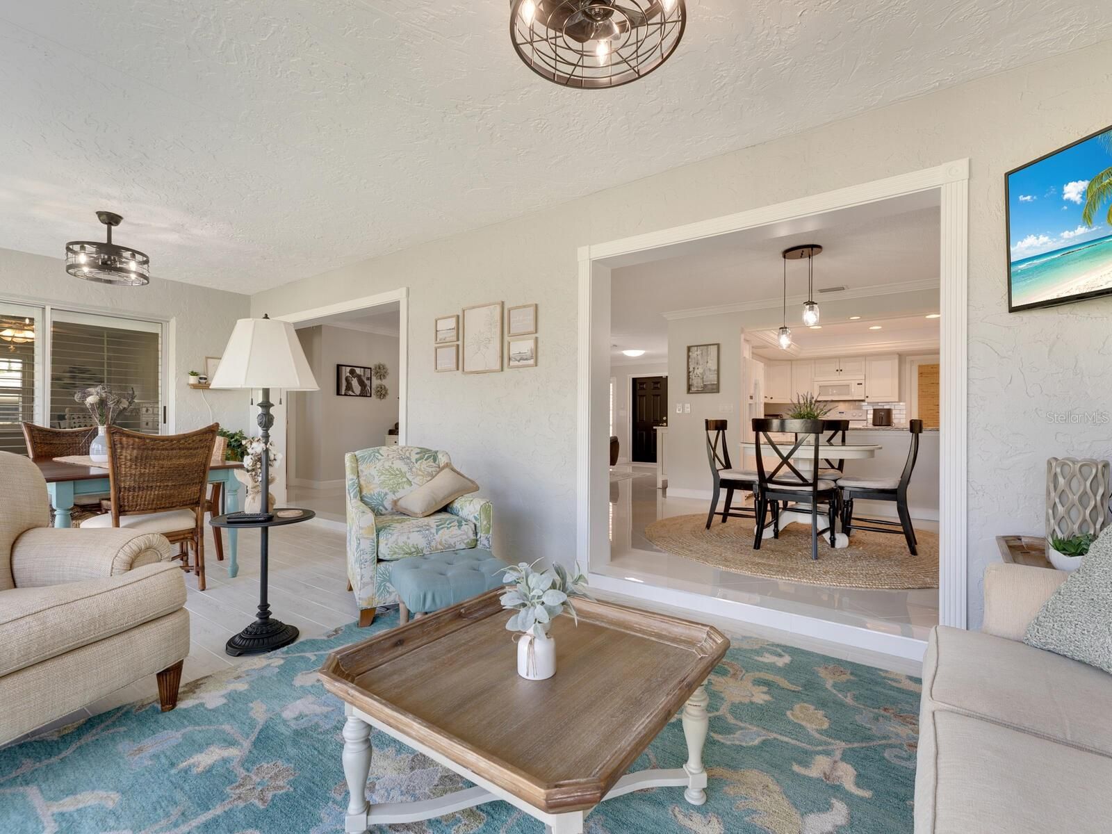 Welcome to effortless Florida living in this beautifully updated three-bedroom, two-bath villa in the desirable Palm Aire community. Behind lush landscaping, this meticulously maintained residence welcomes you through a private paved courtyard and into a bright, open interior designed for comfort and easy entertaining. The spacious living area flows seamlessly into the dining space and kitchen, enhanced by new skylights that flood the home with natural light and create an airy, inviting atmosphere. The kitchen offers crisp white cabinetry, recessed lighting and a clean, functional layout ideal for everyday living. A charming Florida room provides flexible additional living space, ideal for a sitting area, home office or casual dining, and offers direct access from the primary suite. The primary bedroom features a generous walk-in closet and an en-suite bath, while the guest bedrooms are thoughtfully positioned for privacy, with one adjacent to a full bath. Recent upgrades provide peace of mind, including new air conditioning, new roof, new flooring, new skylights, fresh interior paint and hurricane-impact windows. Plantation shutters add timeless style throughout. The association fee covers exterior and grounds maintenance, sewer, water, trash and basic cable, allowing for low-maintenance living. The community pool is just a short distance away, and Palm Aire Country Club is minutes from your door, offering optional golf, pickleball, dining and social memberships. Ideally near shopping, dining, UTC, downtown Sarasota and the area’s renowned beaches, this is a move-in-ready opportunity in one of Sarasota’s established communities. Location. Condition. Lifestyle. This one checks all the boxes.