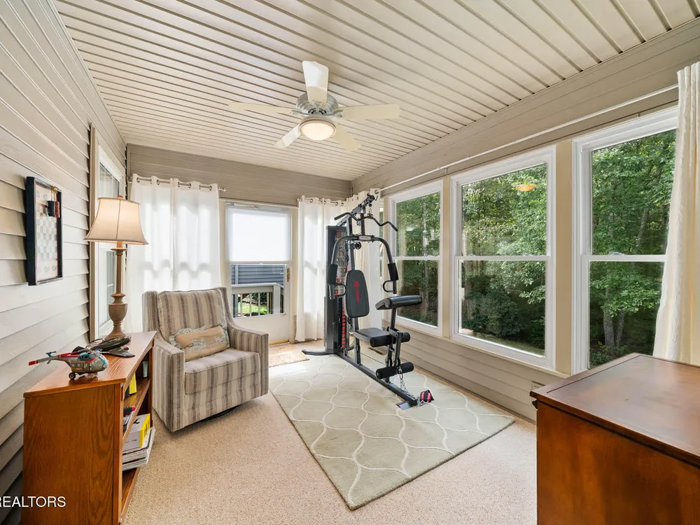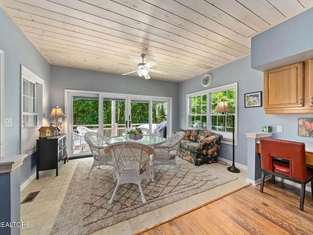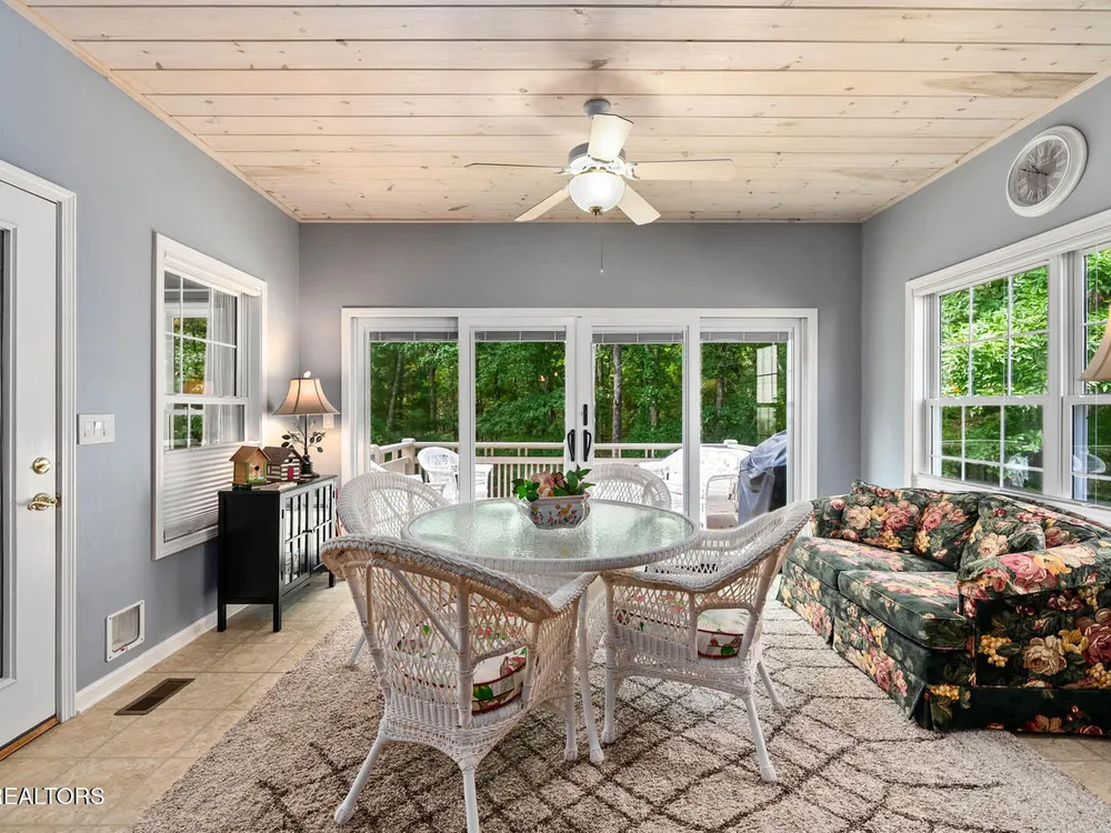 Opportunities like this don't come often - Brompton Ct. townhomes are rarely available, and for good reason. Imagine being just steps from Stonehenge Golf Course & Grill, the Racquet Center, wellness complex, indoor pool, and miles of walking trails, all while enjoying a low-maintenance lifestyle in the center of it all. Inside, this single-level home offers 2,144 sq ft of thoughtfully designed living space with 3 bedrooms, 2 baths, and a light-filled four-seasons room. The great room and dining room are accented with classic wainscoting. At the same time, the kitchen boasts granite countertops, a gas range, bar seating, ample cabinetry, and newly added tongue-and-groove ceilings. Step outside through the brand-new slider and onto Trex decking completely worry-free and ready to enjoy year-round. The primary suite is a retreat all its own, featuring an oversized walk-in closet, barn door entry, dual vanities with a dressing table, and a tiled walk-in shower. Even laundry feels elevated thanks to a reimagined utility room with built-in cabinetry and workspace. Extras you'll love: a workshop tucked into the crawlspace, a new roof (2021), natural gas, and a neighborhood designed with curbed streets and underground utilities. This is more than a home, it's a lifestyle waiting for you in Fairfield Glade