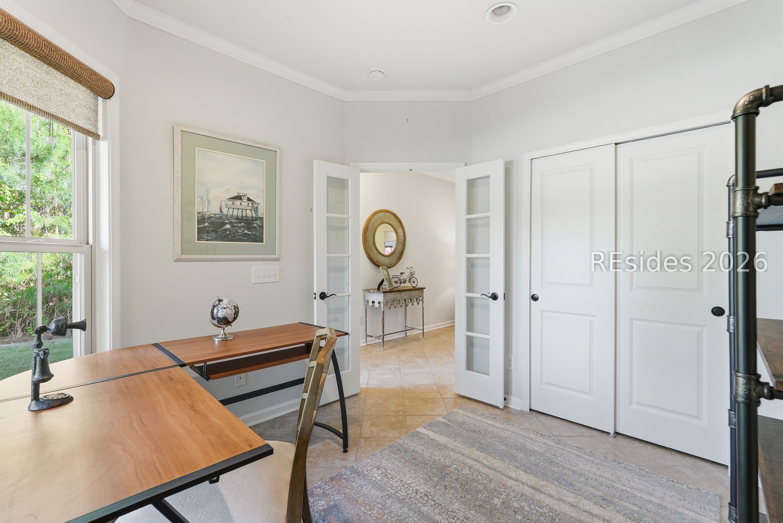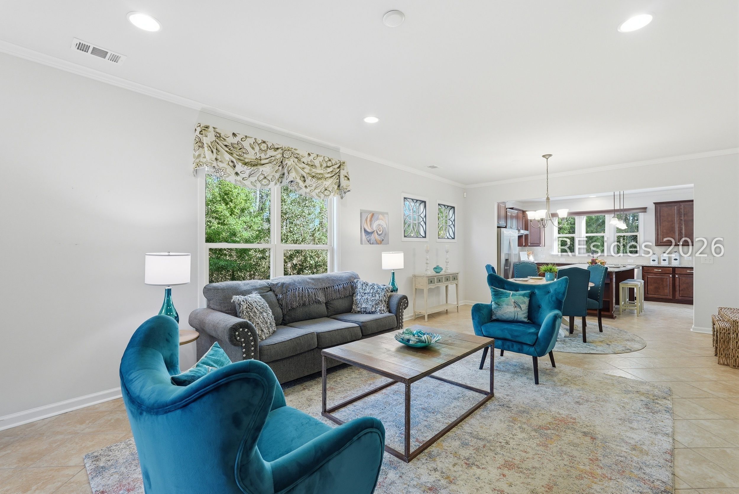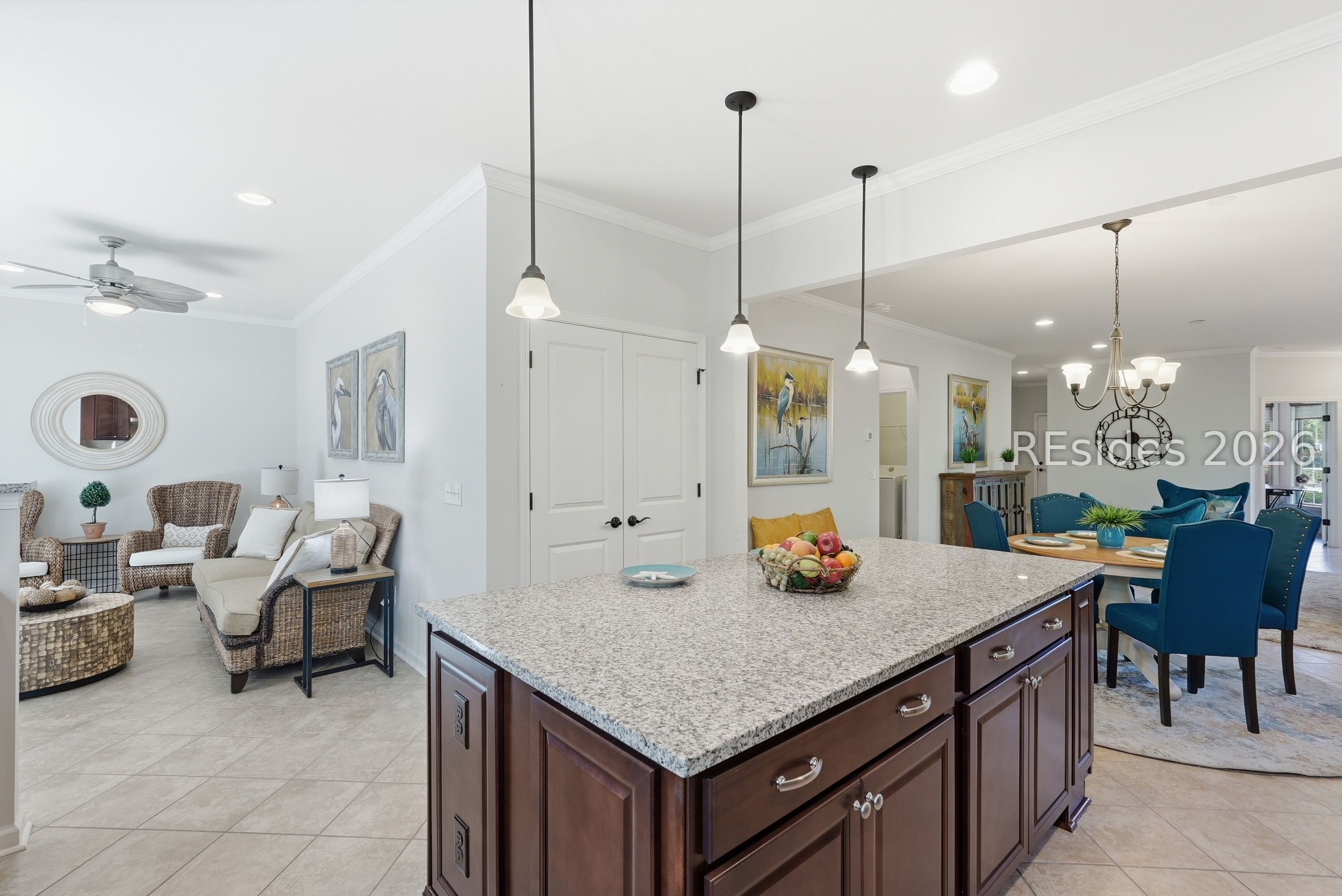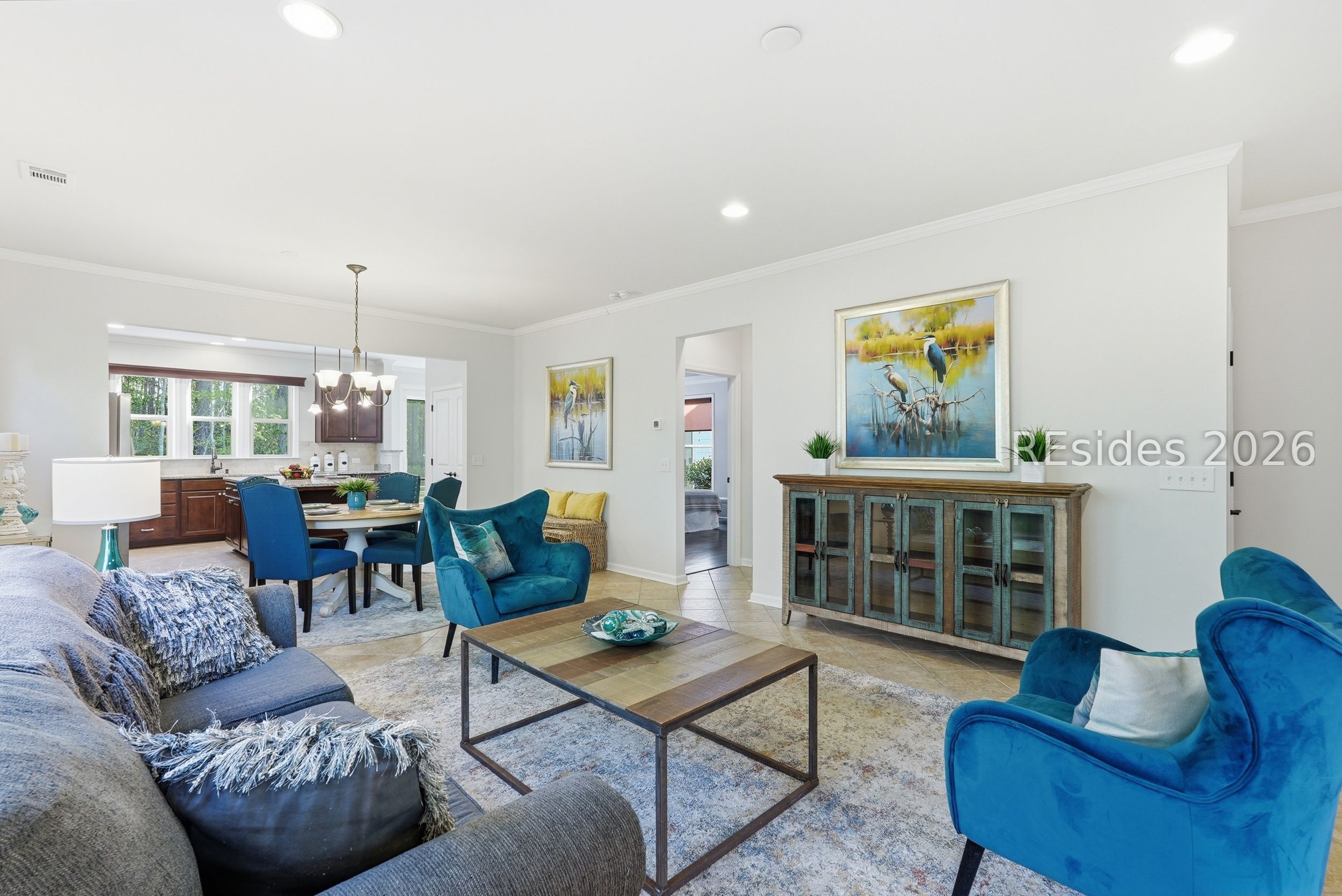 One-of-a-kind location! This home blends exceptional convenience to amenities, local dining and shopping with the quiet luxury of a peaceful, wooded setting. Thoughtful design and effortless Lowcountry living come together in this beautifully maintained Taft Street model, ideally positioned on the South Side of Sun City in Beaufort County. Built in 2017, this home offers a modern design and layout. Featuring 3 bedrooms, 2 baths, and a spacious Carolina Room, this home lives larger than its footprint with a bright, open layout and seamless flow throughout. Tile flooring runs through the main living areas, complemented by crown molding, recessed lighting, and abundant natural light. The kitchen is both functional and inviting, featuring granite countertops, tile backsplash, gas range, and a generous island with added cabinetry and pull-out drawers-ideal for everyday living or entertaining. A light-filled Carolina Room extends the living space, opening through a triple-panel slider to a covered screened porch and paver patio. The primary suite offers hardwood flooring, a tray ceiling with crown molding, and a spacious walk-in closet, while the en-suite bath features a dual vanity and a beautifully tiled walk-in shower with bench seat and transom window. A flexible third bedroom with French glass doors provides the perfect space for a home office or guest accommodations. Additional highlights include a stained-glass front door, epoxy garage flooring with pull-down attic storage, and a gas stub for grilling. Set on a private homesite on a quiet cul-de-sac street with minimal traffic, this home also offers exceptional convenience with easy golf cart access to nearby restaurants, shops, and everyday essentials, along with close proximity to the main amenity center. Enjoy resort-style amenities including pools, fitness centers, golf, pickleball, tennis, and over 200 clubs that define the Sun City lifestyle.