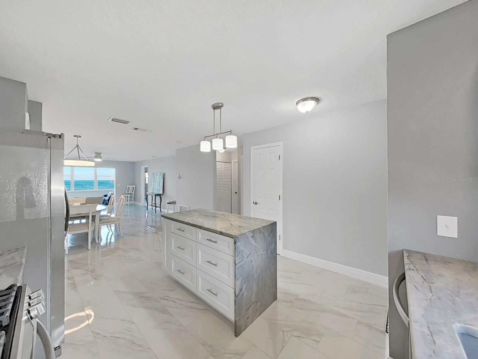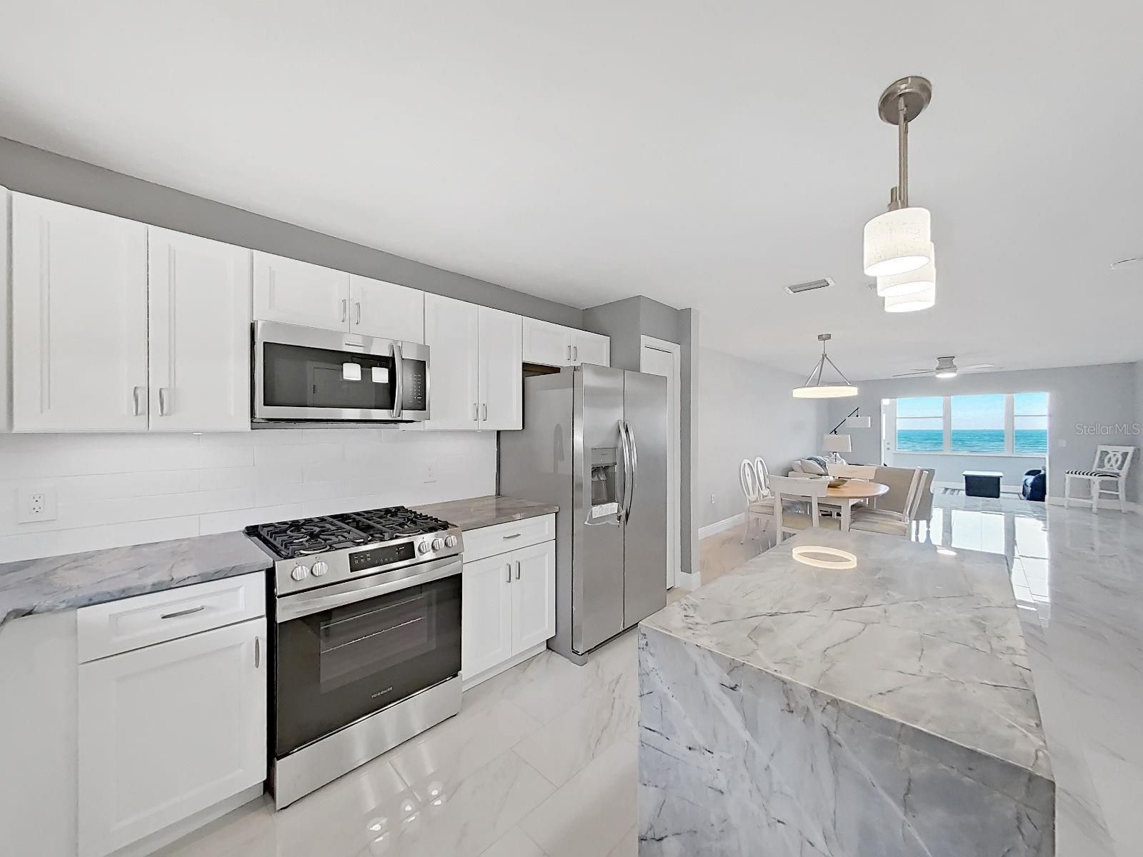 Now available! NEWLY remodeled, ground floor, waterfront 2 bedroom 2 bath gem has it all! Location location location! Just yards away from the entrance to award winning Honeymoon Island State park with sumptuous white sugar sand beaches and hiking and biking trails! Ferry dock to world class Caladesi Island leaves from there too! Inside this beauty is brand new! Appliance suite, cabinets, stone countertops 18 X 18 tile throughout with 6 Inch baseboards to top them off! Just 15-20 feet out your back door you can relax to the sound of the Gulf waters lapping along the seawall. Watch dolphins play as Snook, Trout, Redfish hunt along the seawall. Royal Stewart Arms community has a freshly remodeled Waterfront clubhouse with fitness area, Billiards room, and luxury gas fireplace in the entertainment area. Pool, Pickleball, Tennis and shuffleboard, Horseshoe pit and bocce are some of your waterfront activities to enjoy! Start living the easy life!