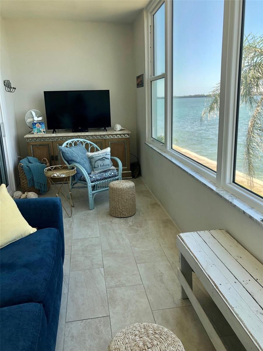 Waterfront and beautiful! Totally renovated top to bottom one bedroom one bath condo with lanai and beautiful views. New HVAC, New Roof in 2025. SELLER FINANCING AVAILABLE. Walking distance to Honeymoon Island. Steps to the Dunedin causeway to walk, lay on the beach or rent a kayak. Take the ferry from Honeymoon Island to Caladesi Island for the day with beautiful beaches and a concession stand. Waterfront pool, gym in the clubhouse, tennis and pickle ball courts, bocce ball and shuffle board. Close to charming downtown Dunedin with great restaurants, breweries and shopping. Palm Harbor is close by for great restaurants. And delicious greek food is a few miles up the road in Tarpon Springs.
