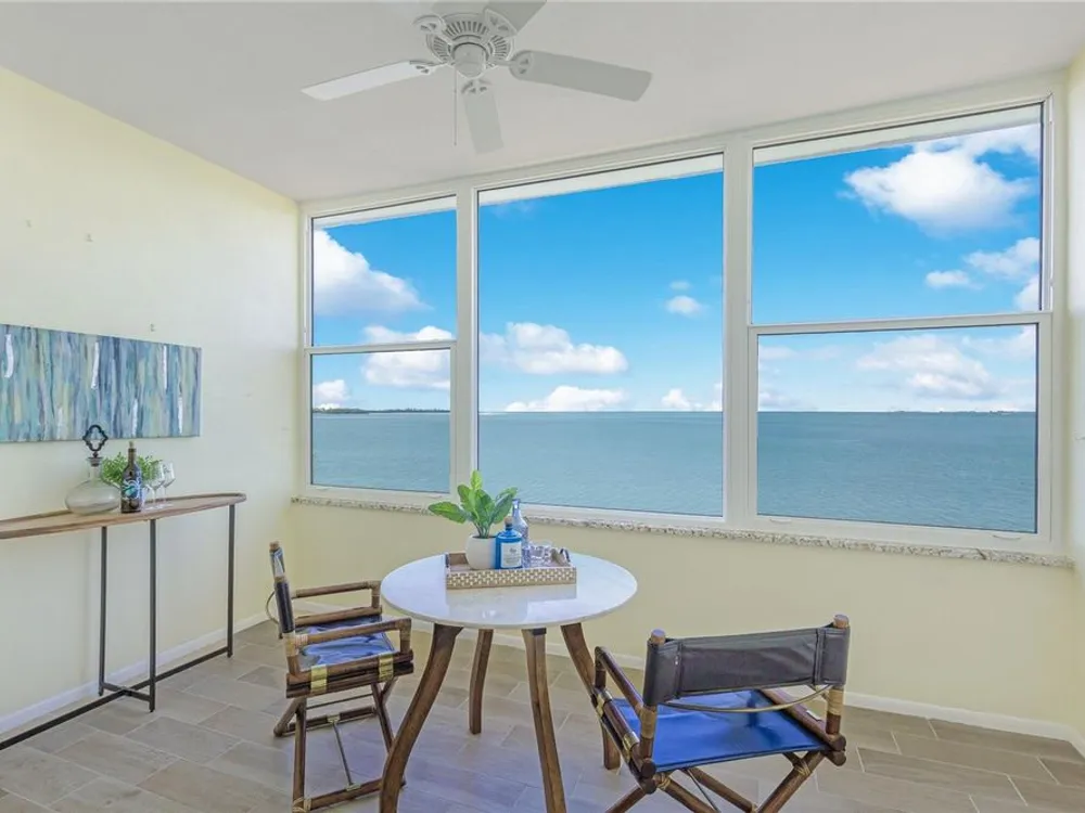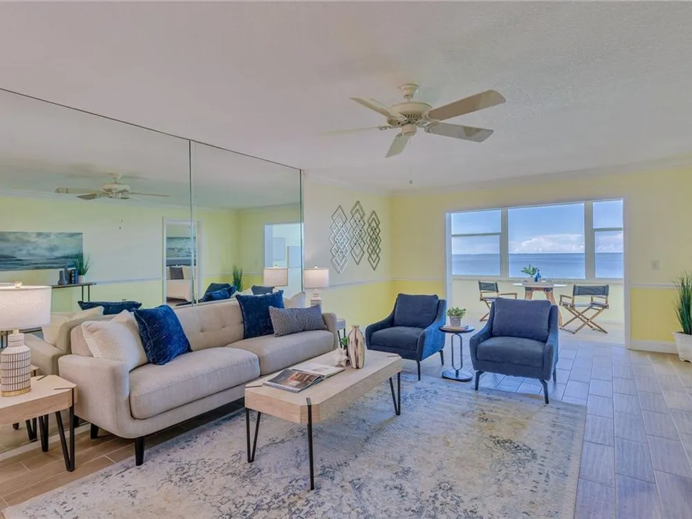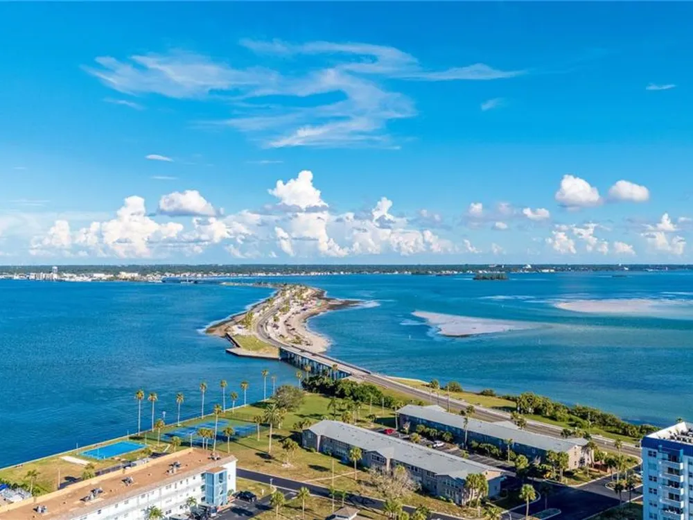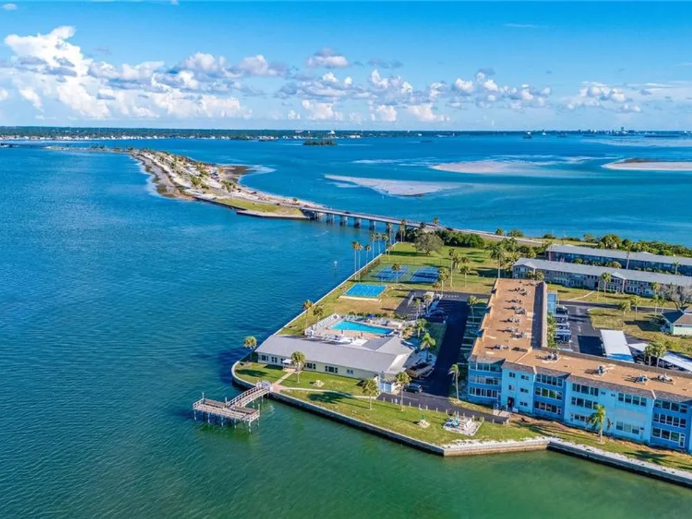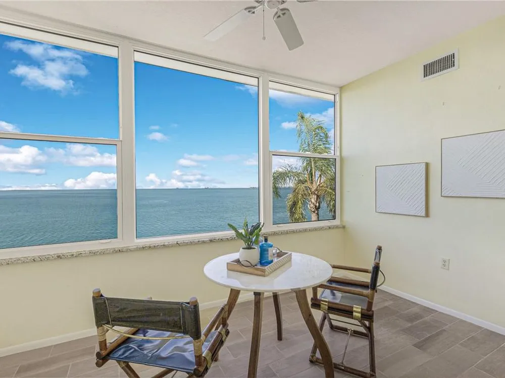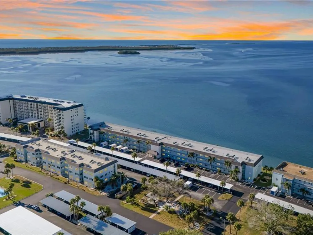 Spectacular Gulf-Front Living at Royal Stewart Arms! Welcome to the Dunoon Building at Royal Stewart Arms, where panoramic waterfront views and refined living converge. This impeccably maintained 2-bedroom, 2-bath residence showcases full, unobstructed Gulf vistas from its coveted top-floor setting—an ideal retreat to enjoy mesmerizing sunsets and daily encounters with dolphins, manatees, and coastal birdlife. Offering 1,141 sq. ft. of thoughtfully designed living space, this home features a desirable split-bedroom floor plan, ensuring both comfort and privacy. The expansive 25’ x 14’ Great Room is perfect for entertaining, while the inviting 12’ x 11’ Florida Room offers a serene perch to take in the breathtaking views. The chef-inspired kitchen is a standout, boasting 42-inch custom solid wood cabinetry paired with striking granite countertops. The primary suite is generously sized, complete with a large walk-in closet, spa-like ensuite bath, and tranquil Gulf views. A spacious second bedroom enjoys convenient access to the updated guest bath, making it ideal for visiting family or friends. No detail has been overlooked… this residence is appointed with hurricane-impact windows, elegant plantation shutters, custom crown molding, 6-inch baseboards, and brushed nickel hardware throughout. Upgraded raised-panel doors and tasteful fixtures enhance the home’s timeless sophistication. Royal Stewart Arms, a meticulously maintained 55+ community, offers resort-style amenities including a heated waterfront pool, tennis courts, fitness center, fishing pier, clubhouse, outdoor grills, and beautifully landscaped walking paths. HOA fees cover cable TV, water, sewer, gas, trash, exterior maintenance, pest control, and more. Assigned parking, elevator access, and laundry facilities on each floor add to the convenience. Ideally located on Honeymoon Island Causeway, you’ll be just moments from Honeymoon Island State Park, vibrant downtown Dunedin, award-winning restaurants, charming boutiques, and the Pinellas Trail. With over 300 feet of private Gulf frontage and direct Gulf-to-Bay water access, this is coastal living at its finest. This rare offering presents an exceptional opportunity to own a move-in ready, Gulf-front condo in one of Dunedin’s most sought-after waterfront communities.