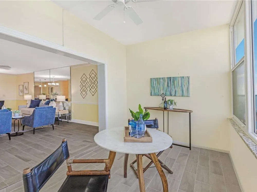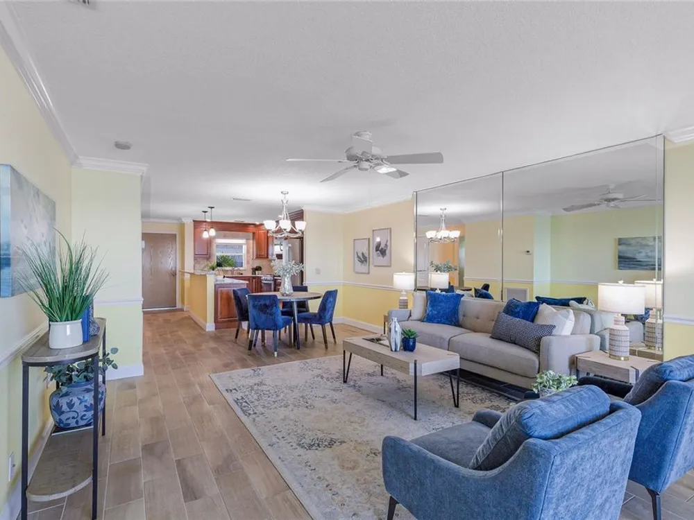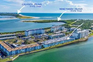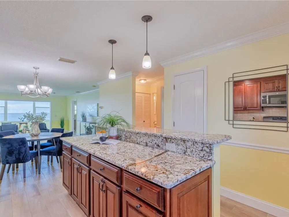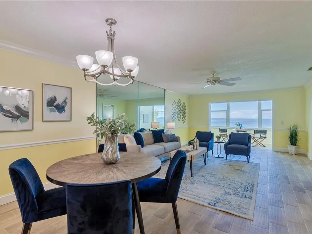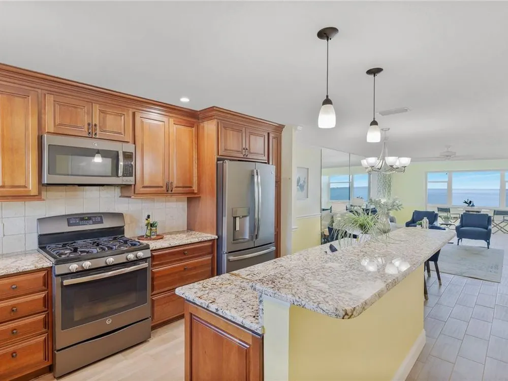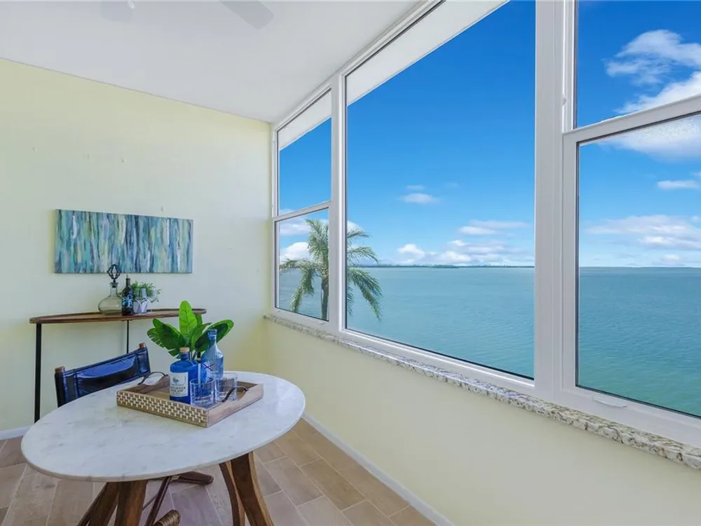 Spectacular Gulf-Front Living at Royal Stewart Arms! Welcome to the Dunoon Building at Royal Stewart Arms, where panoramic waterfront views and refined living converge. This impeccably maintained 2-bedroom, 2-bath residence showcases full, unobstructed Gulf vistas from its coveted top-floor setting—an ideal retreat to enjoy mesmerizing sunsets and daily encounters with dolphins, manatees, and coastal birdlife. Offering 1,141 sq. ft. of thoughtfully designed living space, this home features a desirable split-bedroom floor plan, ensuring both comfort and privacy. The expansive 25’ x 14’ Great Room is perfect for entertaining, while the inviting 12’ x 11’ Florida Room offers a serene perch to take in the breathtaking views. The chef-inspired kitchen is a standout, boasting 42-inch custom solid wood cabinetry paired with striking granite countertops. The primary suite is generously sized, complete with a large walk-in closet, spa-like ensuite bath, and tranquil Gulf views. A spacious second bedroom enjoys convenient access to the updated guest bath, making it ideal for visiting family or friends. No detail has been overlooked… this residence is appointed with hurricane-impact windows, elegant plantation shutters, custom crown molding, 6-inch baseboards, and brushed nickel hardware throughout. Upgraded raised-panel doors and tasteful fixtures enhance the home’s timeless sophistication. Royal Stewart Arms, a meticulously maintained 55+ community, offers resort-style amenities including a heated waterfront pool, tennis courts, fitness center, fishing pier, clubhouse, outdoor grills, and beautifully landscaped walking paths. HOA fees cover cable TV, water, sewer, gas, trash, exterior maintenance, pest control, and more. Assigned parking, elevator access, and laundry facilities on each floor add to the convenience. Ideally located on Honeymoon Island Causeway, you’ll be just moments from Honeymoon Island State Park, vibrant downtown Dunedin, award-winning restaurants, charming boutiques, and the Pinellas Trail. With over 300 feet of private Gulf frontage and direct Gulf-to-Bay water access, this is coastal living at its finest. This rare offering presents an exceptional opportunity to own a move-in ready, Gulf-front condo in one of Dunedin’s most sought-after waterfront communities.