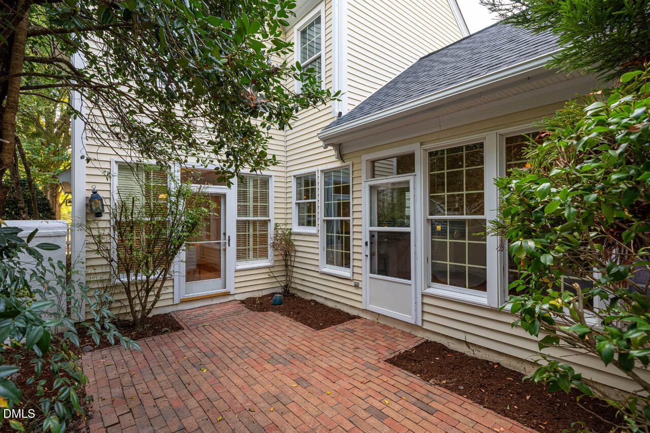 LOCATION! Charleston-style Fearrington home ideally situated just across from the park, pond, Village Center & beloved farmer's market. Enjoy timeless Southern charm with a covered front porch & private patio/courtyard, perfect for quiet mornings or entertaining. Inside, soaring ceilings, skylights & generous windows fill the home with natural light. The updated kitchen features Silestone counters, tile backsplash, cooktop, wall oven & microwave—ready for your favorite meals. Flexible floor plan includes formal dining room that doubles as home office or TV room, plus main-level primary suite with 10-ft ceilings plus 2 additional BRs upstairs. 2 gas log fireplaces provide comfort & ambiance. Practical touches include laundry room with sink & storage, newer roof (less than 5 years old) & alley-access double garage with private bonus room above—perfect for hobbies, guests, or home gym. All this in a welcoming community just minutes from Chapel Hill & Chatham Park.