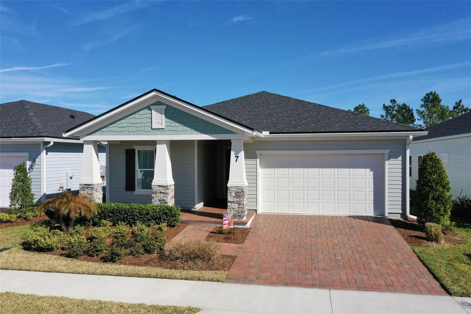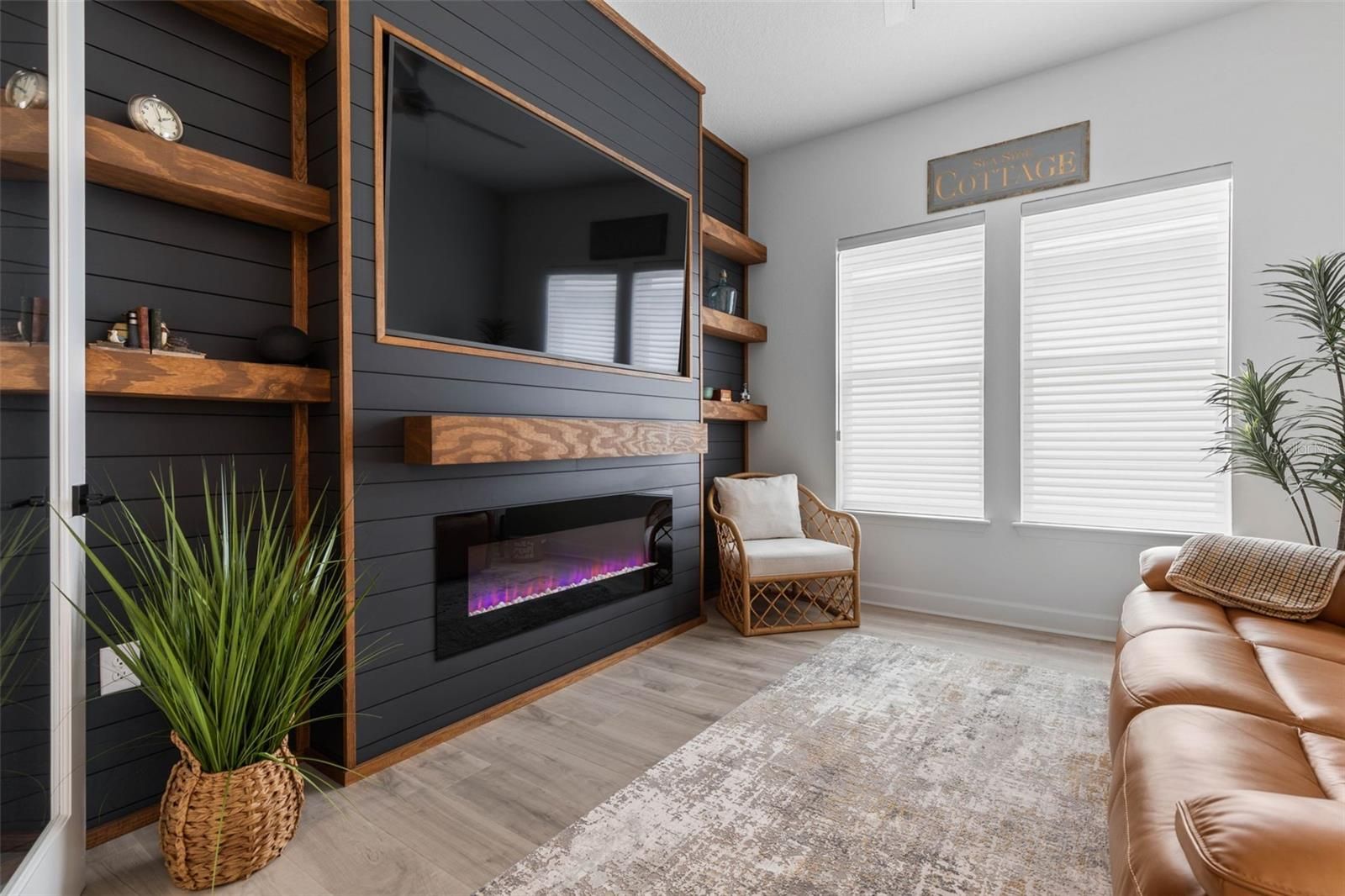 Welcome to effortless Florida living in the sought-after 55+ Reverie community of Palm Coast. This beautifully maintained 2-bedroom, 2-bath home offers a perfect blend of style, comfort, and resort-inspired amenities, all within a gated setting. From the moment you arrive, you’ll appreciate the home’s charming curb appeal and thoughtful upgrades throughout. Inside, the layout is light, bright, and impeccably cared for — truly move-in ready. The kitchen anchors the main living space with rich cabinetry, stainless steel appliances, and a spacious island ideal for entertaining or everyday living. Elegant details elevate the home, including feature walls, electronic silhouette shades, and upgraded tile in the primary bathroom, creating a refined yet relaxed atmosphere. The primary suite offers a peaceful retreat with a spa-like ensuite, while the second bedroom provides comfortable accommodations for guests. A versatile flex room adds extra functionality — perfect for a home office, hobby space, or media room — and the TV conveys for added convenience. Step outside to the lanai, where Shark coating on both the lanai and garage floor adds durability and a clean, finished look. Additional highlights include a transferable A/C warranty and a floor to ceiling glass walled lanai. Reverie residents enjoy an active, social lifestyle with outstanding amenities, including a resort-style pool, pickle ball and tennis courts, dog park, gated entry, and more — all designed to support vibrant, low-maintenance living. HOA fee includes internet and lawn care. You will be worry free with fertilizer, shrub maintenance, edging, and blowing all taken care of! This is an exceptional opportunity to own a home that truly reflects pride of ownership in one of Palm Coast’s premier 55+ communities.