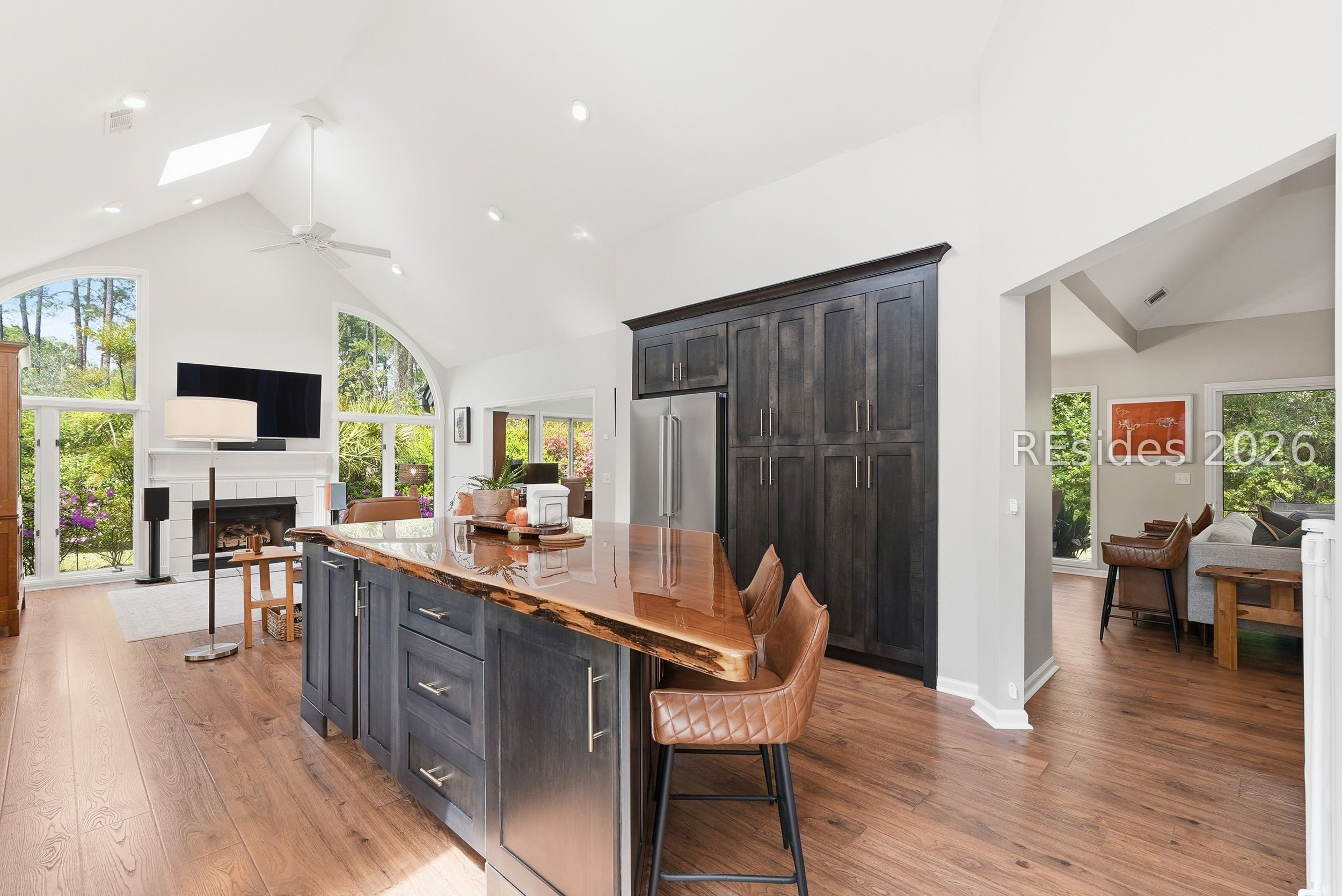 Tucked within the desirable Hilton Head Plantation community, this beautifully updated three bedroom, three bathroom home offers a rare blend of comfort, privacy, and classic Lowcountry living. The fully renovated kitchen is a standout, featuring a custom live edge, book matched walnut slab island finished with clear coat epoxy, along with dual sinks and instant tankless hot water systems for added convenience.Pergo engineered hardwood flooring was installed in 2023, bringing a fresh, modern feel throughout the home, while the roof was replaced in 2016 for peace of mind. The spacious floor plan is designed for both everyday living and entertaining, with seamless flow to a private backyard setting.A protected wooded area to the right, owned by the Nature Conservancy, enhances the sense of seclusion and natural beauty. This property presents an excellent opportunity as a primary residence, vacation home, or income producing investment on Hilton Head Island.