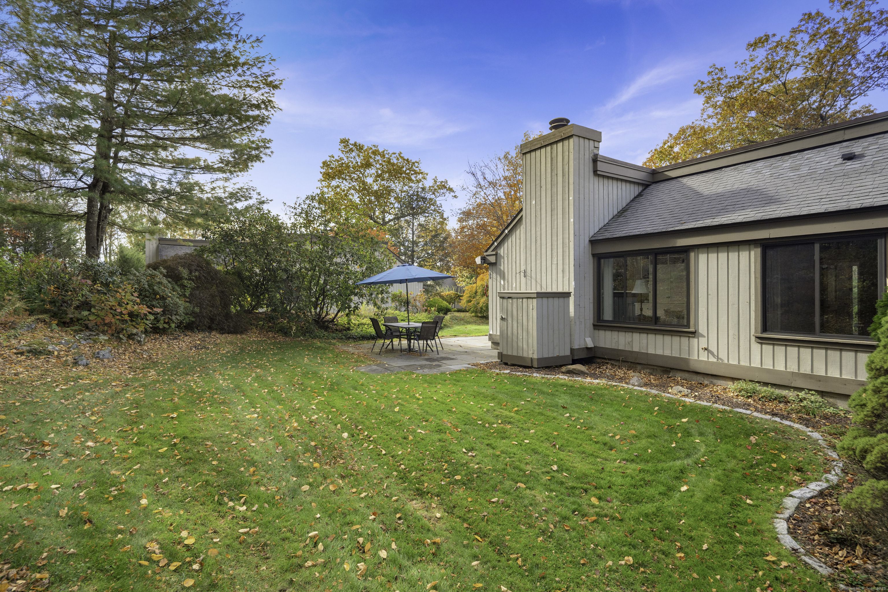 Tucked away in a community is a pristine end unit one level living "litchfield style" ranch home. The attached one car garage creates ease to have access directly into the bright and newly applianced eat in kitchen. A sprawling 1447 sq ft is perfectly designed and gives you a quite wing at one end of the home featuring a cozy office/bdrm with builtins along with a the master ensuite and a newly renovated high end quality bathroom with a walk-in shower and a seat for comfort. Tucked away in the back of the home feautures a spacious living room and dining room with 2 sliders, a fireplace, built-ins and tray ceilings overlooking the patio and the back yard.