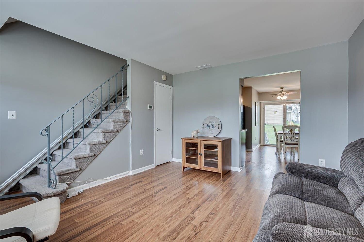 Welcome to this well-maintained 1-bedroom plus den (possible 2nd bedroom), 1.5-bath condo located in the highly desirable 55+ community of Cheesequake Village in Matawan. This inviting home offers a comfortable, low-maintenance lifestyle with a bright and airy open layout. Step inside to a freshly painted interior and luxury vinyl flooring throughout, creating a warm and welcoming atmosphere. The open living and dining area is ideal for everyday living and entertaining, featuring sliding glass doors with built-in blinds leading to a private patio, perfect for relaxing or hosting guests. The kitchen offers ample cabinetry and a functional layout designed for convenience. The main level also includes a laundry room and a convenient half bath. Upstairs, you will find a spacious primary bedroom, a versatile den that can be used as a guest room, office, or additional living space, and an updated full bath. A private second-floor balcony provides the perfect spot to enjoy your morning coffee or unwind in the evening. Additional features include ceiling fans, pull-down attic access with attic fan, chairlift, and an air scrubber system. Major updates include a new roof (approximately 2 to 3 years), furnace is approximately 12 years old and was last serviced in 2019. Residents of Cheesequake Village enjoy a vibrant lifestyle with amenities, including a clubhouse, outdoor pool, shuffleboard, bocce ball, and a community bus. Conveniently located near, major highways, shopping dining, and just minutes from Cheesequake State Park. Enjoy easy living in this peaceful, well-established community. Don't miss the opportunity!