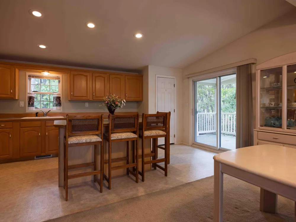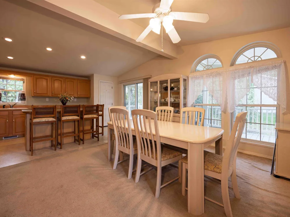 Such a lovely home! Sits at the top of the court surrounded by woods! Nice floorplan is open concept, high ceilings with lots of oversized windows allowing for bright sunlit rooms/ Excellent kitchen with numerous cabinets, center island with seating, eat in area and sliders to the deck/....This is an over 55 community offering wonderful ammenities including Pool/ Saunas/ Pickleball/ Fitness Center/ Shuffleboard Court/ Billiards/ Bocce Ball court/ Clubhouse & Community Center!/ Pets permitted, typically no more than 2 pets, restrictions for dog breeds, see attached sample Guidelines for more details/ Water & Sewer included in monthly Rent/ Wa & Se not supplied by the municipality rather onsite within the community/ The monthly land rent is so affordable at just $557.00 per month, includes water & sewer! (monthly land rent planned to increase by $3 in Jan 2026)