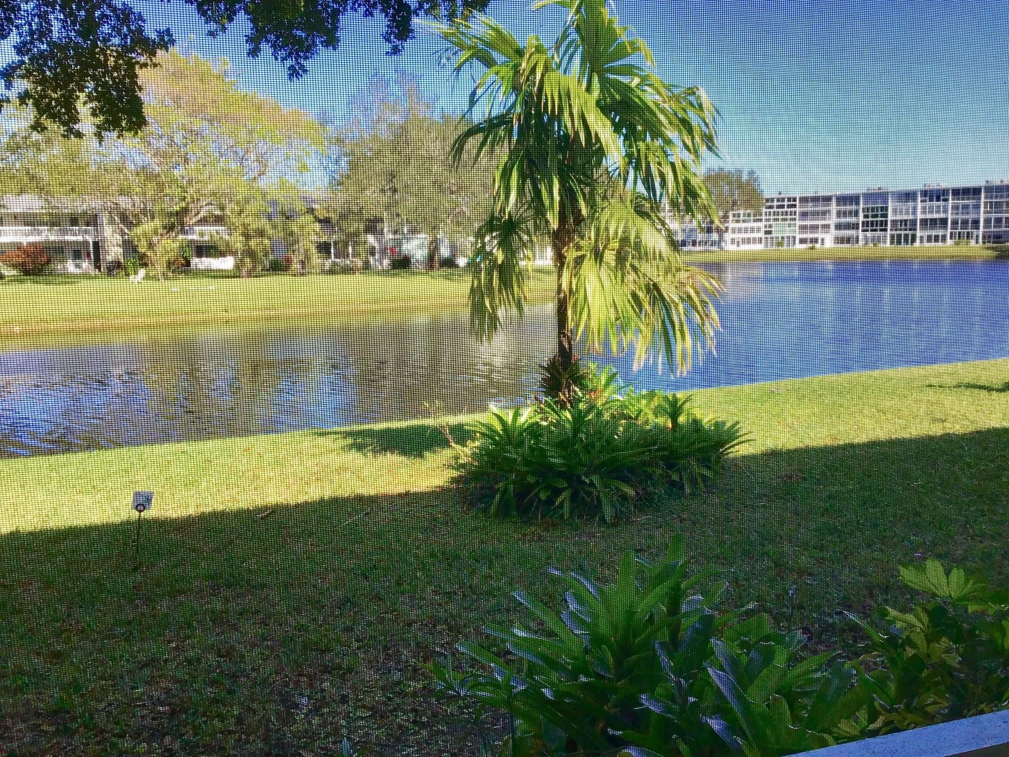 Centrally located first floor unit with Panoramic water views and easy lake access from the back balcony. Bring your Toothbrush & move into this furnished condo. EASY living, with parking right outside your door, first level entry, ceramic flooring, & a lovely water view. Walk in Shower & Heat Lamp in Master Bath. Buy now, and decide to renovate later, or, update to your taste. Ideal for someone looking to call this home, or their home away from home. Seasonal Renting permitted after 2 years of ownership. Condo Village life-style includes a premier fully renovated club-house with endless activities, transportation, an on-site restaurant. Located just 3 miles from the silky sands of Deerfield Beach and the International Fishing Pier. 3 associations.