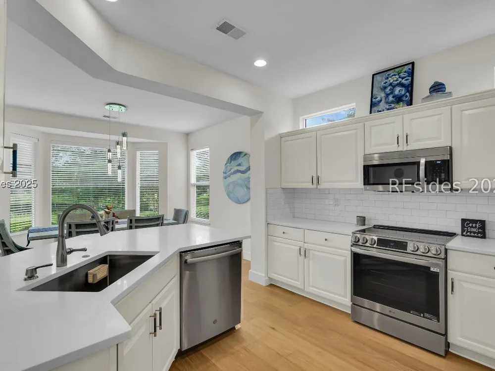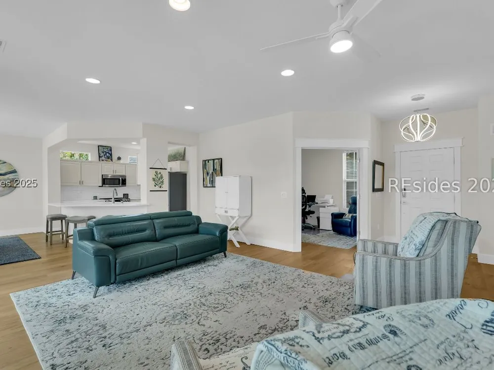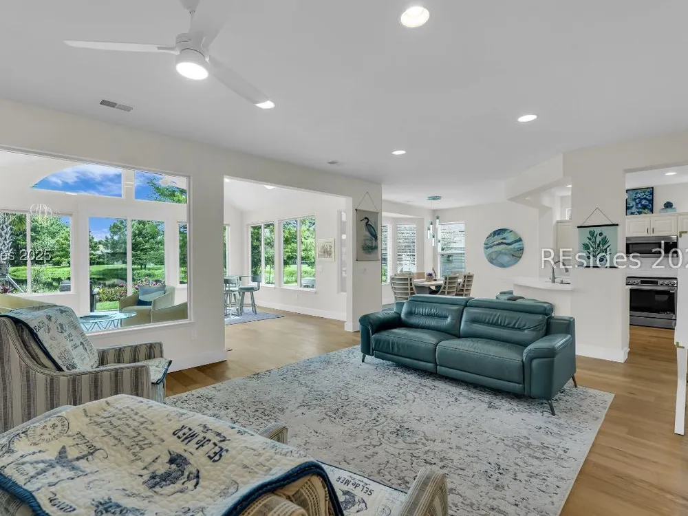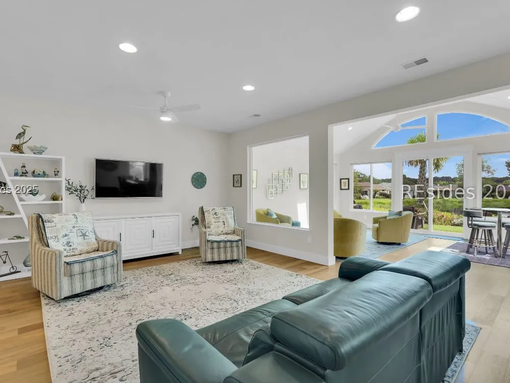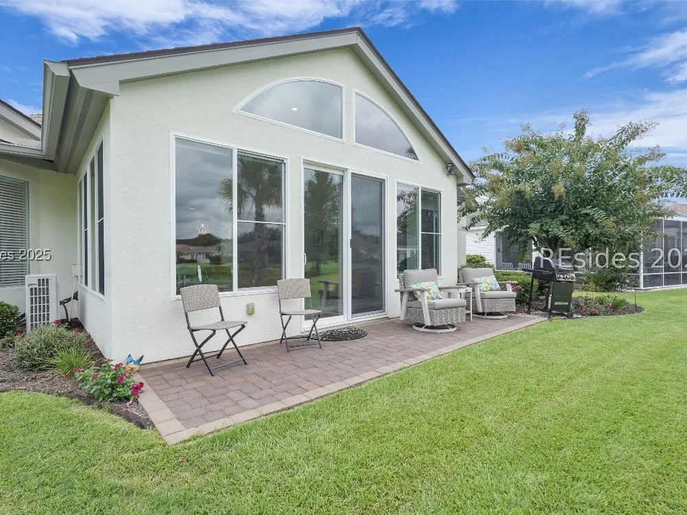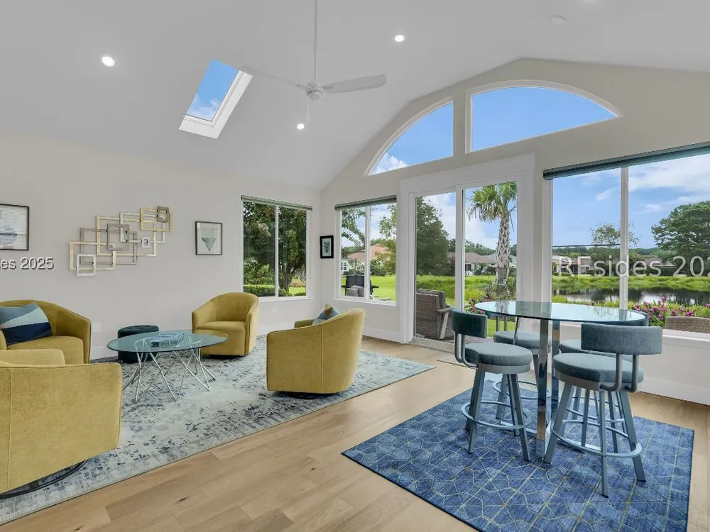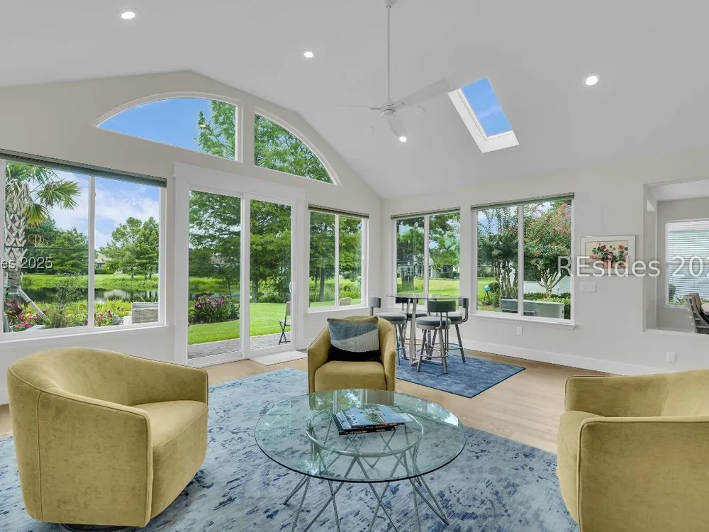 The best of Lowcountry living awaits at 7 Plymouth Lane! Located in the highly sought-after SUN CITY HILTON HEAD, this UPDATED, UPGRADED & EXPANDED Teton model is truly one of a kind. The showstopper is the nearly 340 sq. ft. Carolina Room with cathedral ceiling and skylights, perfect for soaking in sweeping lagoon views and the abundance of Lowcountry wildlife. Whether enjoying a peaceful morning coffee, evening sunset or entertaining a family & friend event, this space delivers. Renovated in 2023, the home features fresh interior paint, newer engineered wood flooring, beautifully redone kitchen and baths, stainless steel appliances, upgraded door hardware, ceiling fans, light fixtures, and more. Offering 2 bedrooms, 2 baths, and a flex/office space, the open-concept design includes a modern kitchen, laundry room with extra storage, and garage enhancements. Situated on the south side of Sun City with lower Beaufort County taxes, the home is framed by a meticulously landscaped yard, sealed paver driveway, and undeniable curb appeal. While many describe themselves as move in ready, this is the definition of Lowcountry Living! ************** Sun City Hilton Head in Bluffton, SC, is a premier 55+ community spanning over 5,000 acres, offering an unmatched resort-style lifestyle. Residents enjoy 54 holes of golf across three scenic courses, six pools (including indoor lap and leisure pools), and three fully equipped fitness centers with classes and studios. The sports park offers tennis, pickleball, bocce, softball, volleyball, croquet, and more. Social and creative outlets abound with a ballroom, 16,000 sq ft performing arts theater, arts and crafts studios, woodworking shop, billiards, card rooms, and a library. Outdoor enthusiasts appreciate the Lake Somerset and Riverbend Docks, fishing, miles of walking and nature trails, community gardens, and three dog parks. There are over 150 clubs covering everything from arts and music to technology and lifelong learning. Additional amenities include on-site restaurants, RV and boat storage, and a secure, gated environment with convenient access to Hilton Head beaches, Historic Savannah and Charleston along with local shopping, dining, and healthcare. Sun City is also expanding with a new multimillion-dollar resort style amenity center coming soon!
