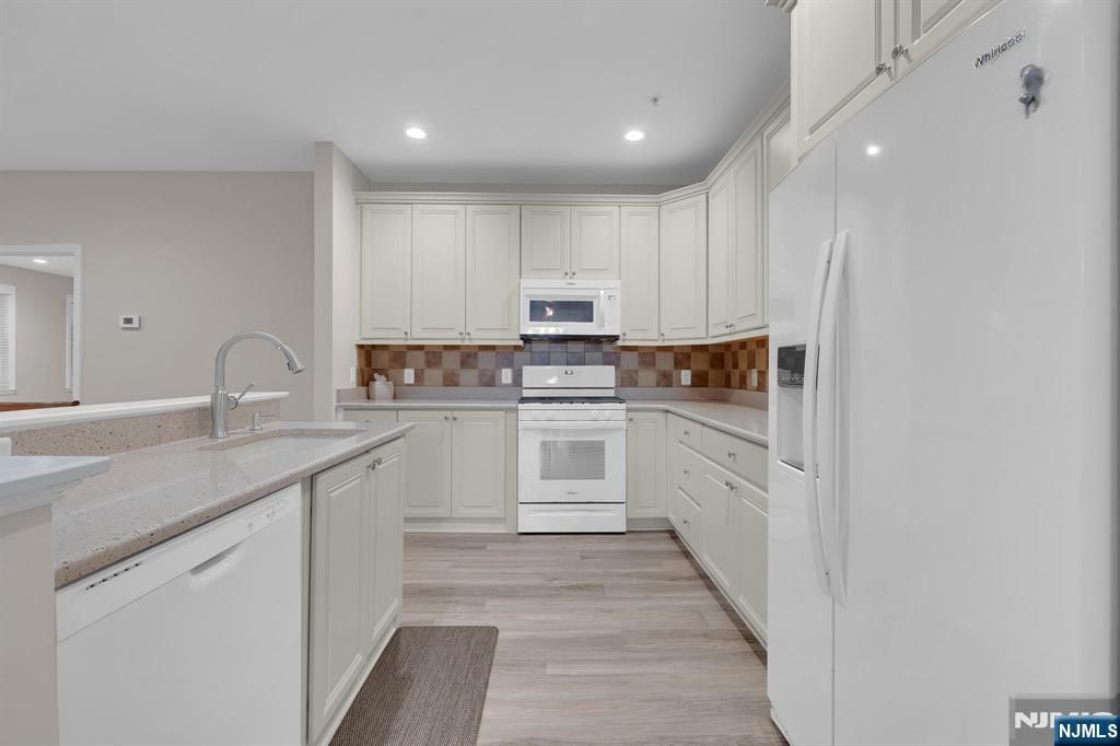 Enjoy the best of community living in this vibrant active adult neighborhood, featuring a clubhouse, pickleball courts, fitness center, pool, walking paths, and more.This spacious first-floor condo offers convenience from the moment you arrive, with immediate access off the main entry. A premier location provides wooded views from the kitchen, living room, bedrooms and balcony, giving you privacy and a peaceful backdrop. Inside, the open kitchen offers abundant cabinetry, updated appliances, and superior counter space.The generous dining and living room combination is filled with natural light and opens to the balcony.Just off the living area, a flexible bonus room is perfect for an office, den, or creative space to suit your lifestyle needs. Additional highlights include the primary suite features a walk-in closet and an updated walk-in shower designed for comfort and ease. The second bedroom also includes a walk-in closet and a private full bath.A dedicated laundry room with full-size washer and dryer (all appliances included) provides exceptional storage options. Additional features include an assigned garage space, plentiful guest parking and private storage unit for seasonal items and building elevator. With its spacious layout, thoughtful floor plan, and access to resort-style amenities, this condo offers both comfort and convenience in a premier setting.Need easy access to major highways, shops and trains? Your wish is our command! Next Chapter begins here!
