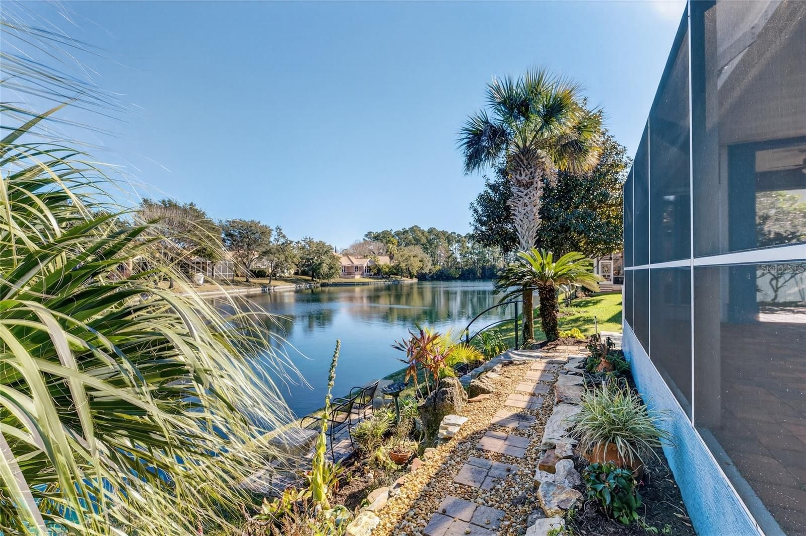 Lakefront living under $500,000! Welcome to 7 Sailfish Drive, a beautifully upgraded home located inside a gated golf community with resort-style amenities. This 2038 sq ft residence offers peaceful lake views, soaring ceilings, and an incredible amount of storage, making it truly one of a kind. Step inside to high vaulted ceilings and an abundance of natural light pouring in through large windows that frame the water from both the kitchen and family room. The kitchen was thoughtfully renovated in 2024, with corian countertops and backsplash, solid wood cabinetry, and a wall removal that opens the space to the family room, perfect for entertaining. A solar tube keeps the kitchen so bright, you rarely need the lights on. The outdoor space is where this home truly shines. The owners personally designed and completed all landscaping, including custom stonework along the lake, creating a tranquil seating area right at the water's edge. The lanai is extremely functional, offering separate zones for outdoor dining overlooking the lake, a hot tub added in 2024, and additional space for lounging. The primary bedroom is perfectly positioned along the lake, allowing you to wake up every morning to peaceful water views. Three bedrooms are located on the main floor, including the primary suite with a fully updated bathroom (2024) and custom designed dual walk in-closets. Plantain shutters throughout and hurricane-resistant sliding glass doors add style and peace of mind. Above the garage, the FROG (family room over garage) offers incredible flexibility, ideal for a creative studio, gym, game room or guest space. This area also provides access to a two-level floor attic, offering storage rarely found in homes this size. Additional highlights include: over $60,000 in upgrades, an oversized 24x24 insulated garage with custom Closet By Design cabinetry and a separate storage room. Roof (2023), Closet by design media center in family room, HVAC (2020), Hot water heater (2022), Leaf Filter (2021) and more ! Homes like this, with views, upgrades, and storage, are rare - especially in this price point. Schedule your private showing and experience 7 Sailfish Drive for yourself!