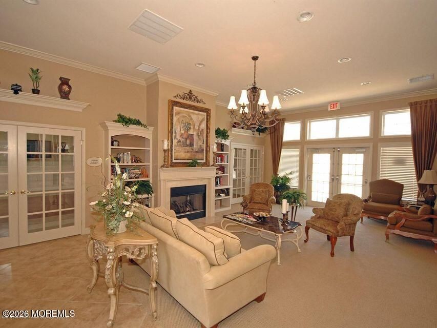 The Village Grande at Battleground perfectly blends an active Country Club lifestyle with the convenience of a prime Manalapan Township location. This well-maintained Avebury model with loft and full basement offers three bedrooms, three full baths, and desirable 9' ceilings on the first level. The Living Room and Dining Room feature gleaming hardwood flooring and provide elegant spaces for entertaining. The gourmet kitchen is appointed with 42'' wood cabinetry, stainless steel appliances, granite countertops, and an optional 10x10 sunroom just off the kitchen, ideal for casual dining or morning coffee. The spacious Family Room with hardwood flooring is open to the kitchen, creating a warm and inviting flow perfect for everyday living and holiday gatherings. The first-floor primary suite is a true retreat, highlighted by a tray ceiling, two walk-in closets, and a spa-inspired primary bath with double sink vanity, soaking tub, and stall shower with body sprays. A second bedroom on the main level is conveniently located adjacent to a full bath. The upper level offers a versatile loft area, a third bedroom, and a full bath, perfect for guests or additional living space. Residents enjoy access to The Grande Club, featuring a fitness center, billiards room, card room, and lounge/library, along with a beautiful outdoor pool. The clubhouse grounds also include a practice putting green, ideal for those planning to enjoy Battleground Country Club membership. Ideally located close to major shopping, with easy access to NYC and the Jersey Shore, this home offers lifestyle, comfort, and convenience in one exceptional community.