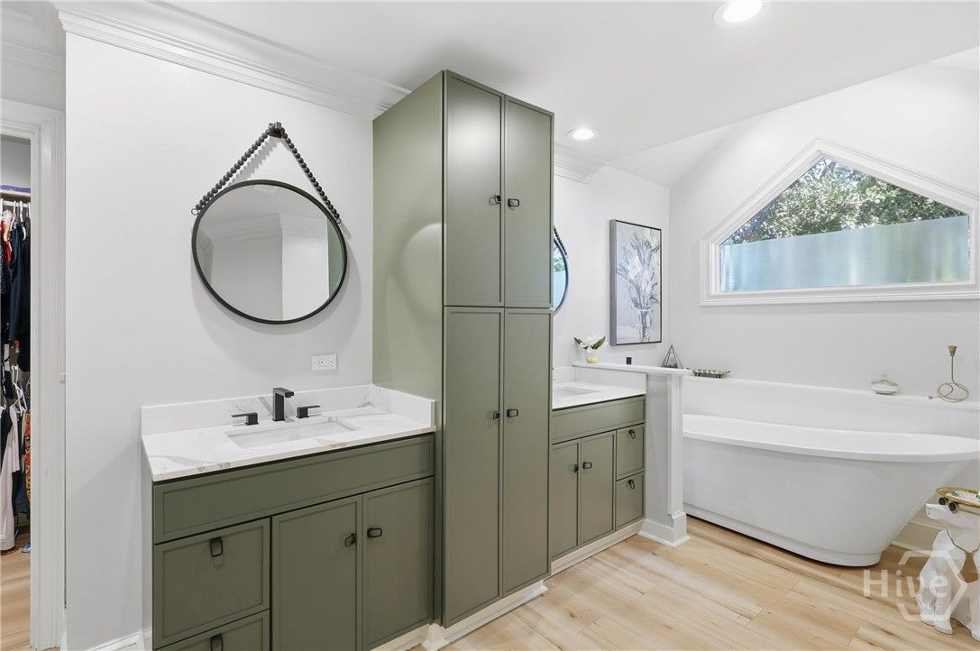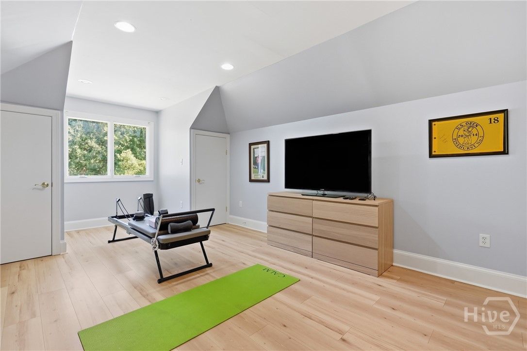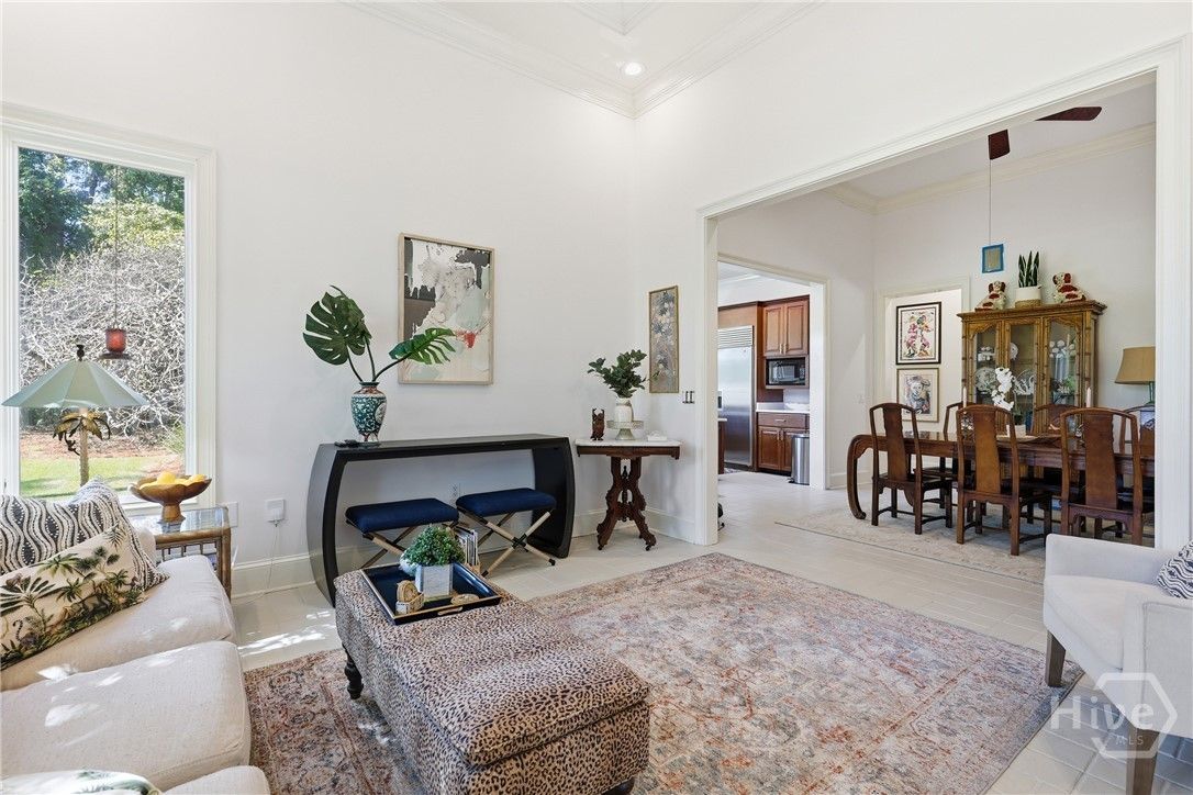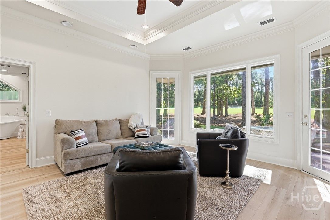 Nestled on the renovated Oakridge #1 fairway in The Landings, this 3,303 sq ft elegant rambler delivers one-level living w/ limitless potential. A foyer opens to the living areas w/ soaring ceilings open to the kitchen, dining, sunroom & screened porch - your new favorite spot. The kitchen gleams w/ quartz counters, warm wood cabinetry, a 5-burner gas range, double ovens & a large pantry. The island is perfect for rolling out your Nona’s pasta! Retreat to the primary wing: a serene BR w/ tray ceilings & additional den/flex space. The spa bath boasts a separate shower, freestanding tub & double vanity. There is a separate room that could be an office or a large closet. A split plan offers two additional BRs sharing a beautifully updated Jack-and-Jill bath, while a powder room serves guests. A finished room over the garage, the flexible bedroom/den/office spaces near the primary will allow you to craft your ideal home. Fresh paint, new flooring, & updated lighting elevate every corner.