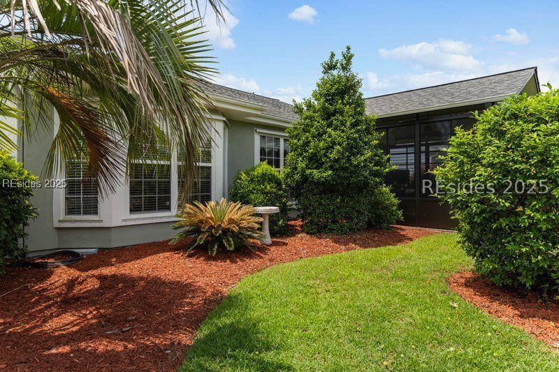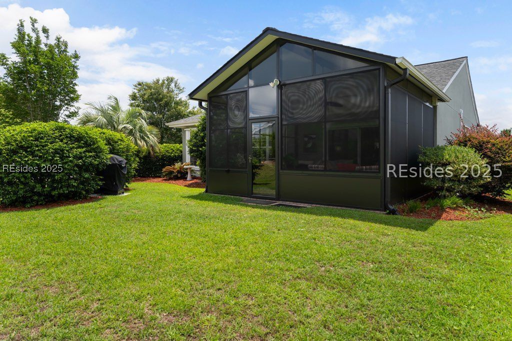 MOVE RIGHT IN to this charming Egret model on a spacious .19 acre corner lot in an ideal location, in Sun City Hilton Head, a vibrant 55+ active adult community. The open floor plan features a bright and inviting living area, spacious dining space, and a well-appointed kitchen with breakfast nook & pantry. A comfortable primary suite provides a private retreat with bay windows, shower & tub, and extra large walk in closet! Guests will enjoy the privacy of their own bedroom and bathroom off of a separate hallway, lined with hall closet and linen closet providing extra space for storage. The versatile den/office with french doors, a built-in desk, cabinets, and a sleeper sofa, offers flexibility for visitors or hobbies. A highlight of the home is the expansive lanai with vinyl windows, a fire pit and split HVAC unit, making this Four Season climate controlled sun room the ideal spot to relax year-round while enjoying both privacy, as well as serene views of a lagoon in the distance. This home also features a new roof with a transferable warranty, new refrigerator, and new washer/dryer! Relish in being walking distance to many amenities, including the dog park, wood shop, Softball field, Pickleball, Horse shoes, and a short golf cart ride away from the Hidden Cypress clubhouse featuring a golf course, pro shop, fitness center, pool, Jamesons Charhouse Restaurant and more! With furnishings included, this home makes it easy to start enjoying the Sun City lifestyle from day one! Seller also offering $12,000 in Closing Credit! Furniture Available at No Cost to Buyer if Desired!