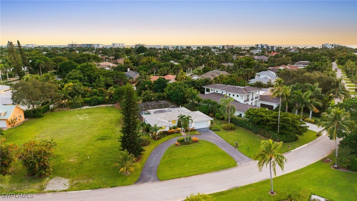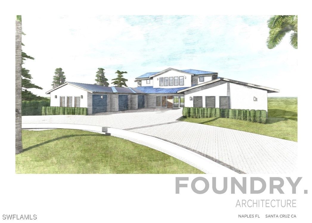 Opportunities to acquire an estate-sized parcel of this caliber in Naples are increasingly rare—particularly one offering both southern and western exposure. Situated on nearly half an acre in the prestigious Moorings neighborhood, this property combines exceptional scale, desirable sunlight, and superior elevation, offering a distinctive opportunity for redevelopment or refinement. Set 12 feet above sea level and located in the X-flood zone, the site exceeds current FEMA and insurance requirements. With no history of flooding and a proven track record of resilience during hurricanes, it provides long-term security that few properties in coastal Naples can match. The setting is quiet, private, and well-positioned—enveloped by mature tropical landscaping and just minutes from Moorings Beach Club, Moorings Golf & Country Club, Fifth Avenue South, and the new Naples Four Seasons Resort. The existing ranch-style residence, built in 1962 and featuring a pool and spa, is offered as-is. Buyers may choose to enjoy the home in its current form, renovate to reflect their preferences, or design and construct a new custom estate befitting this remarkable site. To support redevelopment, conceptual architectural plans are included, offering a thoughtful framework for transforming the property to its full potential. Surrounded by multi-million-dollar custom homes, this parcel represents a rare opportunity to create a lasting legacy in one of Naples’ most established and desirable neighborhoods.