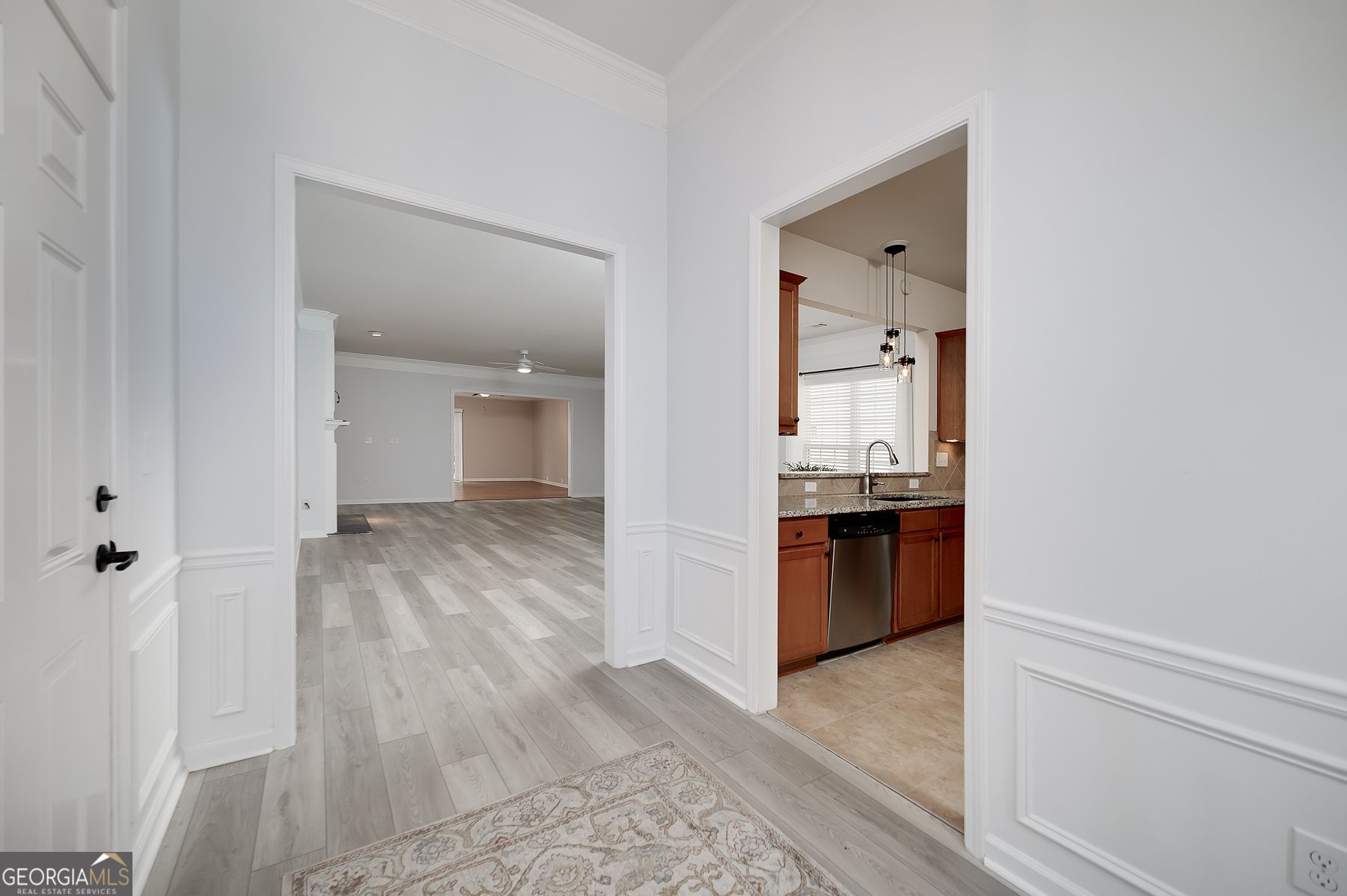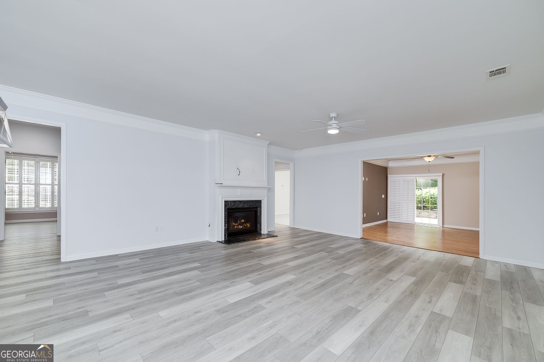 Welcome to the popular Willow Bend plan in the sought after Sun City Peachtree 55+ Active Adult Del Webb Golf Course community. It includes a Clubhouse, Indoor & Outdoor Pool, an unbelievable equipped Fitness Center & more. There are Tennis & Pickleball Courts, a Softball field and a Doggy Park. This lovely open, airy plan has been totally repainted, new luxury vinyl flooring and luxury carpeting. A new architectural roof was installed in 2024. The home is situated on a beautiful Lot with a private backyard and is naturally landscaped, including an awesome stone patio with a Weber gas grill and a sitting area designed to entertain Family and Friends. A very quiet and peaceful atmosphere. The Garage has an electric car charger and also has a work bench w/lights. Additional Bonus features include a Wi-Fi thermostat, garage door opener and key pad, a security camera and an additional energy efficient rafter insulation (a thermal attic barrier) installed in 2018 and a 4 zone sprinkler system. When you enter the Foyer, it opens into a spacious Great room, with double crown molding and a fireplace. It has a Dining room area which could easily seat 12. Additionally, there is an enclosed heated Sunroom off of the Great room, with hardwood flooring, which could ideally be used as a Recreation room/TV room. There is a phenomenal Chef's Kitchen overlooking the Great room which is equipped with upgraded cabinets & pullout drawers, granite countertops, stainless steel appliances, an island, a desk and an area to put a Dinette set. The hallway off the Great room leads to the laundry room & around the corner is a Guest Bedroom with a full Bathroom & there is an Office with French doors. The Owner's Suite is located at the rear of the house which has a beautiful view of the backyard and allows you total privacy and a peaceful, tranquil feeling. The Master Bathroom has a garden tub and a separate shower with a new frameless shower door, double vanities and a large walk-in closet. Move in Ready...a Must See!