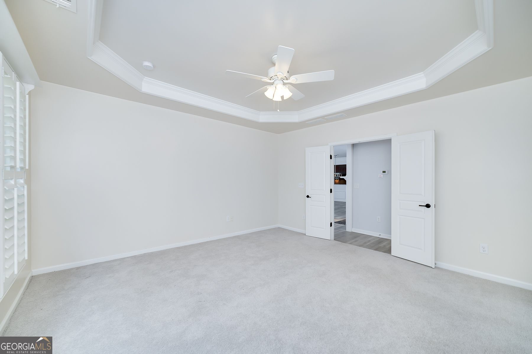 - Double Vanity, High Ceilings, Main Level Primary, Separate Shower, Split Bedrooms, Tile Bath, Tray Ceiling(s), Walk-In Closet(s), Dual Pane Window(s), Window Treatments, Den, Great Room, Media Room, Satellite Dish