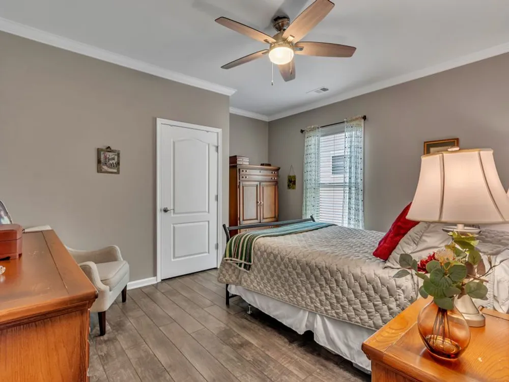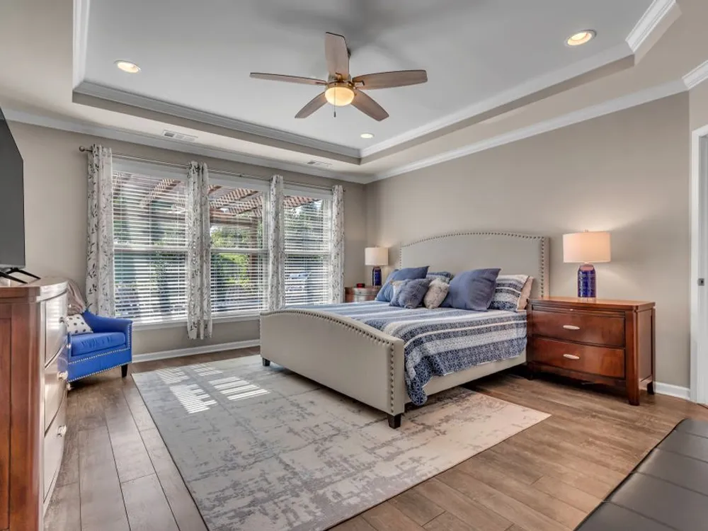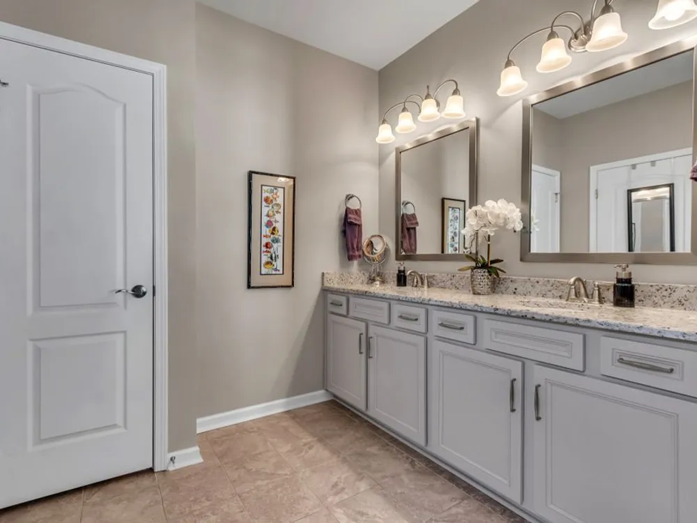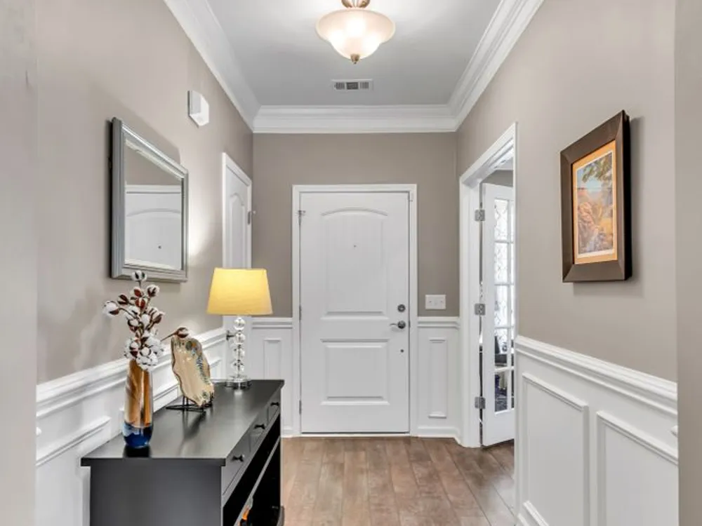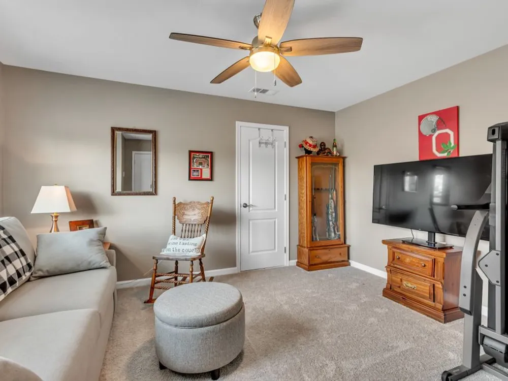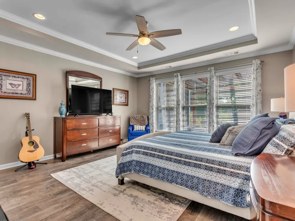 This 3 bedroom 2 bath Martin Ray model with neutral paint and decor is the one you've been waiting for. Open concept living with 9 ft ceilings, crown molding, wainscoting, flex room off entry with glass french doors, Butler's pantry and large walk-in kitchen pantry with custom modular system. Upgraded kitchen cabinetry with granite countertops, rollout shelving, dovetailed drawers and soft close doors and drawers. Built-in oven and microwave as well as gas cooktop. Large kitchen island perfect for entertaining family and friends. Great room with gas log burning fireplace open to the bright and light sunroom. Ez Breeze lanai for year round use opens to the private, lushly landscaped outdoor entertaining space with high end gas fire pit. Epoxy coating on front porch, patio, and garage floor for easy cleaning. Main floor has 2 bedrooms and 2 baths. Upstairs there is a 3rd bedroom or bonus room with large floored walk-in attic space. Main floor primary bedroom has an ensuite bath with walk -in tile shower, double sink vanity, linen closet, and separate water closet. Large primary closet has custom modular system for organizing all of your personal items. Garage has space for parking two cars plus an additional bay for parking a golf cart or small car with room for work bench or additional storage. Community has both indoor and outdoor pools, pickle ball and tennis courts, gas fire pit, pavilion with gas grills and patio tables, clubhouse with fitness center and fitness classes, ball rooms, kitchen, conference room, card/game room, massage room, men's and women's locker rooms and a lending library. Over 70 clubs and special interest groups, special programs, presentations, concerts, Southern Springs choir and band, as well as photography, painting, quilting, solo clubs, coffee club, Veteran's club, Bible study, and so much more. Living in Southern Springs is like vacationing at a very active resort. Thirty-five minutes from BNA. Come out and tour this beautiful home.