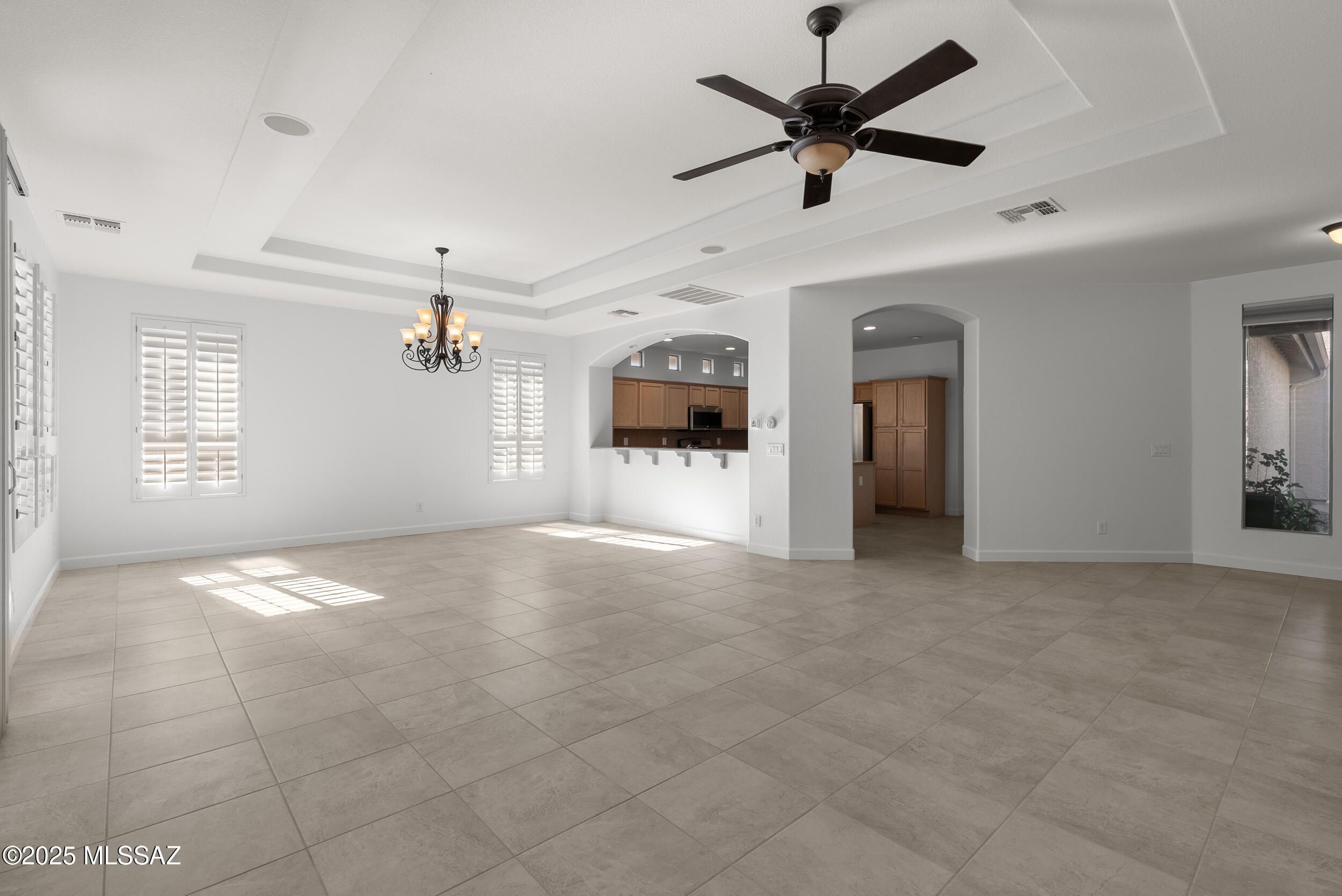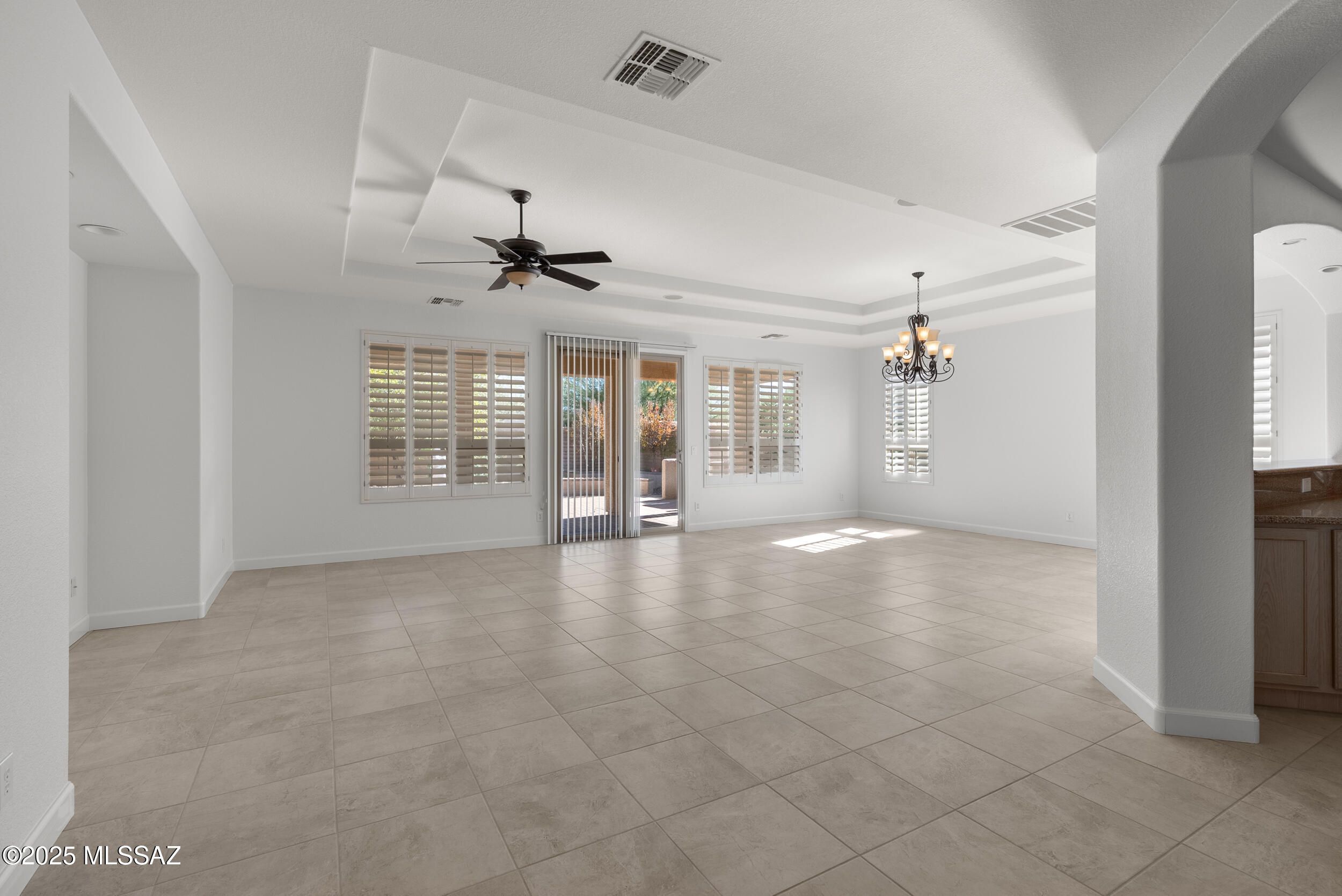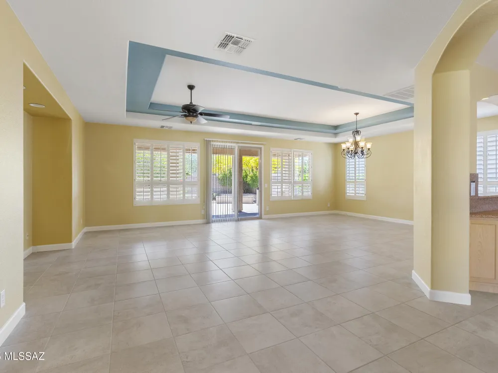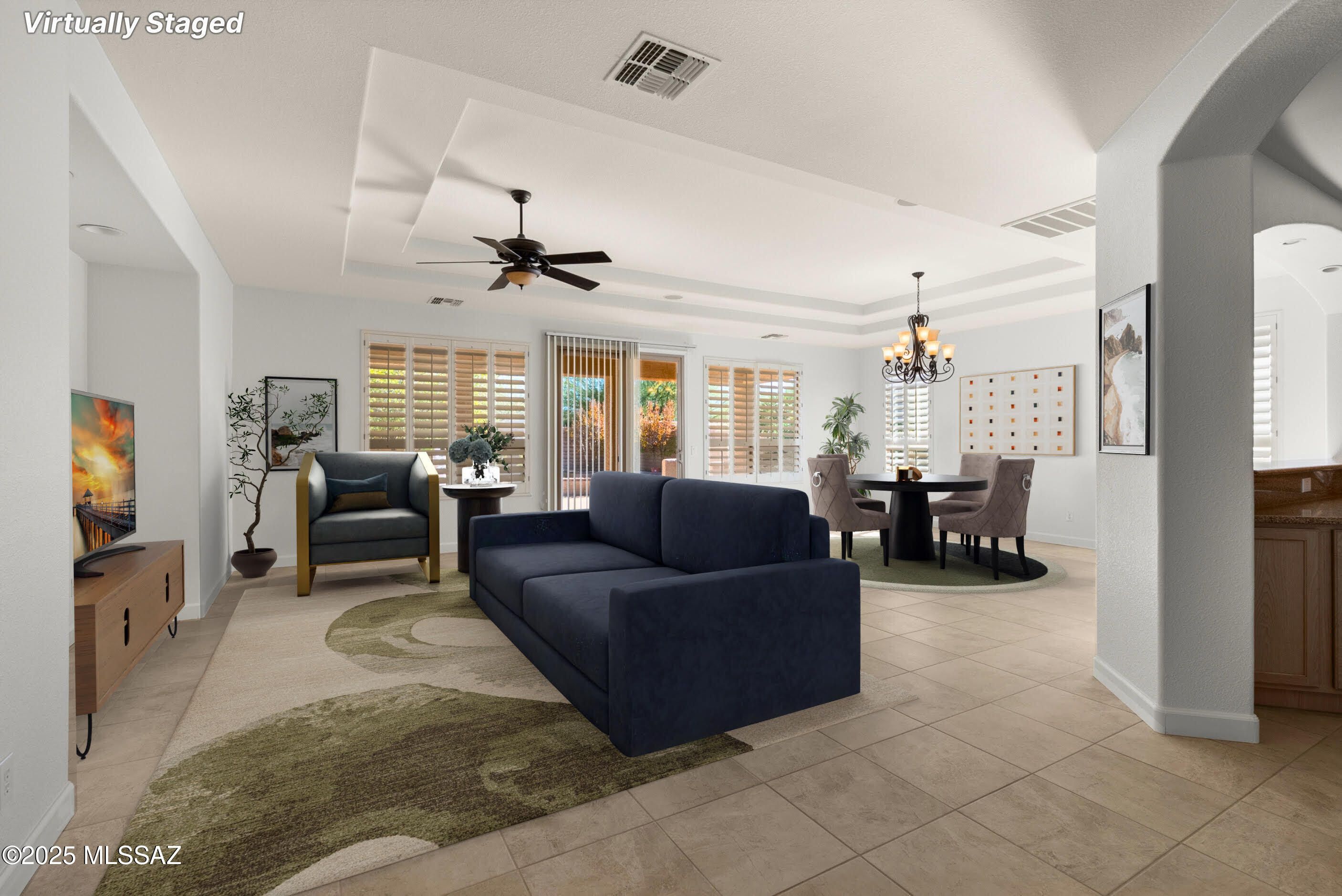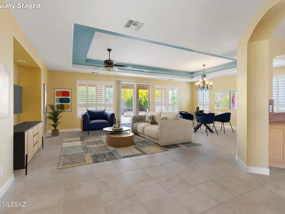 This well-maintained single-story home combines practical design with stylish comfort. The Great Rm has tray ceilings & flows into a dining area & kitchen, making it ideal for both everyday living & entertaining. Other touches include plantation shutters, wide hallways, & tile flooring throughout for easy maintenance. Nestled in a scenic neighborhood with desert views & nearby mountain ranges, you're just minutes from local walking trails, golf courses, & community centers. Grab groceries at Safeway or enjoy a meal at favorites like Manuel's Mexican Restaurant & Ragazzi Italian. Shopping, medical care, & leisure are all a short drive away.The covered patio & desert landscaping invite you to unwind outside with minimal upkeep,