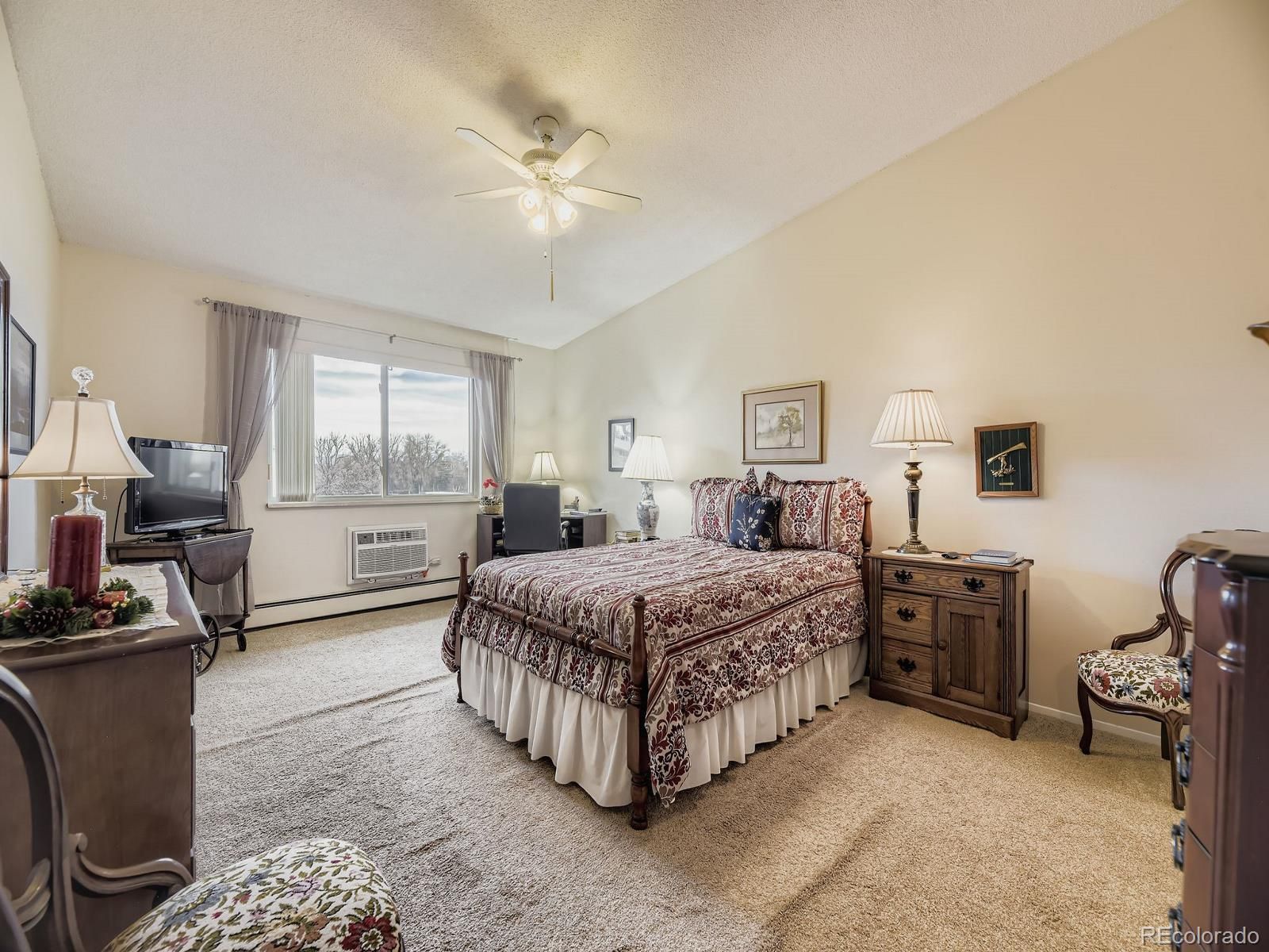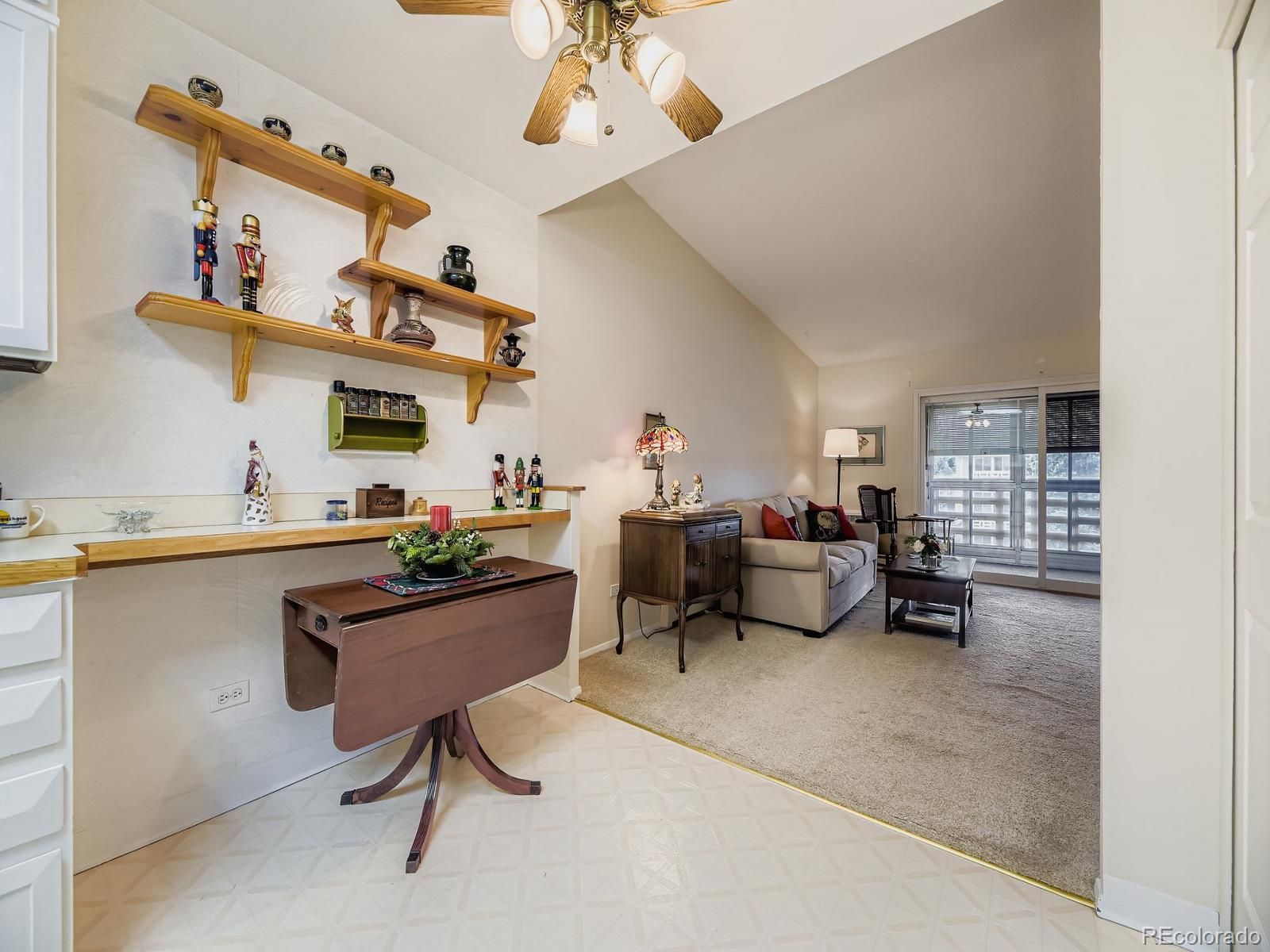 Welcome home to your cozy, top floor unit with wonderful light and amazing views. Well maintained and move in ready. Great location close to highline canal, within Denver's favorite and largest 55+ community. HOA includes a lot of amenities. The property includes a very large bedroom with attached bathroom, double closets, kitchen, living area, and lanai with beautiful mountain views. The building has shared laundry, an assigned storage unit, and one detached garage. The complex boasts friendly neighbors, clubhouse, and pool, and monthly community events. This unit has been pet free and non-smoking. There is new carpeting throughout, new AC units in the bedroom & living area, all new kitchen appliances. New sliding glass door for Lanai and has been freshly painted.