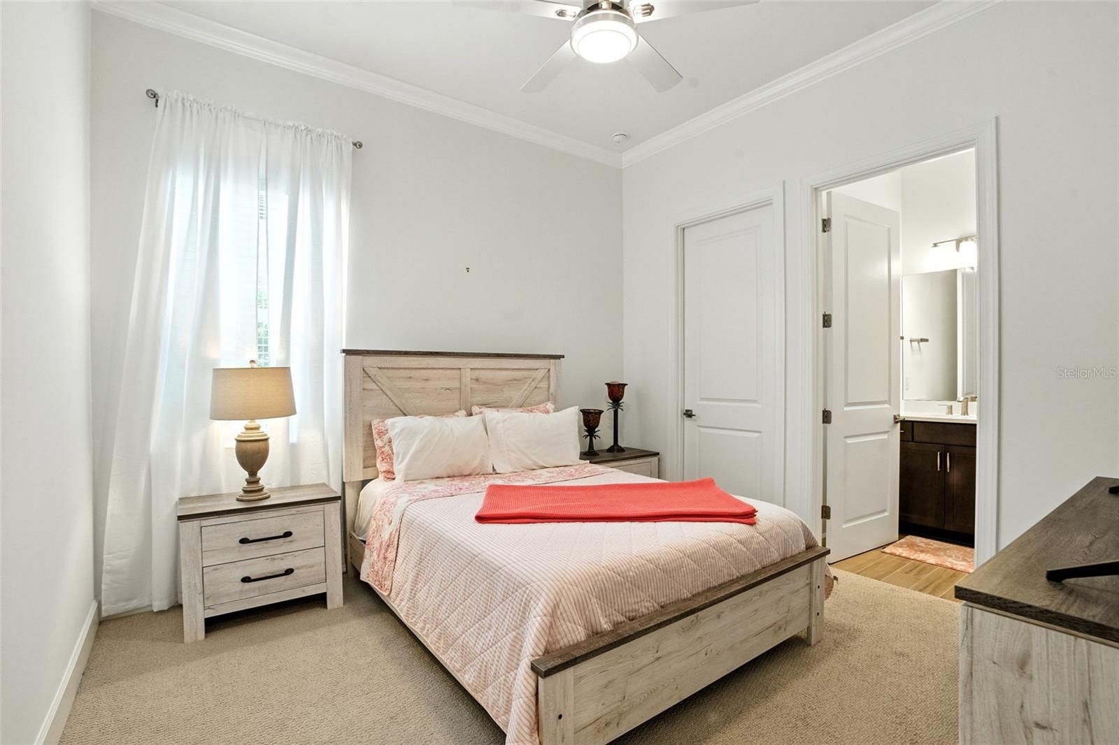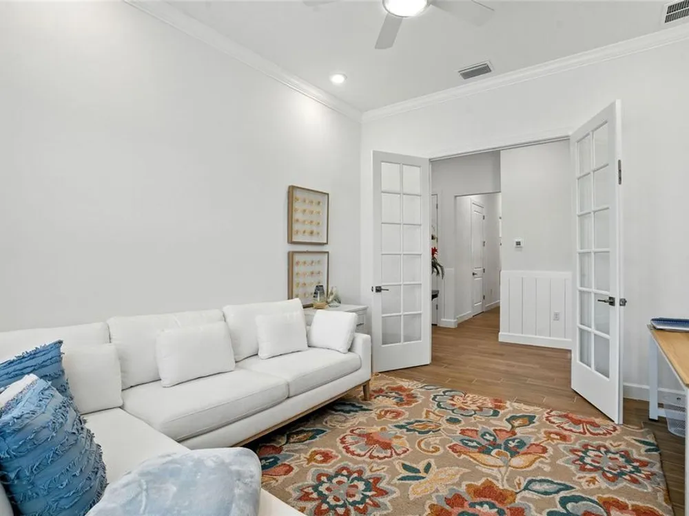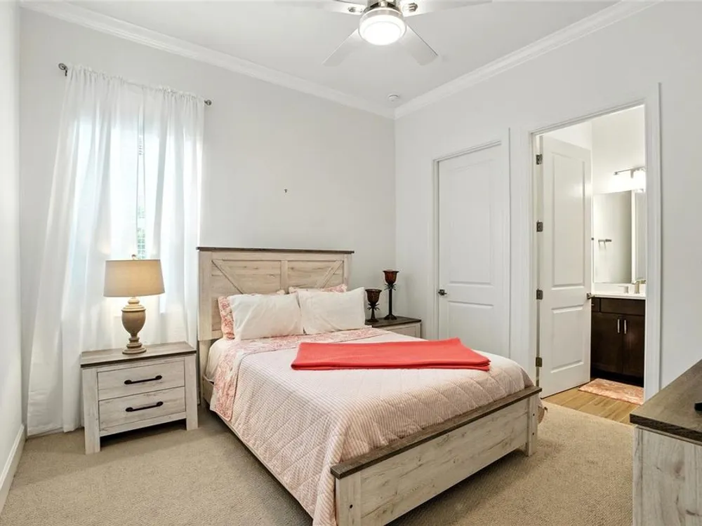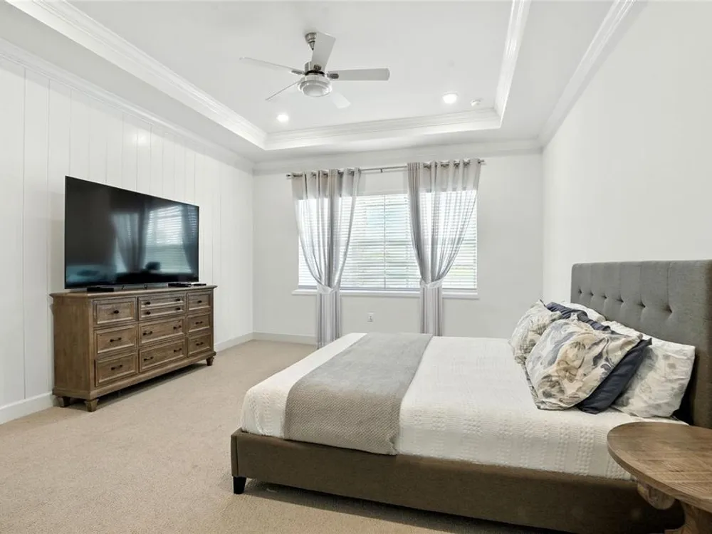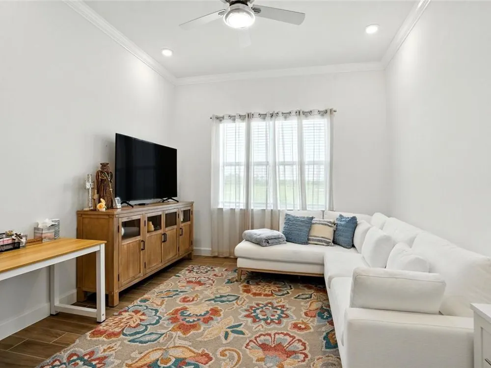 - Built-in Features, Ceiling Fan(s), Coffered Ceiling(s), Crown Molding, Eat-in Kitchen, High Ceilings, In-Wall Pest Control, Kitchen/Family Room Combo, Living/Dining Room, Open Floorplan, Main Level Primary, Smart Home, Split Bedrooms, Tray Ceiling(s), Walk-In Closet(s), Window Treatments