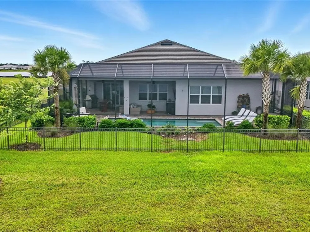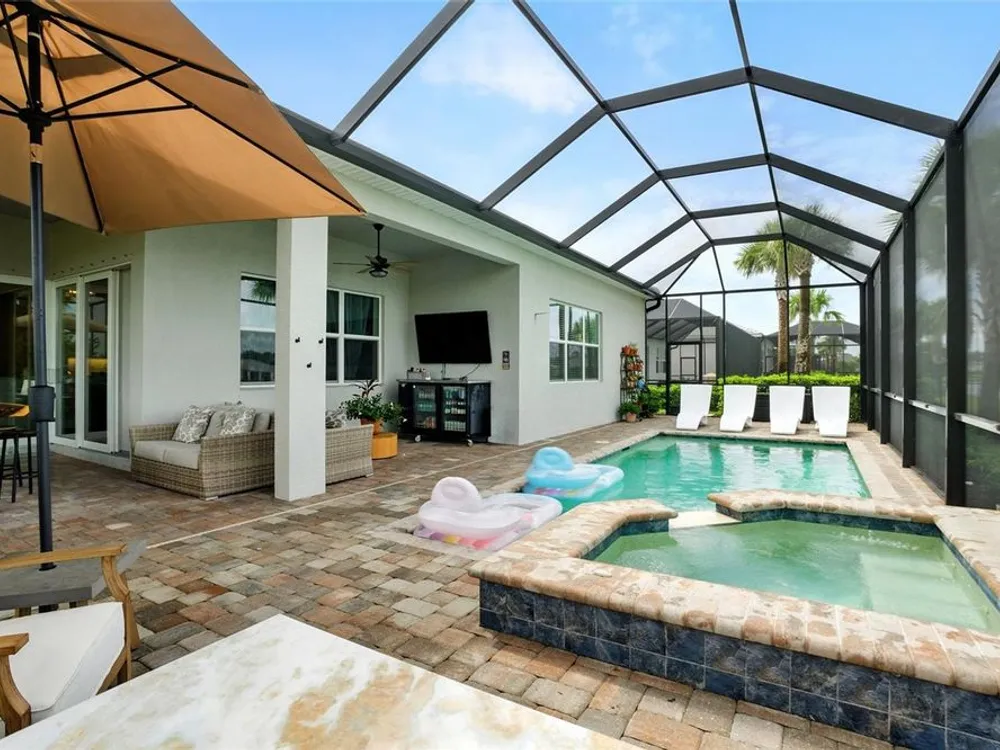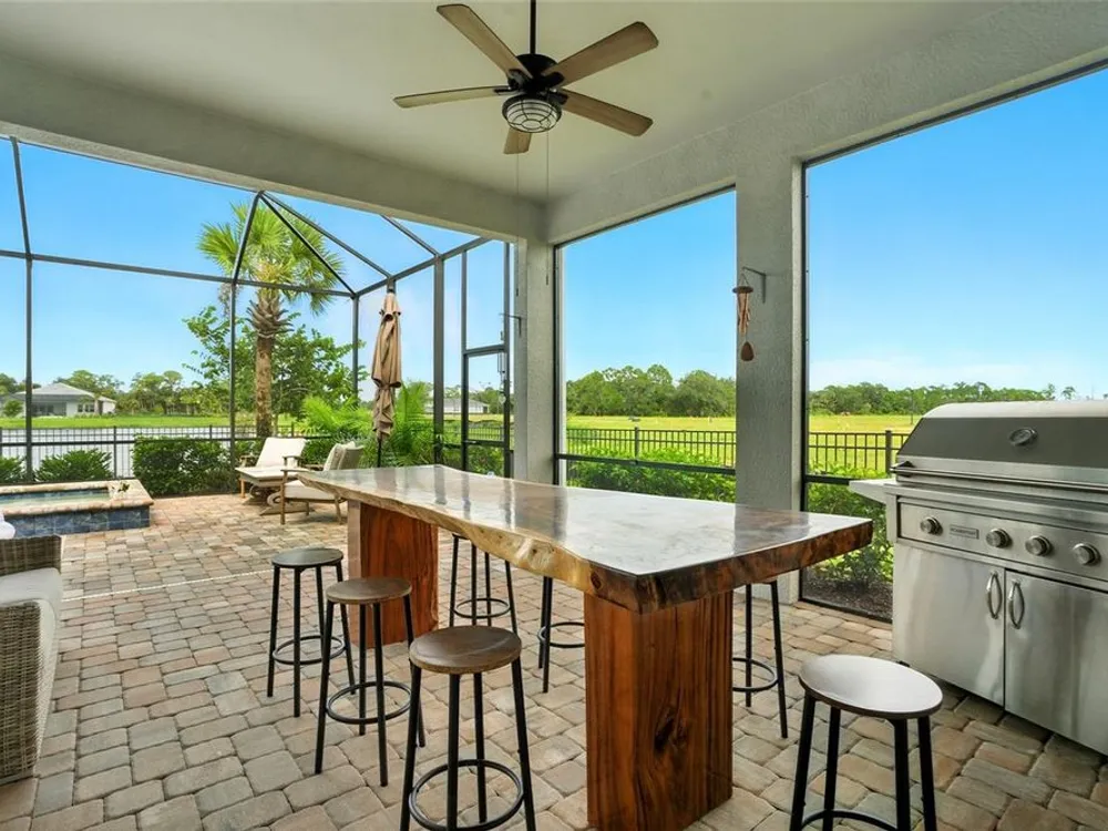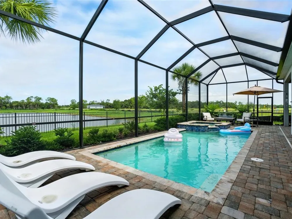 Move right into this luxury 3-bedroom, plus Den, 4-bath home featuring a saltwater pool & spa, elegant finishes, and more than 2,800 sq. ft. of stylish living space. The chef’s kitchen wows with gas burners, built-in appliances, a wine fridge, and oversized island. Enjoy beamed tray ceilings, accent walls, and designer lighting throughout. Pocket and zero-corner sliders open seamlessly to the lanai for the ultimate indoor-outdoor lifestyle. The owner’s suite offers a spa-like retreat with an impressive walk-in closet and relaxing ensuite. Flex room, 10-ft ceilings, upgraded garage floor, and new fencing add comfort & value. Located in one of North Fort Myers’ premier 55+ communities offering a 17,000 sq. ft. clubhouse, resort pool & spa, fitness, pickleball, bocce, restaurant & Tiki. Priced below building cost with every upgrade complete — just move in and enjoy!
