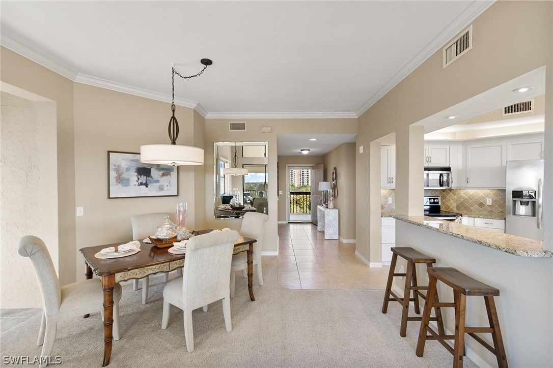 Top-floor light, Gulf breeze and that rare feeling of volume. Welcome to Calais in Pelican Bay, where this furnished residence lives larger than its footprint thanks to soaring 11-foot ceilings and an open, airy layout that invites easy coastal living. Go onto the lanai for a beautiful peek-a-boo Gulf view backdrop, the kind of everyday scene that never gets old, whether you're sipping morning coffee or winding down after the beach. Offered furnished for a seamless move-in, the home is comfortable and usable as-is, with opportunity to update at your pace if you'd like to elevate finishes over time. Under-building parking adds convenience and peace of mind, and Calais is small-pet friendly, a rare bonus for a Pelican Bay lifestyle. Enjoy world-class amenities, including the private beach experience with tram access, beach attendants, dining options, and active Pelican Bay community featuring tennis, pickleball, fitness and more, all close to Waterside Shops, Artis-Naples and best of Naples dining. An ideal top-floor choice for buyers who want ceiling height, a peek-a-boo Gulf view and flexibility, enjoy it now, refine it later.