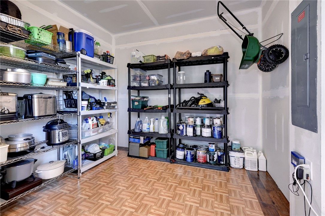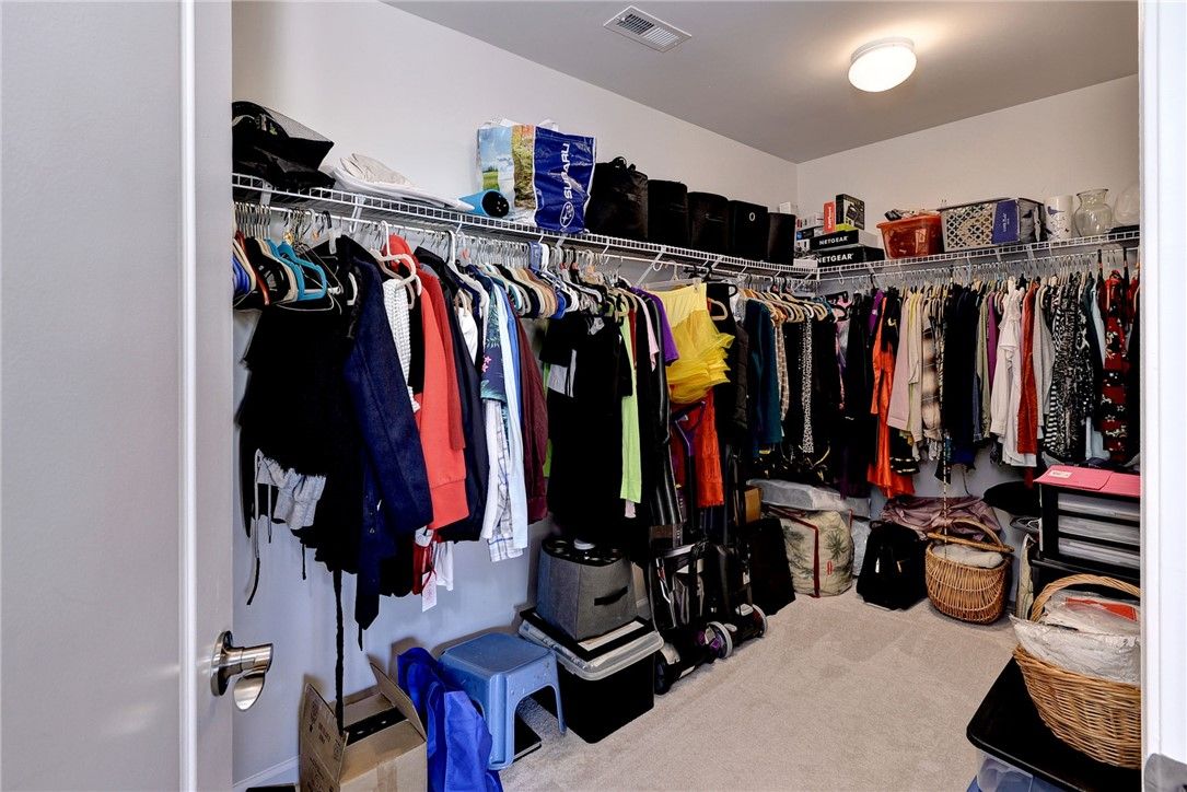 - Attic Access, Tray Ceiling(s), Ceiling Fan(s), Dining Area, Double Vanity, Eat-in Kitchen, French Door(s)/Atrium Door(s), Granite Counters, High Ceilings, Kitchen Island, Pantry, Pull Down Attic Stairs, Recessed Lighting, Walk-In Closet(s), Window Treatments, Programmable Thermostat