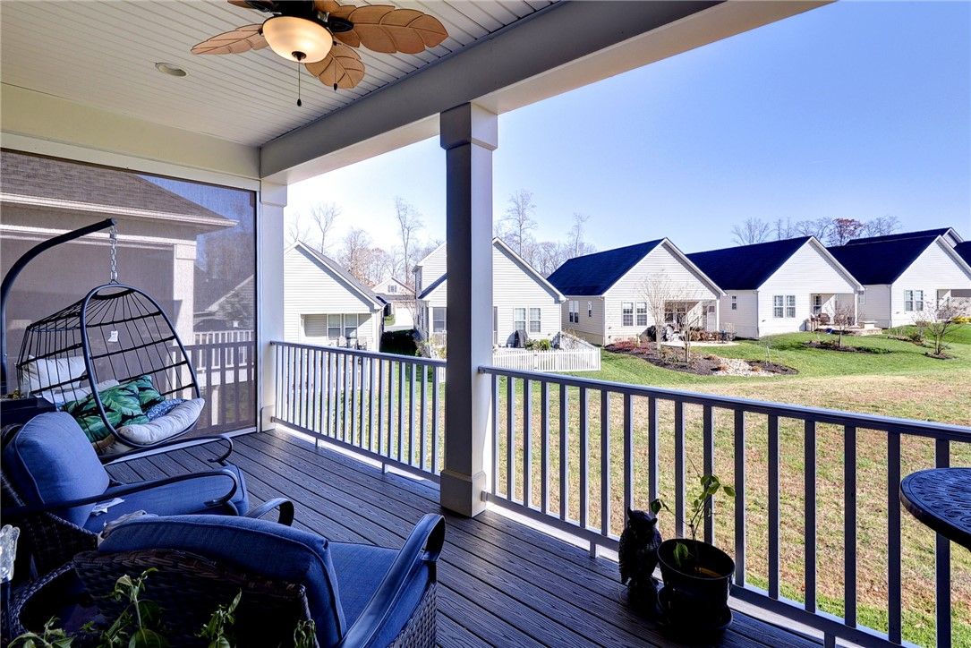 Fall in love with this turn-key rancher located on a corner lot in Williamsburg's premier 55+ Active Adult community, Colonial Heritage. The perfectly-appointed kitchen features granite counters, a large island with seating, gas cooktop with hood vent, wall oven plus a convection oven microwave, and a pantry for added storage. The kitchen opens to a generous Dining area and a cozy Family Room with a corner fireplace, both featuring tray ceilings. Just off of the Family Room is the Primary Bedroom with a walk-in closet, tray ceiling, and large bathroom with double vanities, linen closet, private toilet & large tile shower. Beyond the Family Room is a lovely, covered balcony with privacy shade overlooking the pavered patio and common area. Two additional Bedrooms, a Full Bath & Laundry Room complete this main living area. The finished basement offers a large recreation area, additional bedroom and full bath, storage and your very own dance or exercise studio! Upgrades include hardwood floors on the main level, solar panels, a whole house water softener, reverse osmosis water @ kitchen, radon mitigation & a golf cart! Colonial Heritage is rich with amenities for you to enjoy.