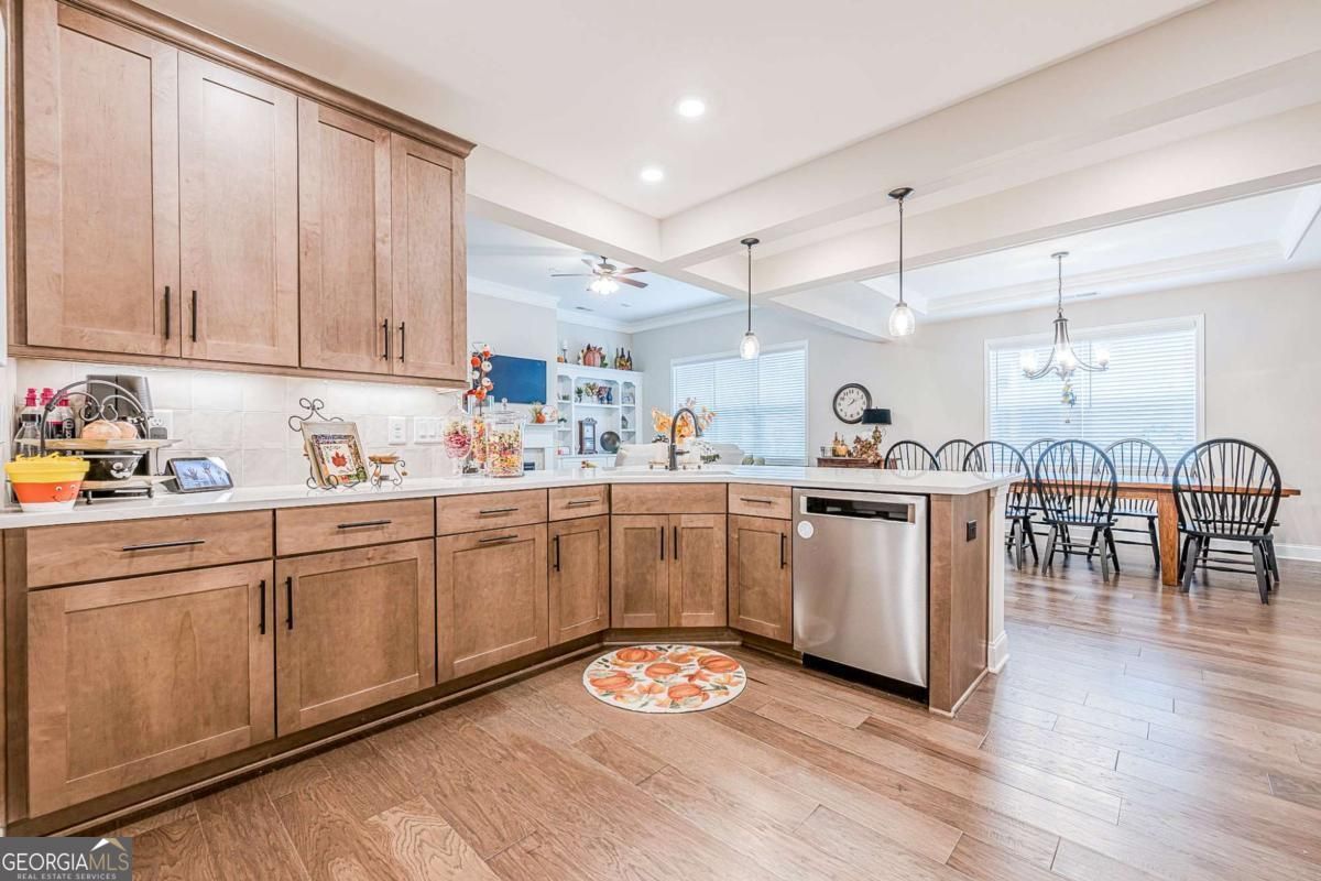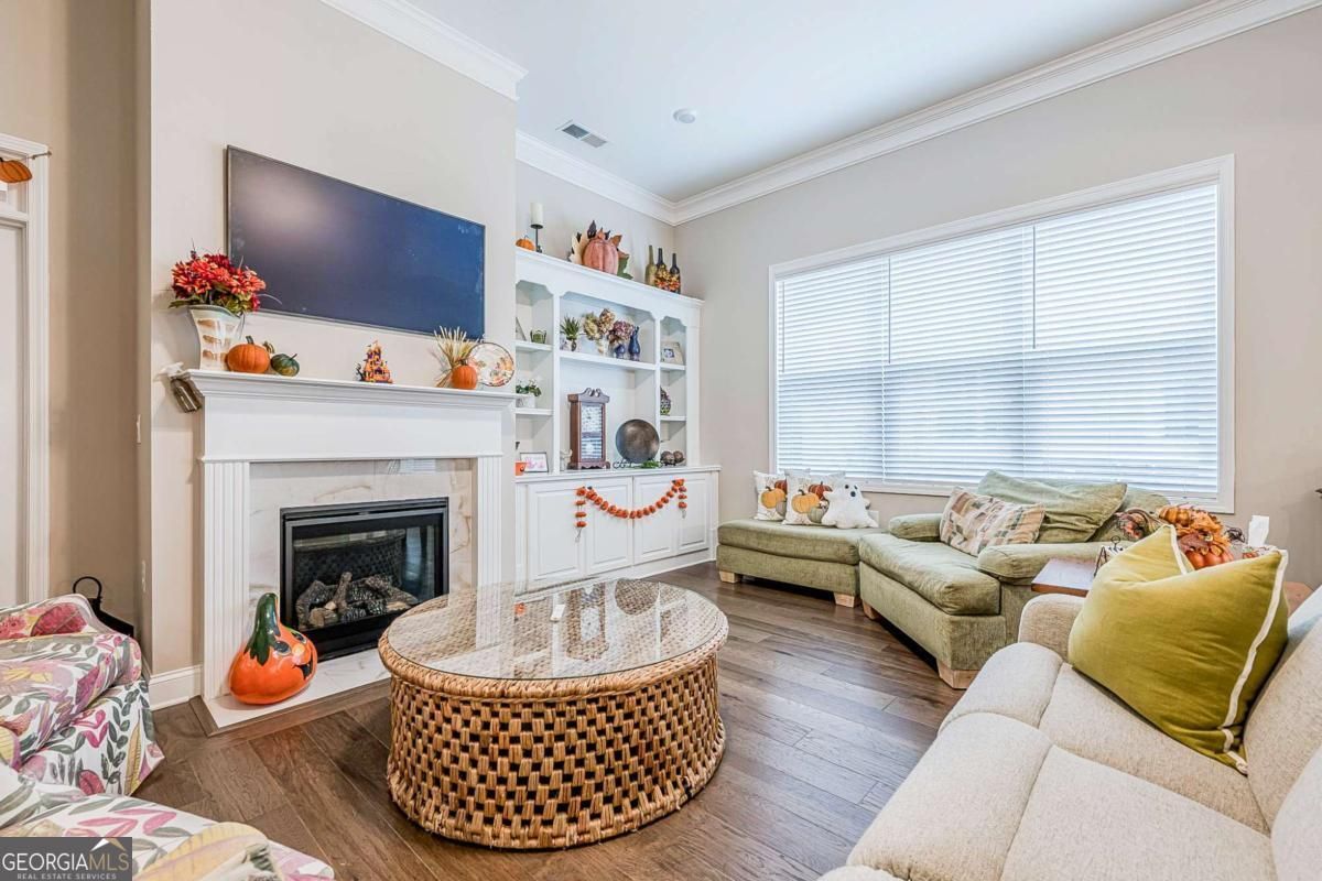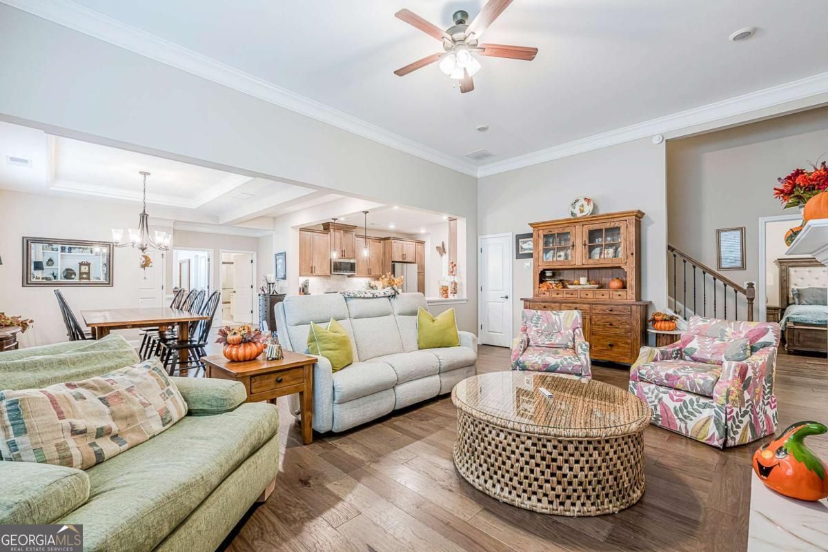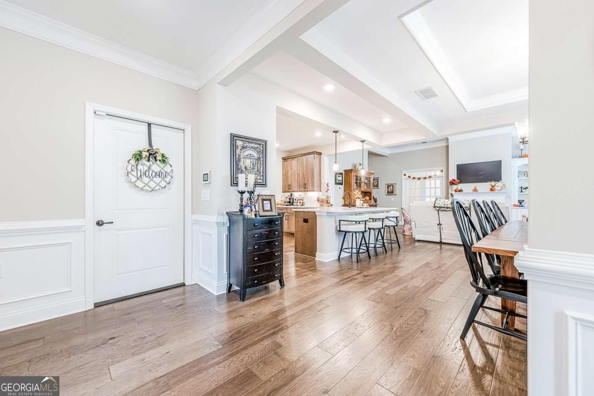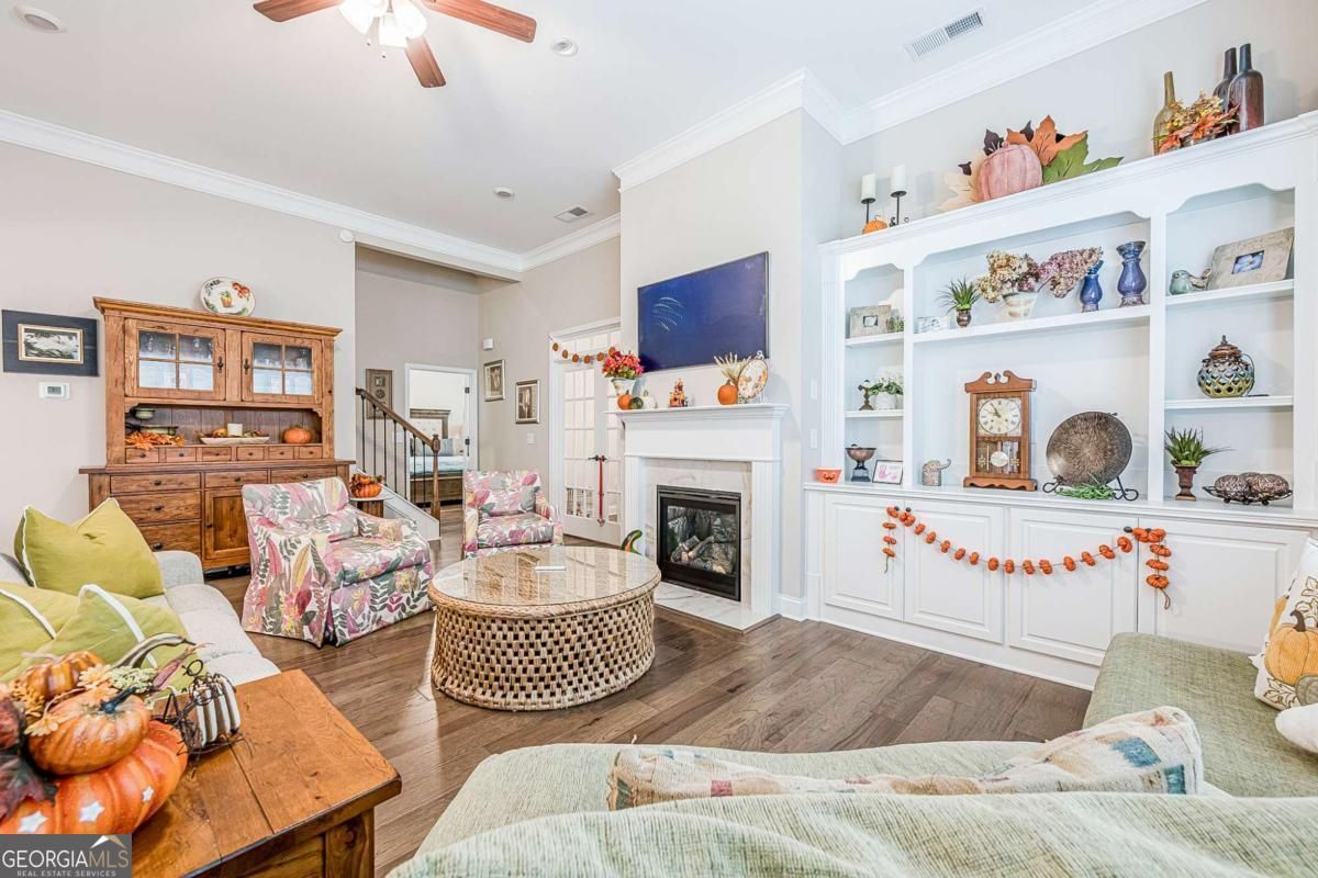 High living down South, come and see this immaculately upgraded Cypress plan in a rare 4-bedroom configuration with 12' ceilings. This home has all of the upgrades you could ever imagine. While there are upgrades you will be finding years after moving in, the big ones are: **Wide-width hardwood floors throughout entire main level, no carpet **Quartz countertops and upgraded backsplash **Upgraded, larger slow closing cabinets and slow-close drawers throughout kitchen, laundry, and master bath **Upgraded stainless appliances **Built-ins adjacent to fireplace **Additional closet in master bedroom, upstairs bedroom, and under stairs **Upgraded zero-entry shower in downstairs guest bath, upgraded deep soaking tub upstairs **Upgraded luxury carpet and padding upstairs **French doors added to sunroom **Upgraded hardware all throughout home, and so much more! Lovely layout, perfect for entertaining and enjoying life at your pace. All bedrooms are large with big closets. The 2 bedrooms upstairs are cavernous and offer plenty of flexibility. More storage than you can believe, bonus large storage room off of upstairs bedroom. RARE PRIVATE backyard backing up to nature, not neighbors. Beautiful clubhouse space to host birthdays or watch parties, all while looking over a large SALT-WATER pool. All exterior worries are handled by the HOA, live care-free! Fantastic active adult community with spirited neighbors! Come view your forever home today!