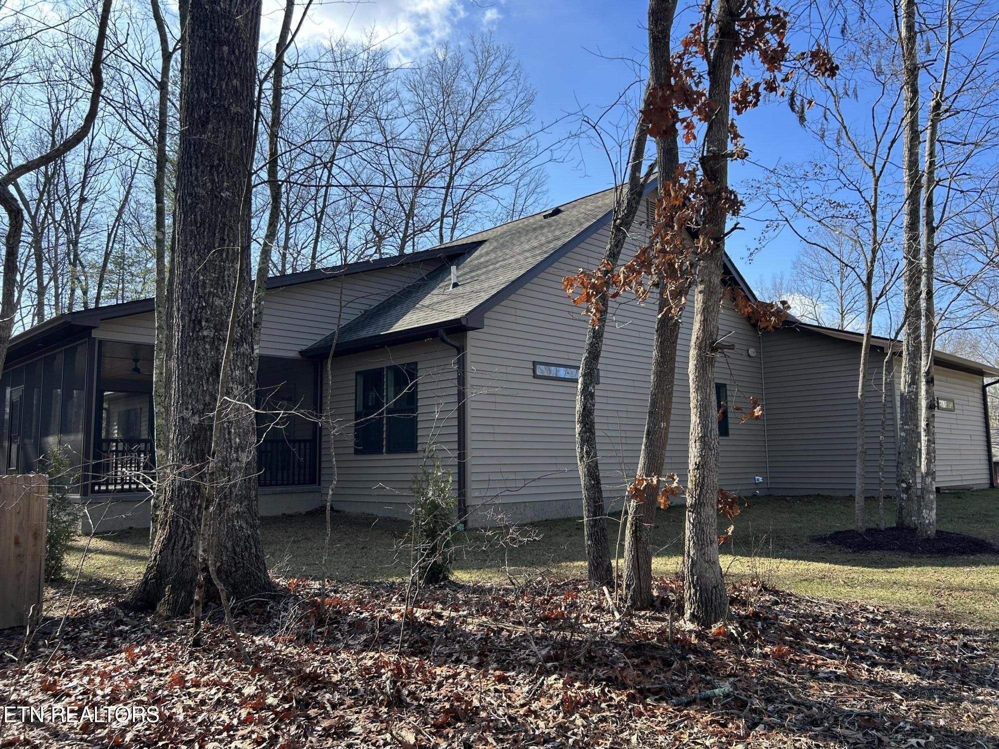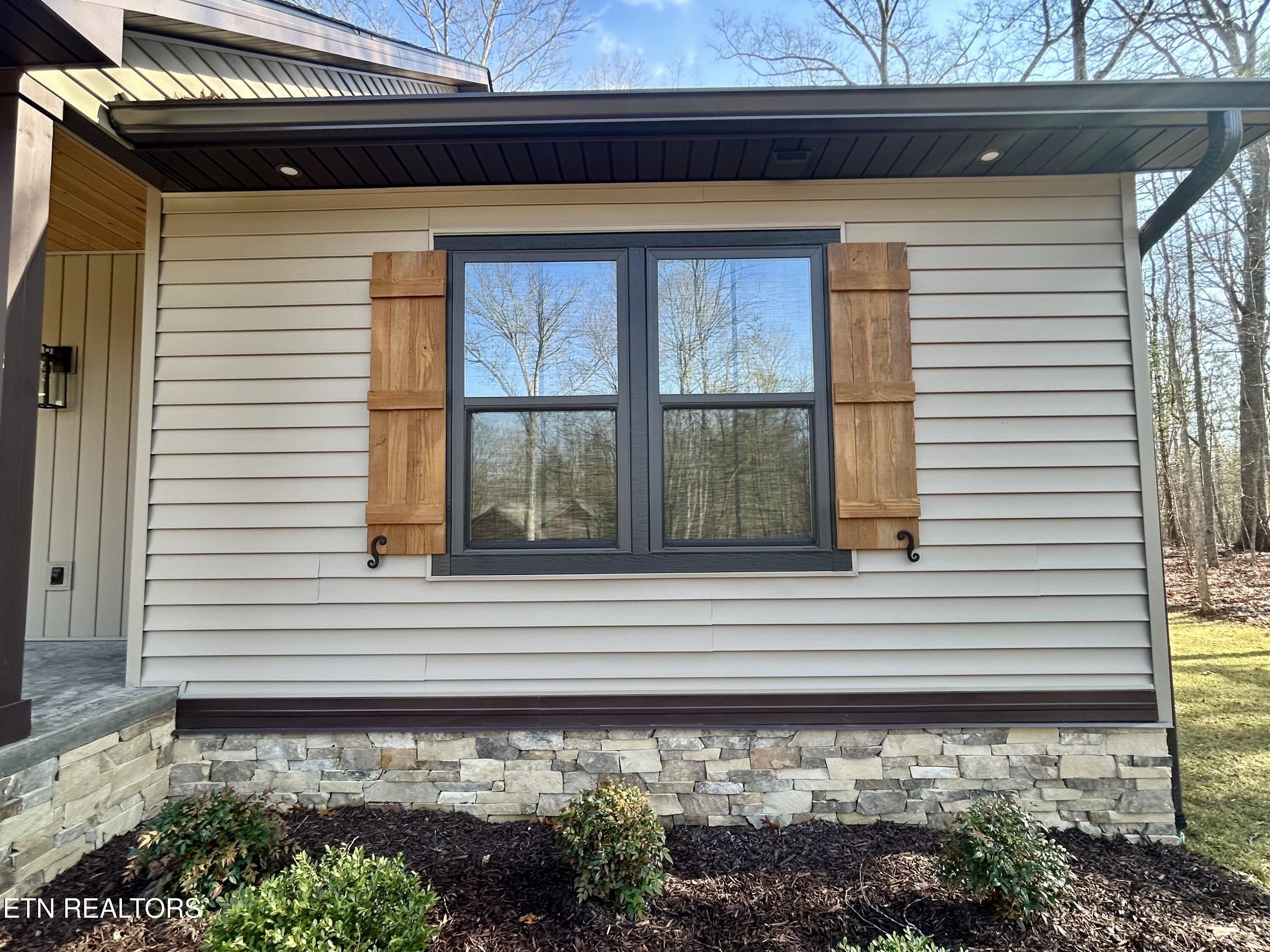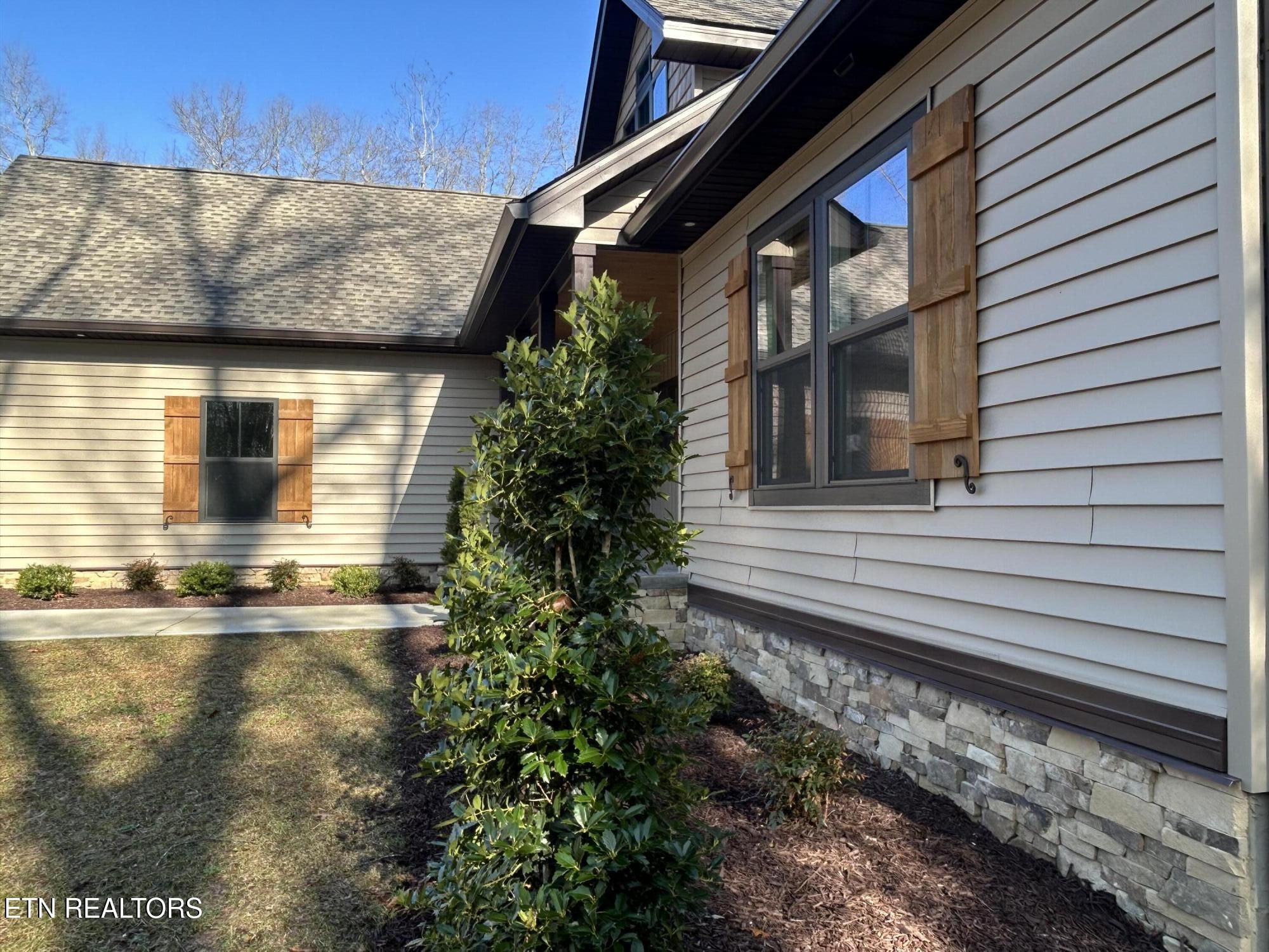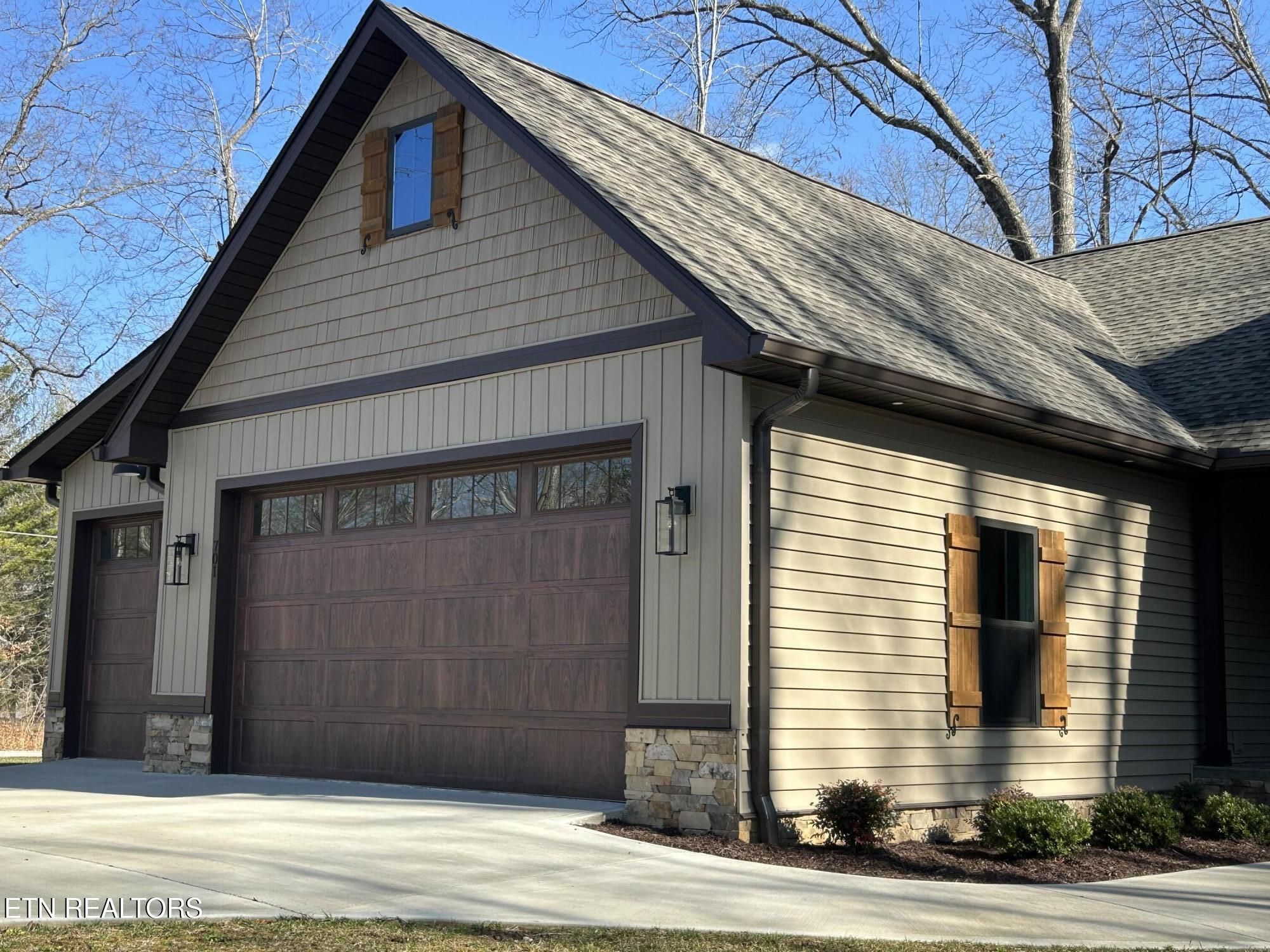 Looking for a home that checks every box? This brand-new 2025 craftsman ranch sits on one level and offers a 3-car garage, semi-circular driveway, and true wooded privacy in a neighborhood of newer homes. Built by Qualls Construction. It greets you with a generous stamped-concrete front porch, tongue-and-groove ceiling, crab orchard stone accents, board-and-batten shutters, and a timeless wood front door. Step inside to an elegant entry with wainscoting, a chandelier, and an open-concept vaulted great room anchored by a stunning fireplace. LVP floors run throughout, complemented by abundant recessed lighting. The chef's kitchen delivers top-tier appliances, soft-close cabinetry, granite countertops, a gourmet gas range, tiled backsplash, under-cabinet lighting, and a coffee bar with butcher-block counter and built-in microwave. The primary suite features a tray ceiling and a luxurious bath with dual vanities, walk-in closet, water closet, and a rain shower with handheld wand and tiled walls. The guest bath is equally impressive with beautiful tilework and another rain shower. Enjoy peaceful Tennessee living on the expansive screened porch surrounded by woods for maximum privacy, complete with tongue-and-groove ceiling, modern fan, and stamped concrete. Additional features include gas heat, gas tankless water heater, gas stub at the laundry for a dryer, laundry tub in the garage, Generac pre-wire, and an encapsulated crawl space.