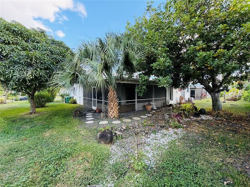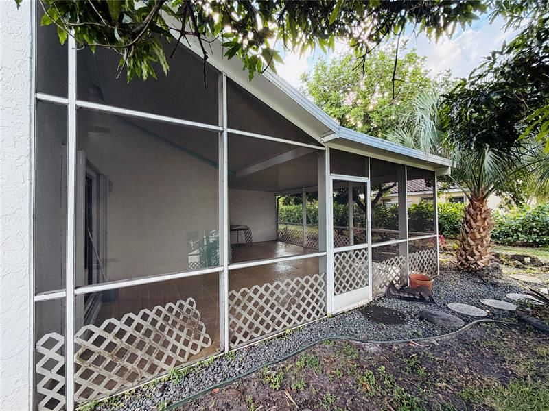 Best priced home in the community! Great potential for this 3 bedroom 2 bathroom home! This home features laminate flooring in the living areas and two bedrooms, tiled kitchen and patio flooring and carpet in the master. Both bathrooms have been updated, oversized screened covered patio, accordion hurricane shutters on the windows and doors and lush and beautiful landscaped around.