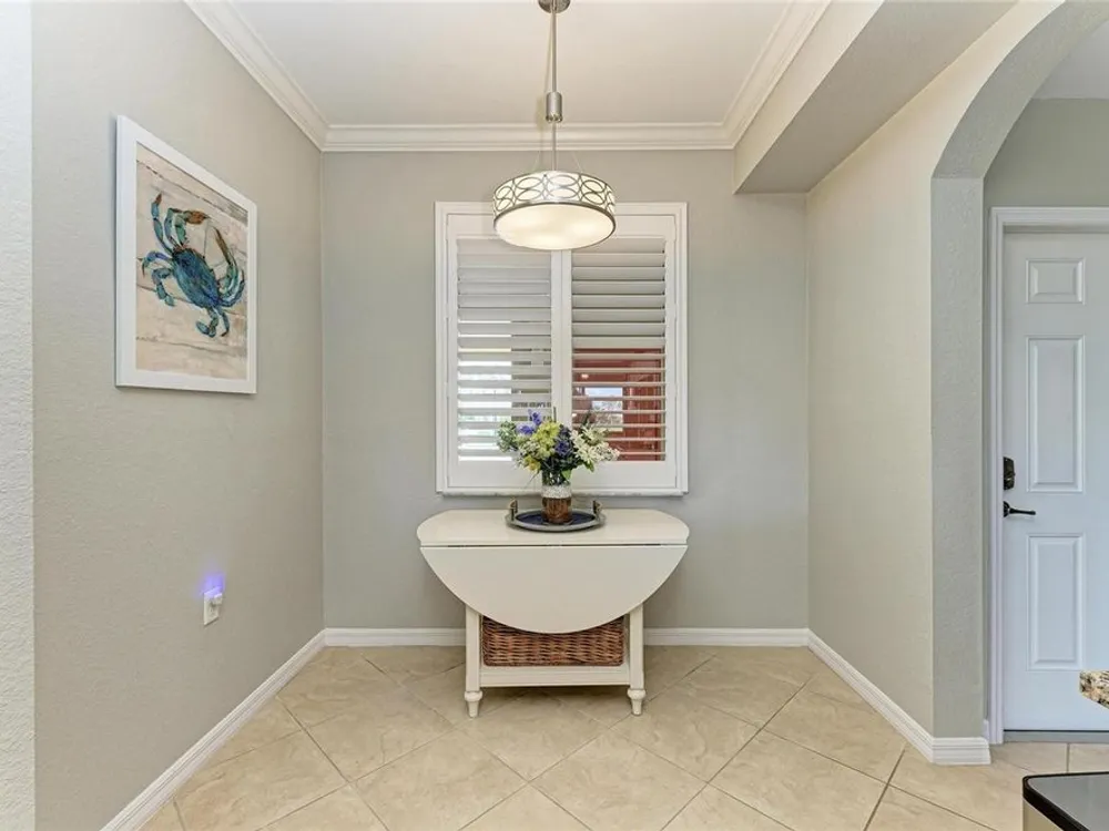 - Ceiling Fan(s), Crown Molding, Eat-in Kitchen, Living/Dining Room, Solid Surface Counters, Solid-Wood Cabinets, Walk-In Closet(s), Window Treatments