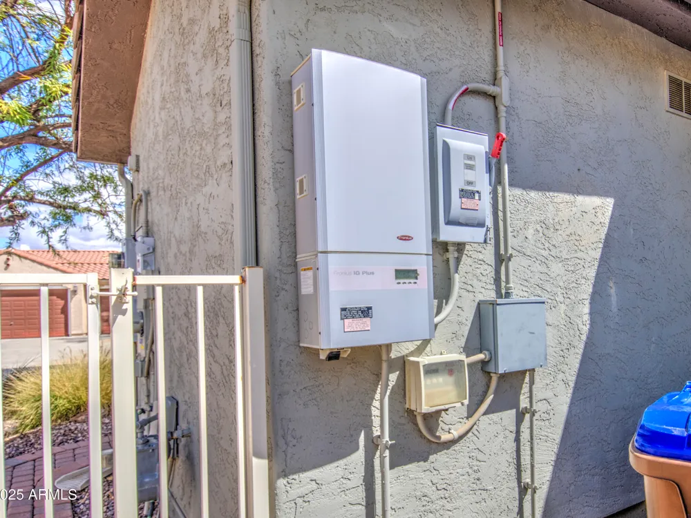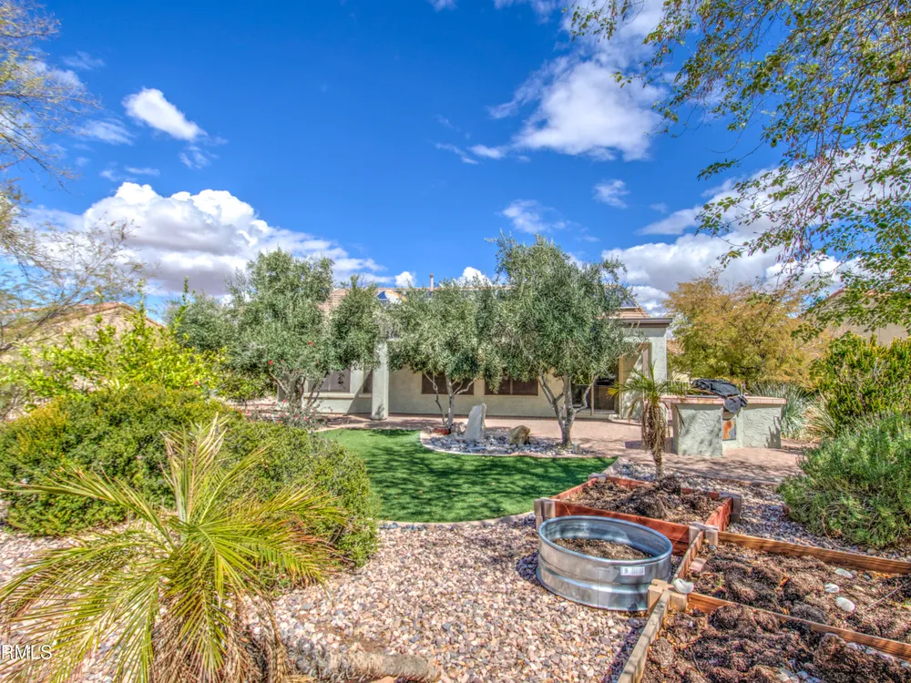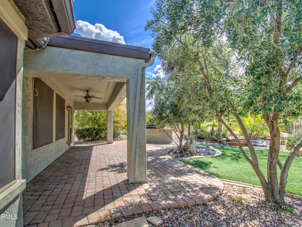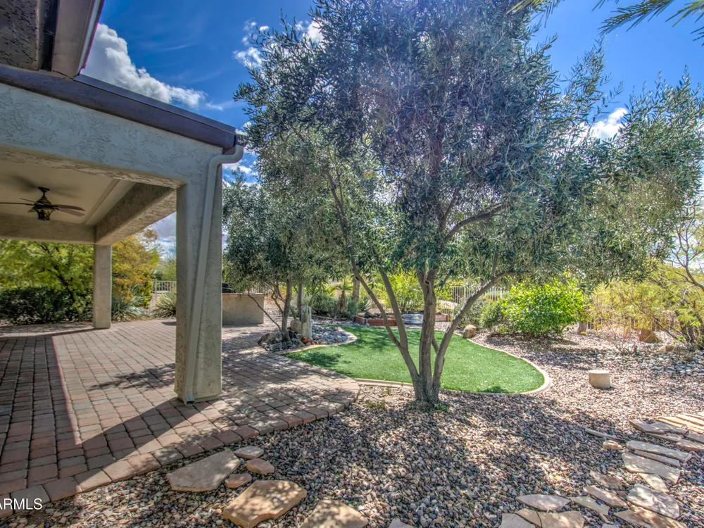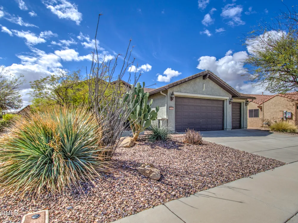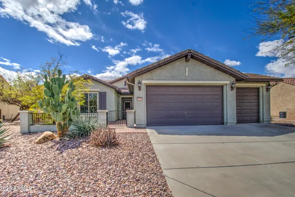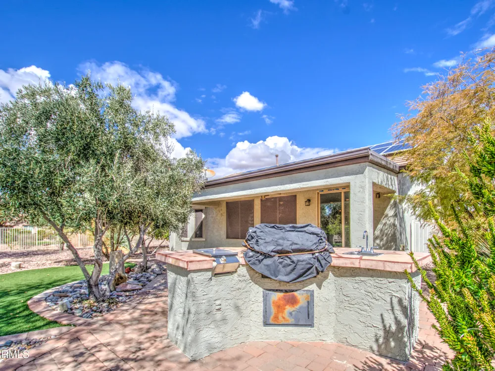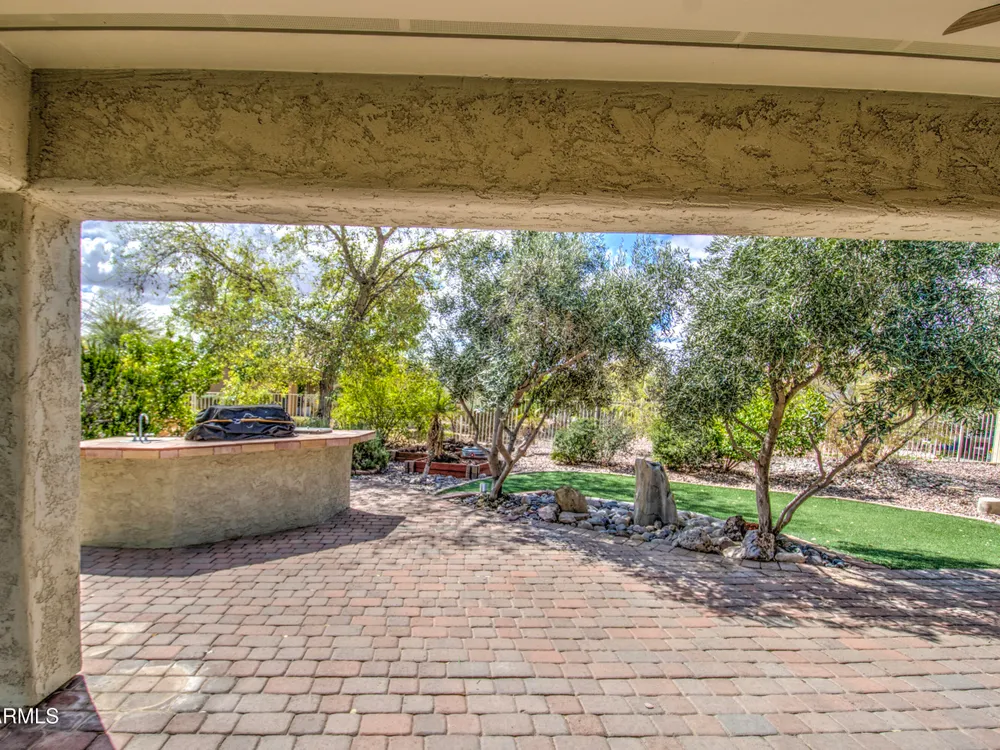 Stunning Providence 2 bedroom/2 bath and den PLUS 3 car garage is on a HUGE and very private fully fenced lot with mature landscaping including fruit trees., paver patio, turf and built in BBQ to enjoy the Arizona weather. The interior has tile, fresh paint and new LPV flooring. Kitchen has granite countertops, island breakfast bar and gleaming stainless steel appliances. tons of cabinets and a pantry. Split master suite has an attached bathroom and a very large walk-in closet. Guest room and den are also split from each other for lots of privacy. Amazing Sun City 55+ amenities (see photos). Solar for energy savings. FREE 1% ''LENDER PAID'' buy down--1% lower than market rate for the 1st year with ZERO cost.