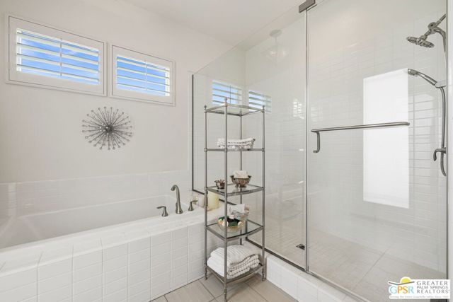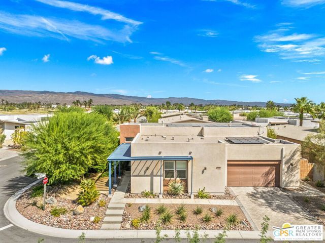 Stylish, spacious, and private! Welcome to 702 Axis Way at Escena Golf Club! Located on a premier corner lot, this home blends clean architectural lines, modern finishes, and resort-style living in one of Palm Springs' most desirable gated golf communities: Escena Golf Club! Inside this gated Nicklaus-designed championship course, residents enjoy scenic walking and biking trails, community dog parks, and the popular Escena Grill, a mid-century modern-inspired clubhouse restaurant with panoramic mountain views. Formal living and dining areas showcase tall ceilings, floor-to-ceiling windows, a sleek gas fireplace, and seamless access to the ultra-private backyard complete with pool, spa, and mature fichus hedging that frames the outdoor oasis in total seclusion. A separate great room centers around a light and bright kitchen with clerestory windows, built-in appliance suite, detached island, and upgraded cabinetry with custom drawer systems. The kitchen opens to a comfortable family room anchored by a second gas fireplace ideal for everyday living and effortless entertaining. A spacious pantry and direct access to the attached two-car garage add everyday convenience. Primary Ensuite, with direct access to the pool and spa, offers a true retreat featuring dual sinks, an extended walk-in shower, separate soaking tub, and a generous walk-in closet. Bedrooms Two and Three are positioned on the opposite wing of the home, each with views of Mt. San Jacinto and easy access to a full hallway bath with dual sinks and walk-in shower. A separate powder room serves guests with style and ease. Additional highlights include tile flooring throughout, custom 4.5" wood shutters, LED recessed lighting, upgraded pool decking, and colorful exterior landscape lighting. Paid for and owned solar panels and thoughtful outdoor enhancements like extended concrete pathways, white and iceberg roses, red yucca, and lemon and lime trees . Discover the perfect blend of elegance, privacy, and lifestyle all in the heart of Palm Springs.